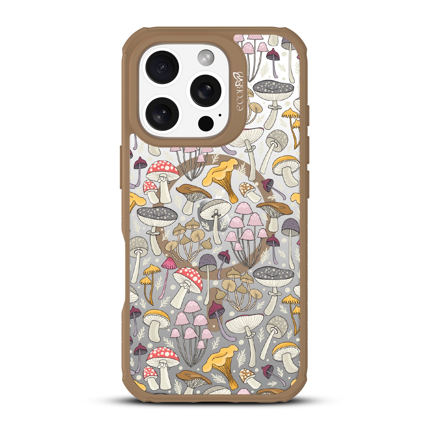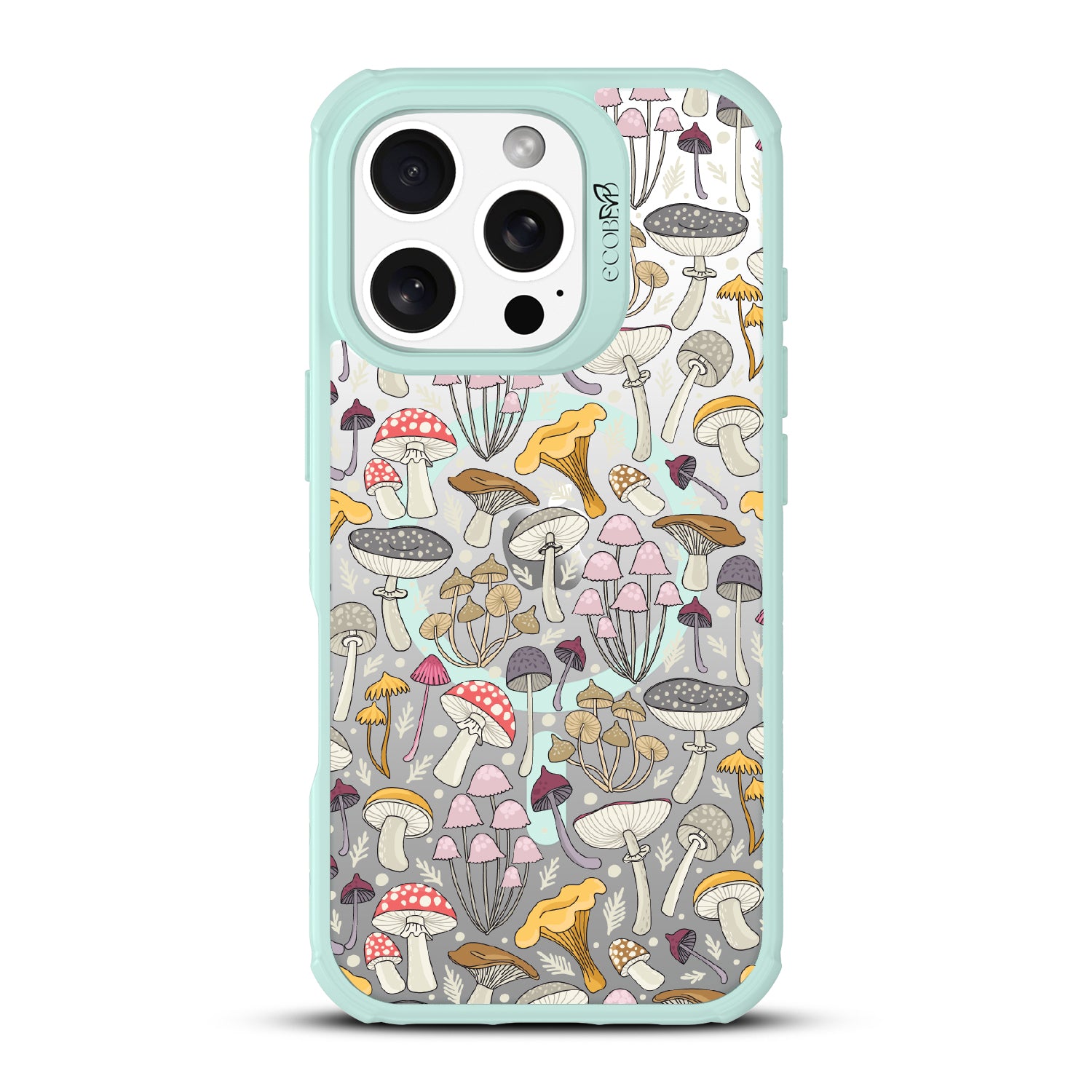 The Foraging design on our Revive clear iPhone 16 Pro phone case encourages you to uncover the hidden beauty of nature, as each toadstool and mushroom conceals a world of wonder just beneath the surface, adding a touch of fun-gi to your phone. Just as each mushroom bring a sense of charm to the forest floor, this playful design infuses your device with a spirit of discovery.