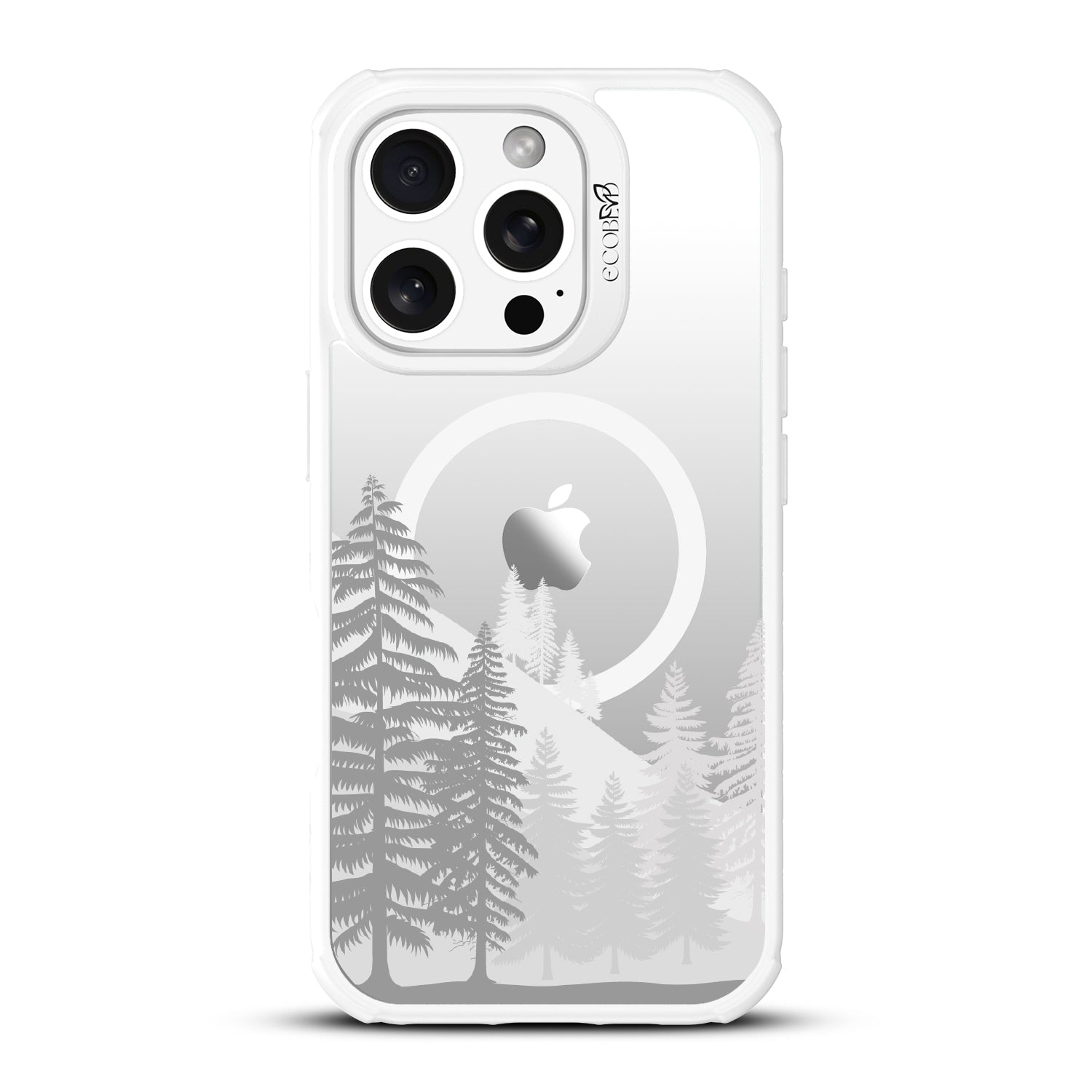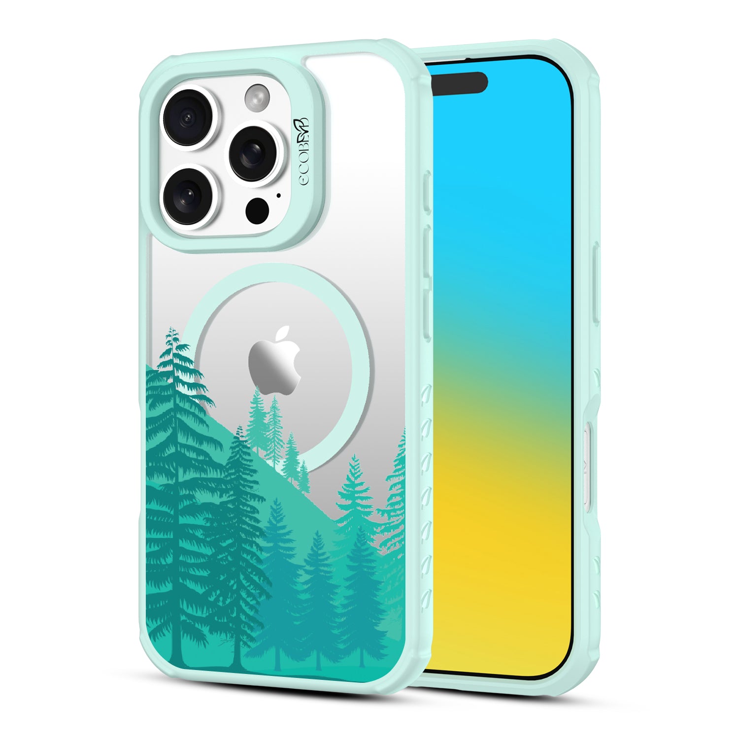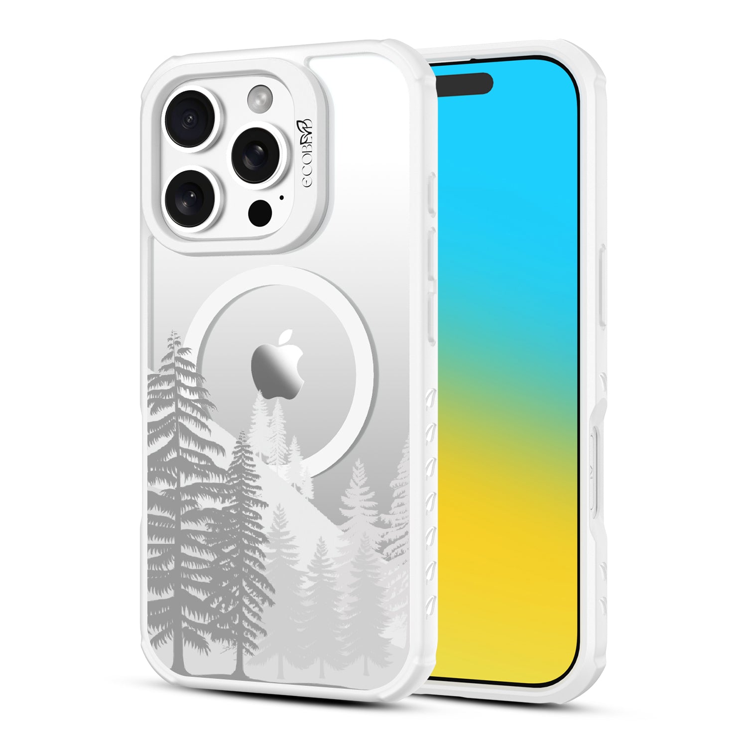 Get dialed into the wonder of nature as the Forest design on our Revive clear iPhone 16 Pro phone case surrounds your phone with a lush forest tree-line landscape of fir trees that lets you bring the great outdoors anywhere.