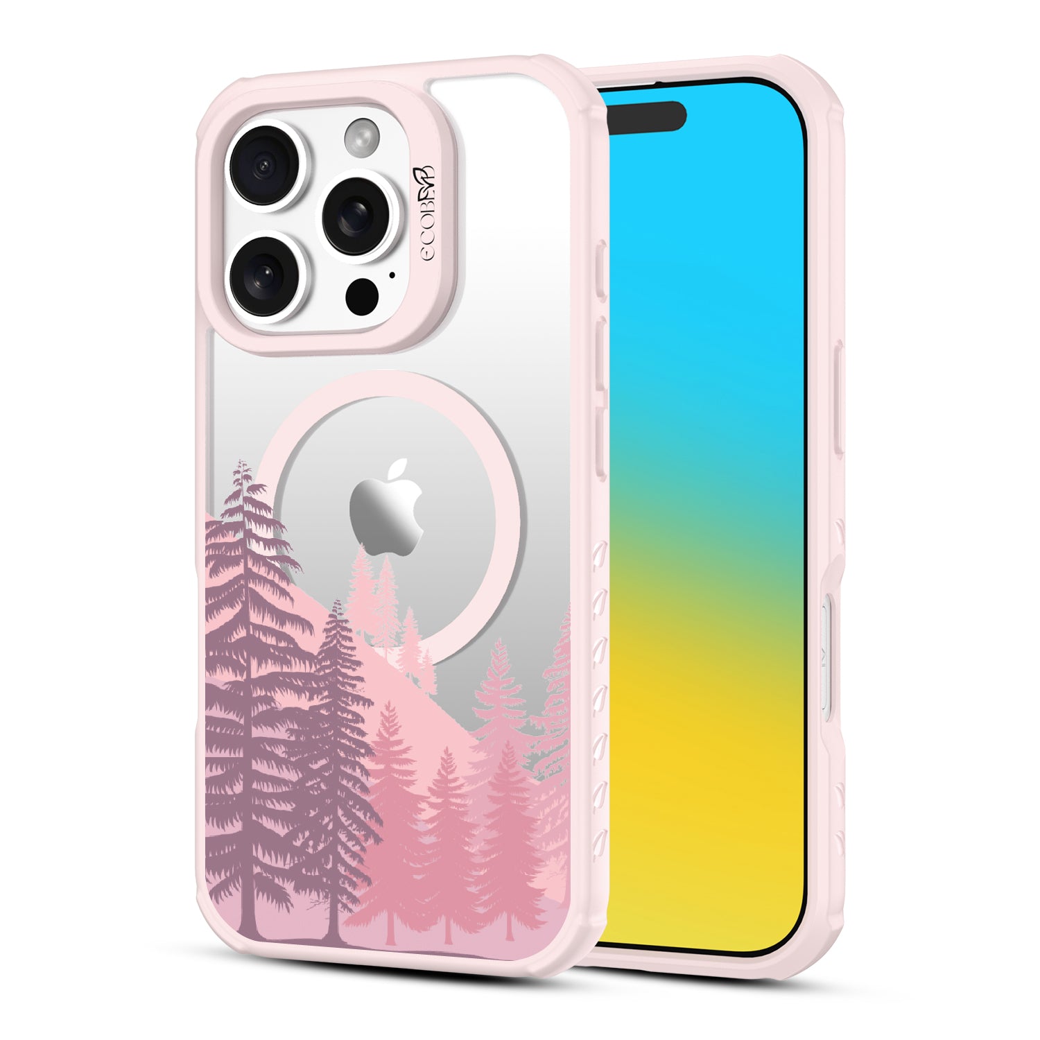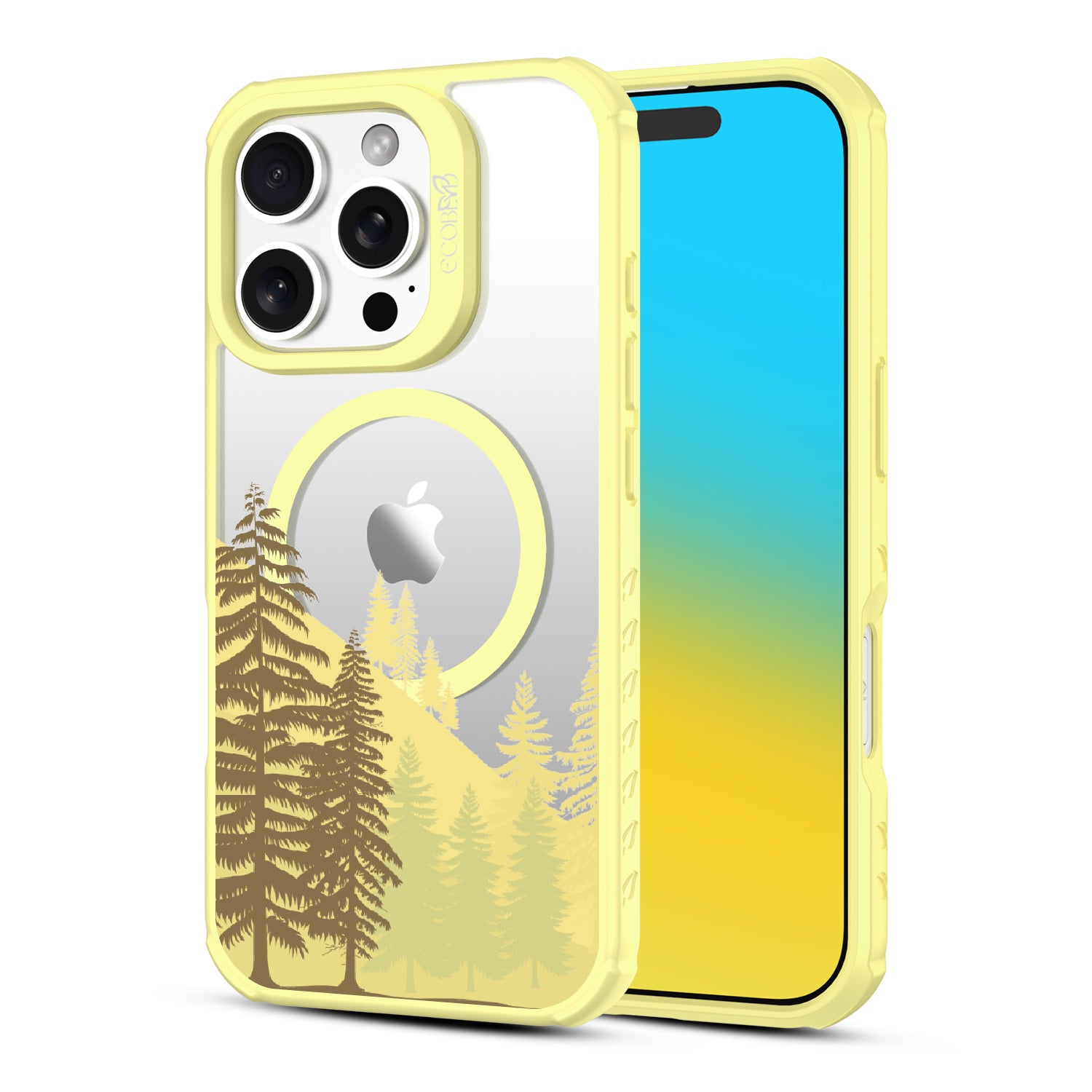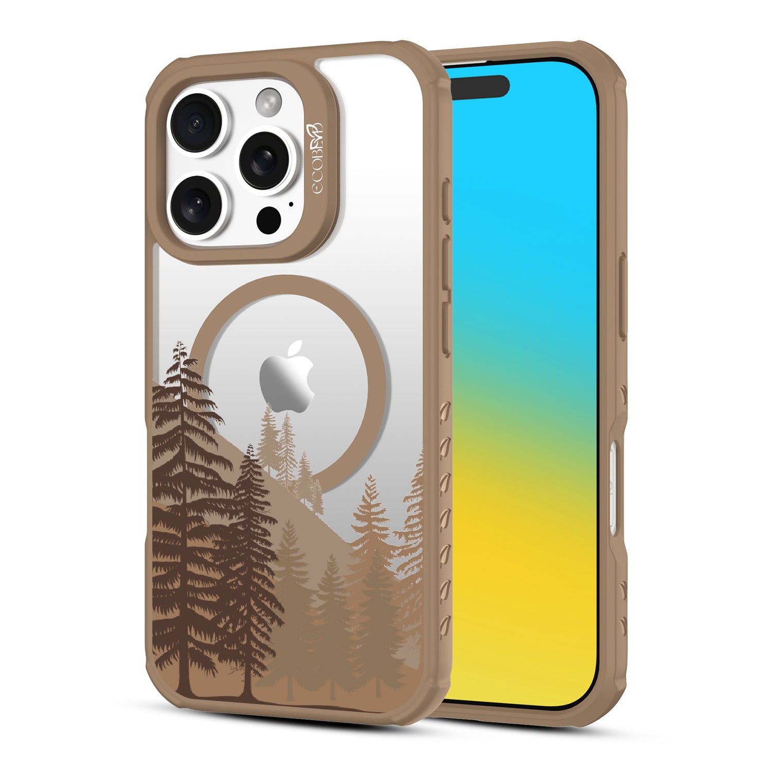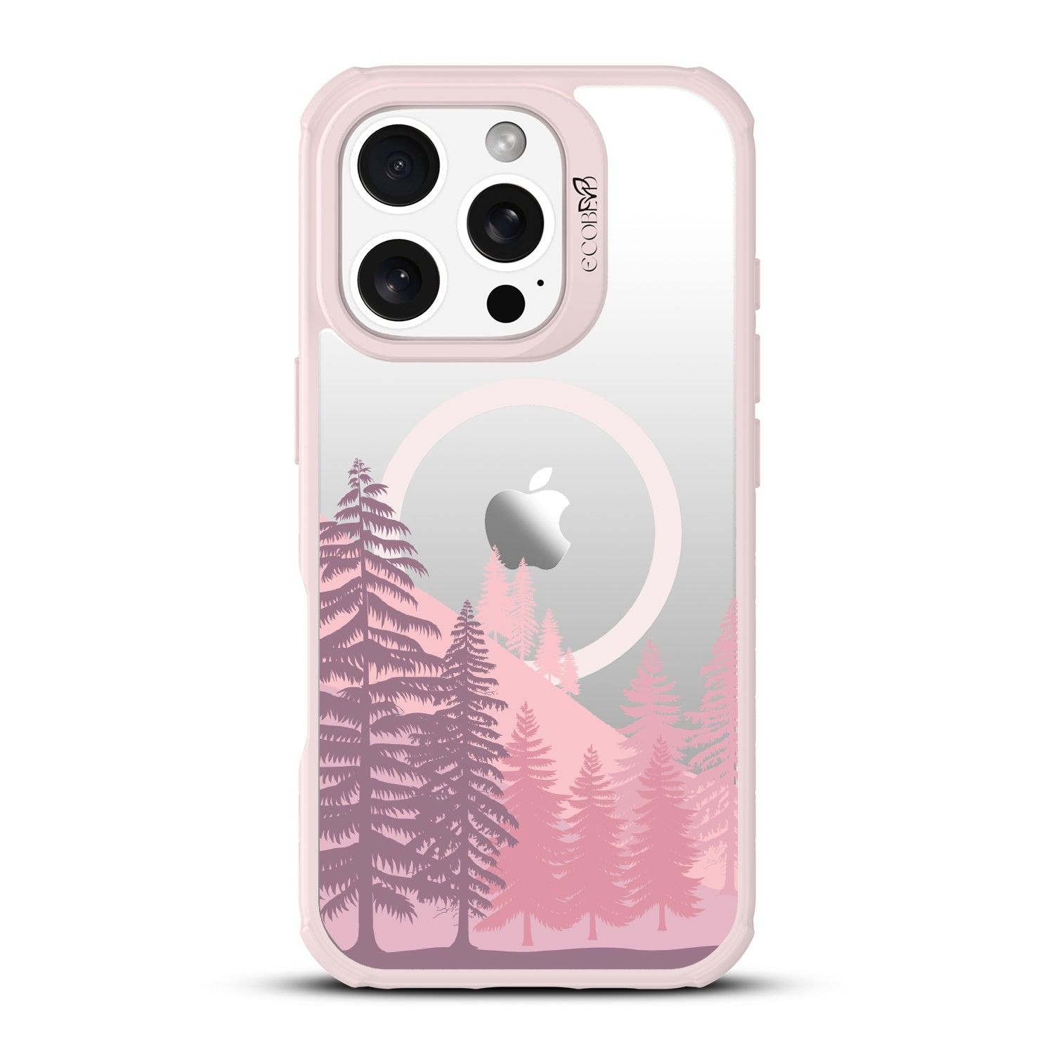 Get dialed into the wonder of nature as the Forest design on our Revive clear iPhone 16 Pro phone case surrounds your phone with a lush forest tree-line landscape of fir trees that lets you bring the great outdoors anywhere.