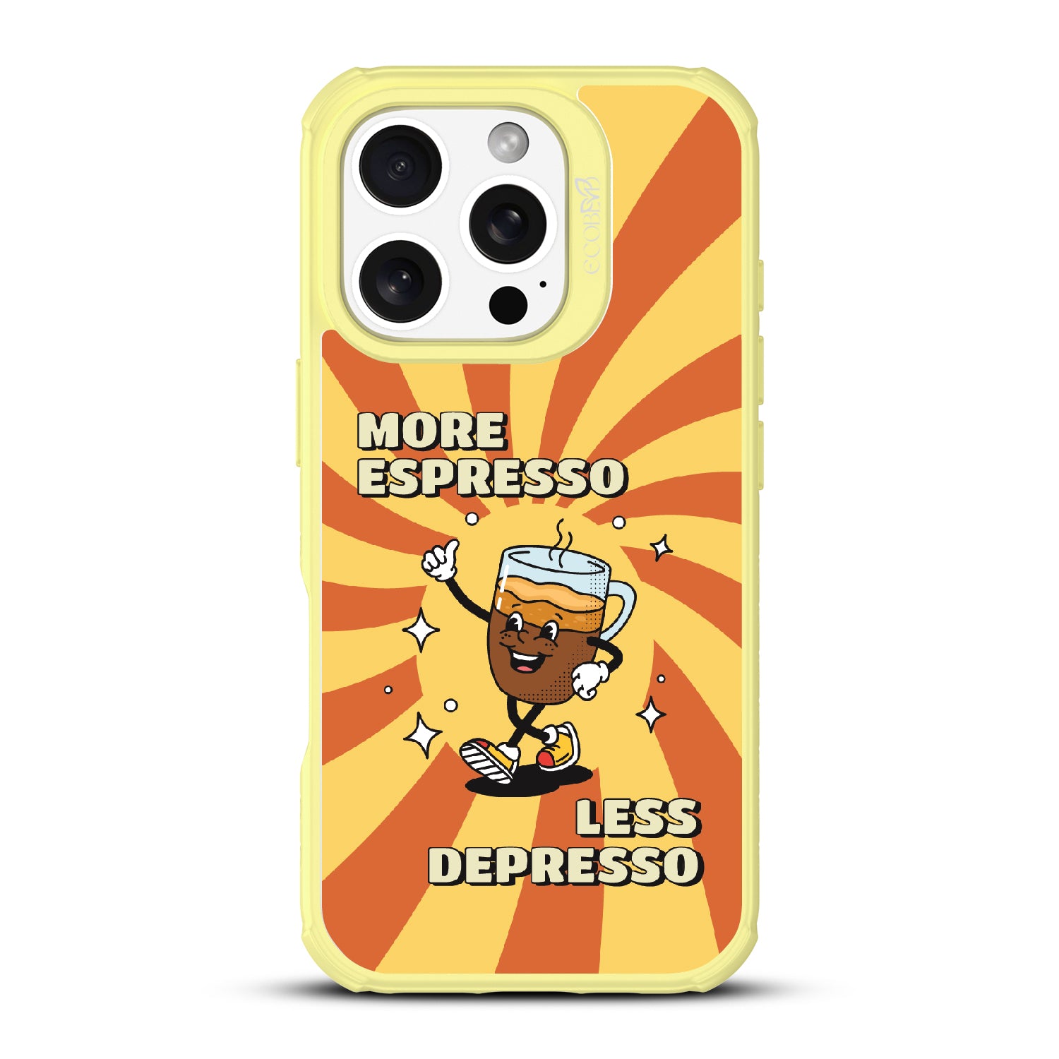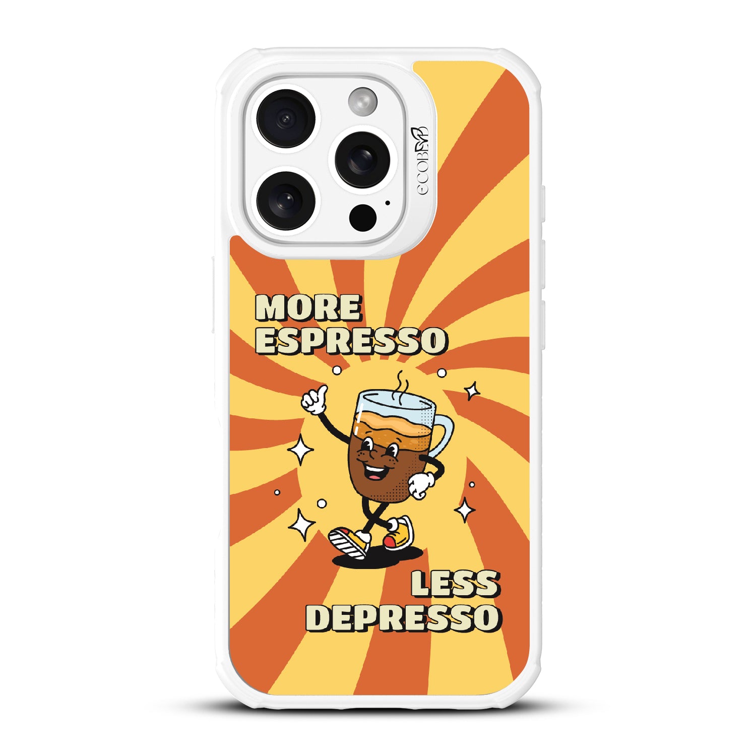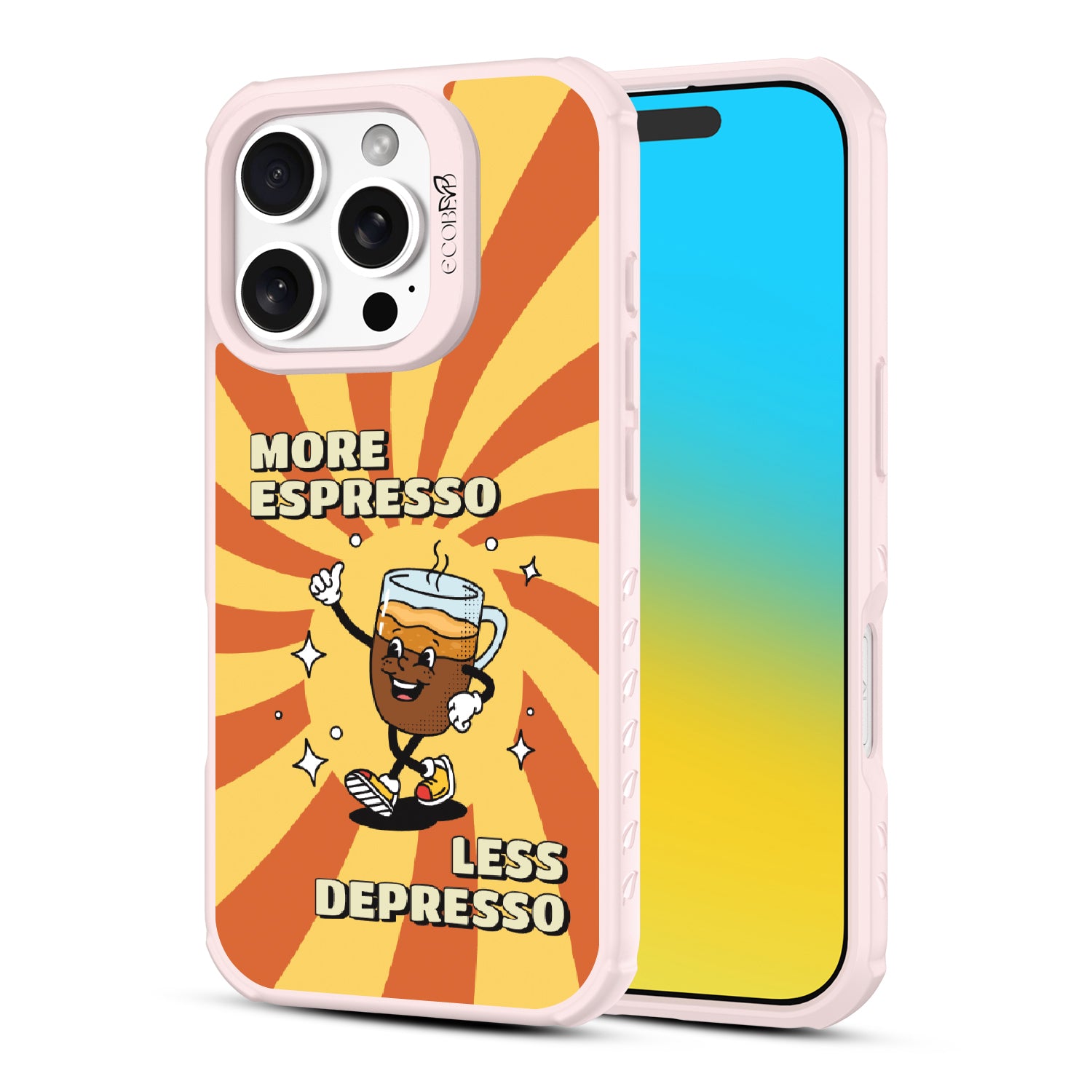 "More espresso, less depresso”—it’s that simple. A cheerful coffee mug and your new daily mantra bring good vibes to life with this playful design on our Revive clear iPhone 16 Pro case. Brew positivity and energy into every moment with a look that’s as bold as your first cup.