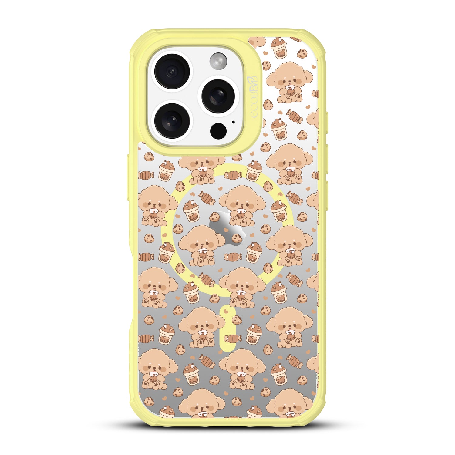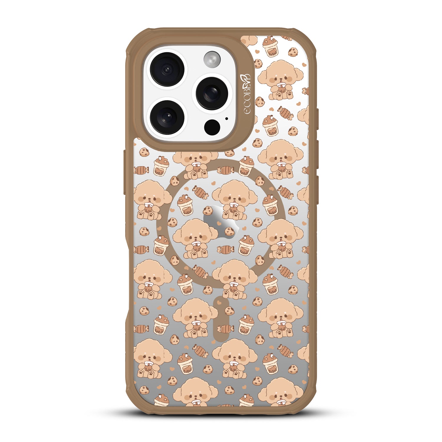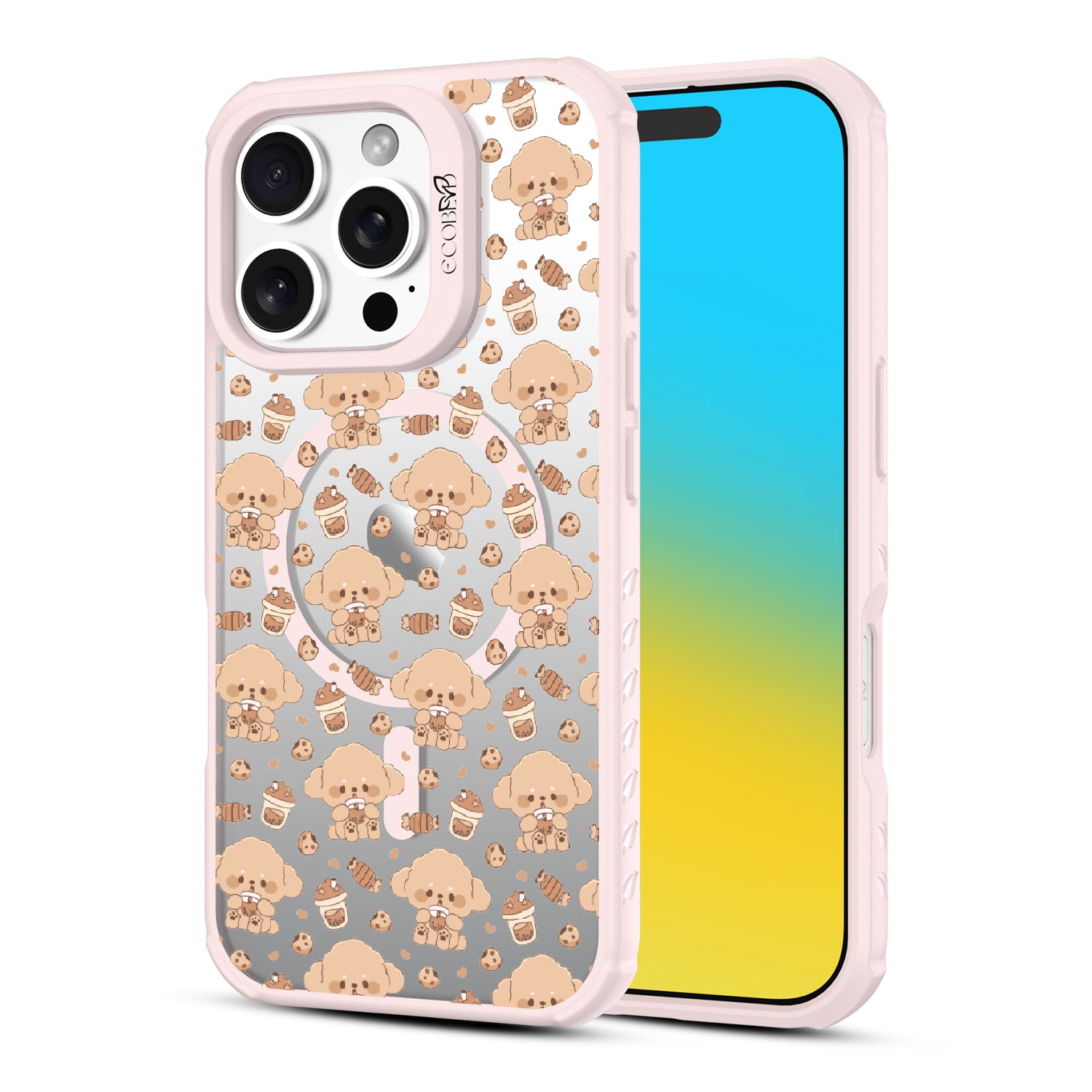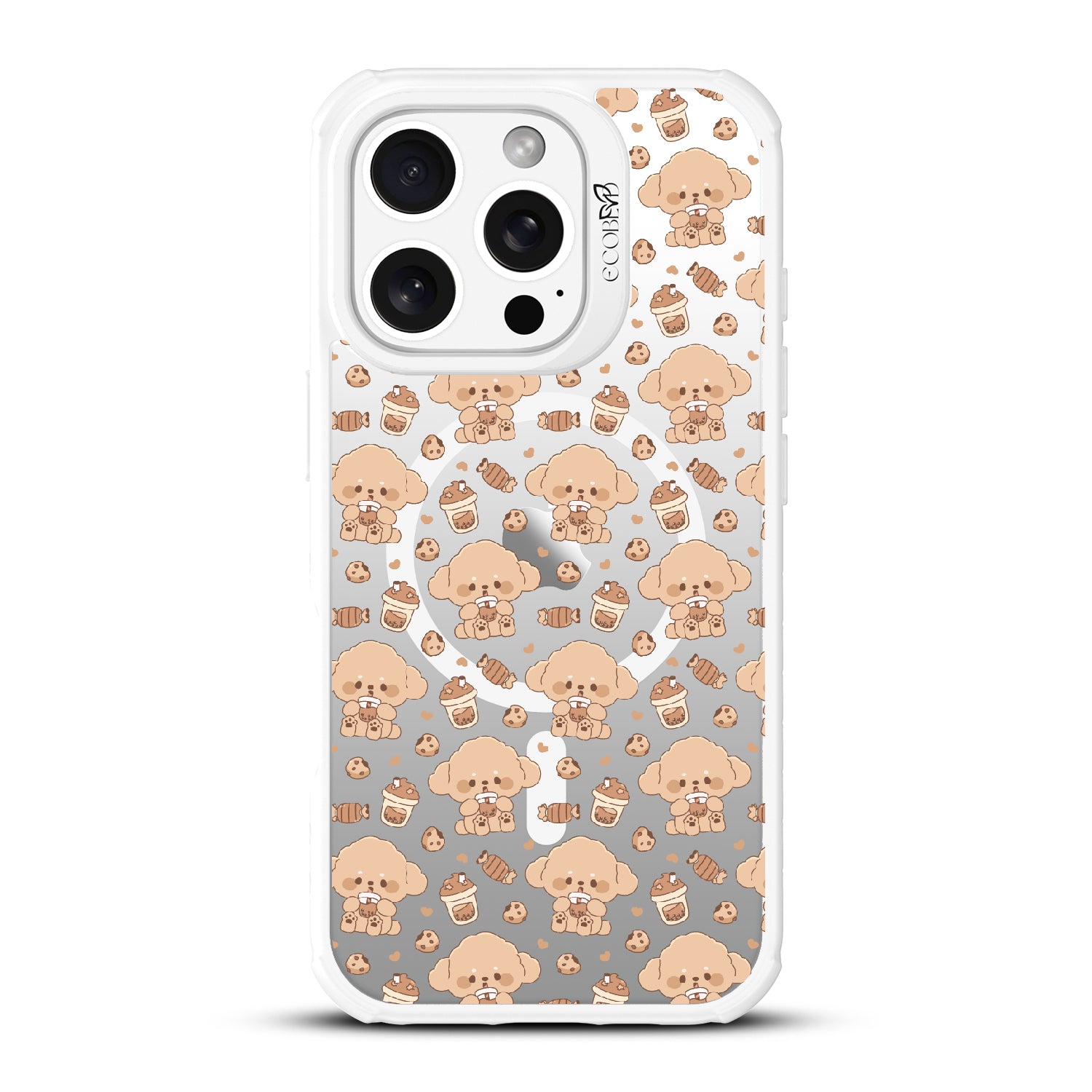 A pup cup for them, a coffee for you. The Pupaccino design on our Revive clear iPhone 16 Pro case captures the joy of coffee runs with your furry best friend, blending happy pups, frothy drinks, and pastries into one delightful look. Perfect for dog lovers who never skip a treat.