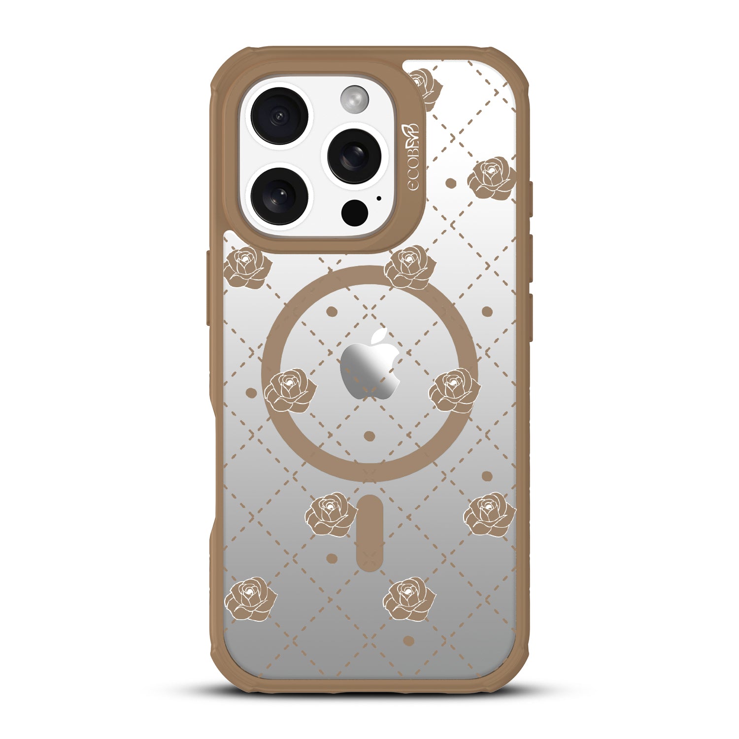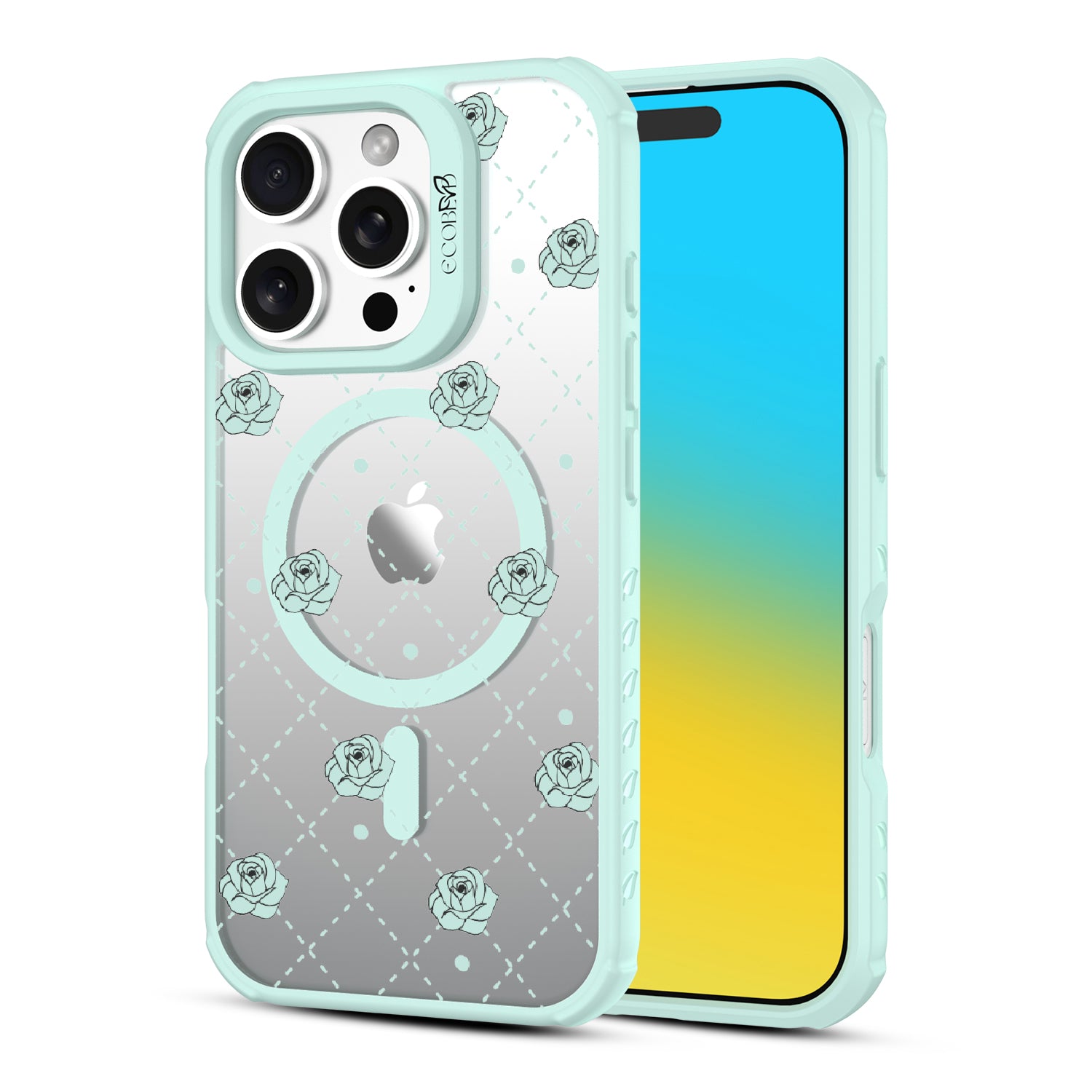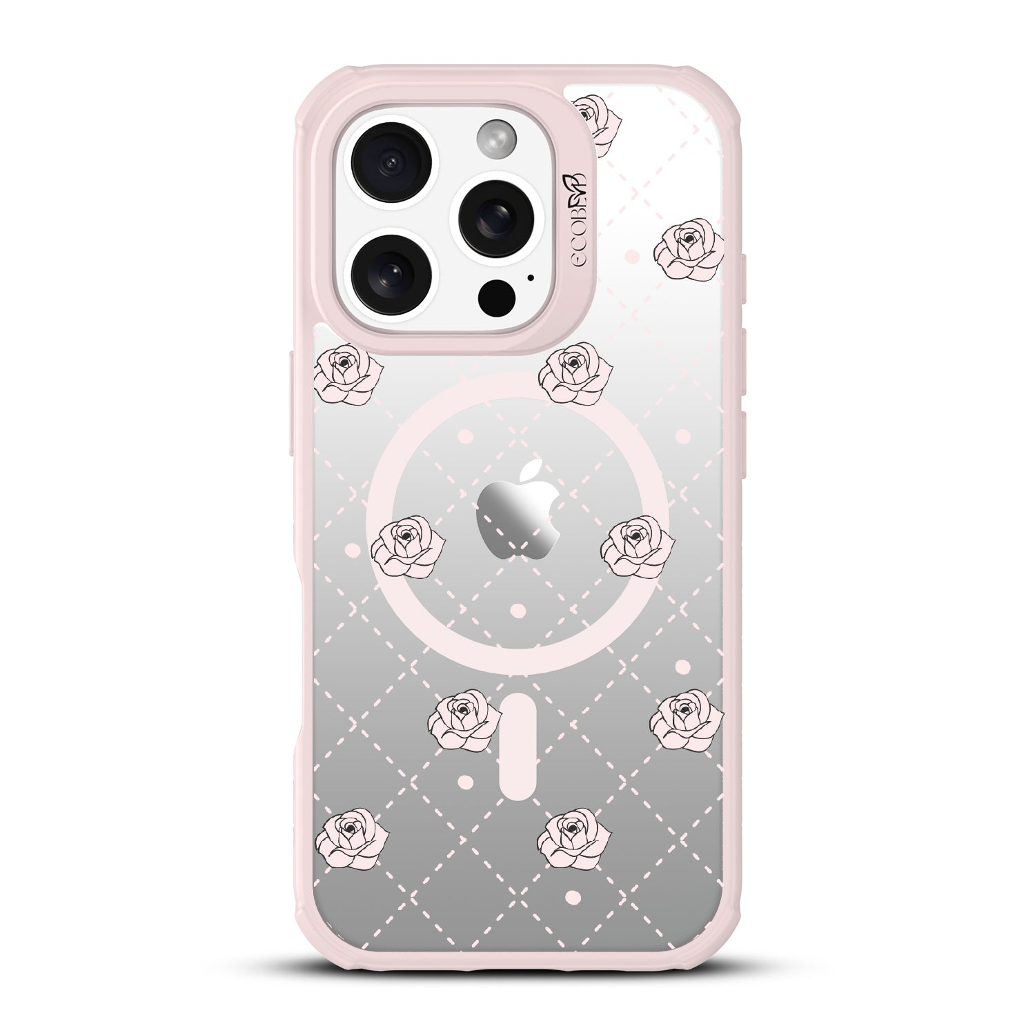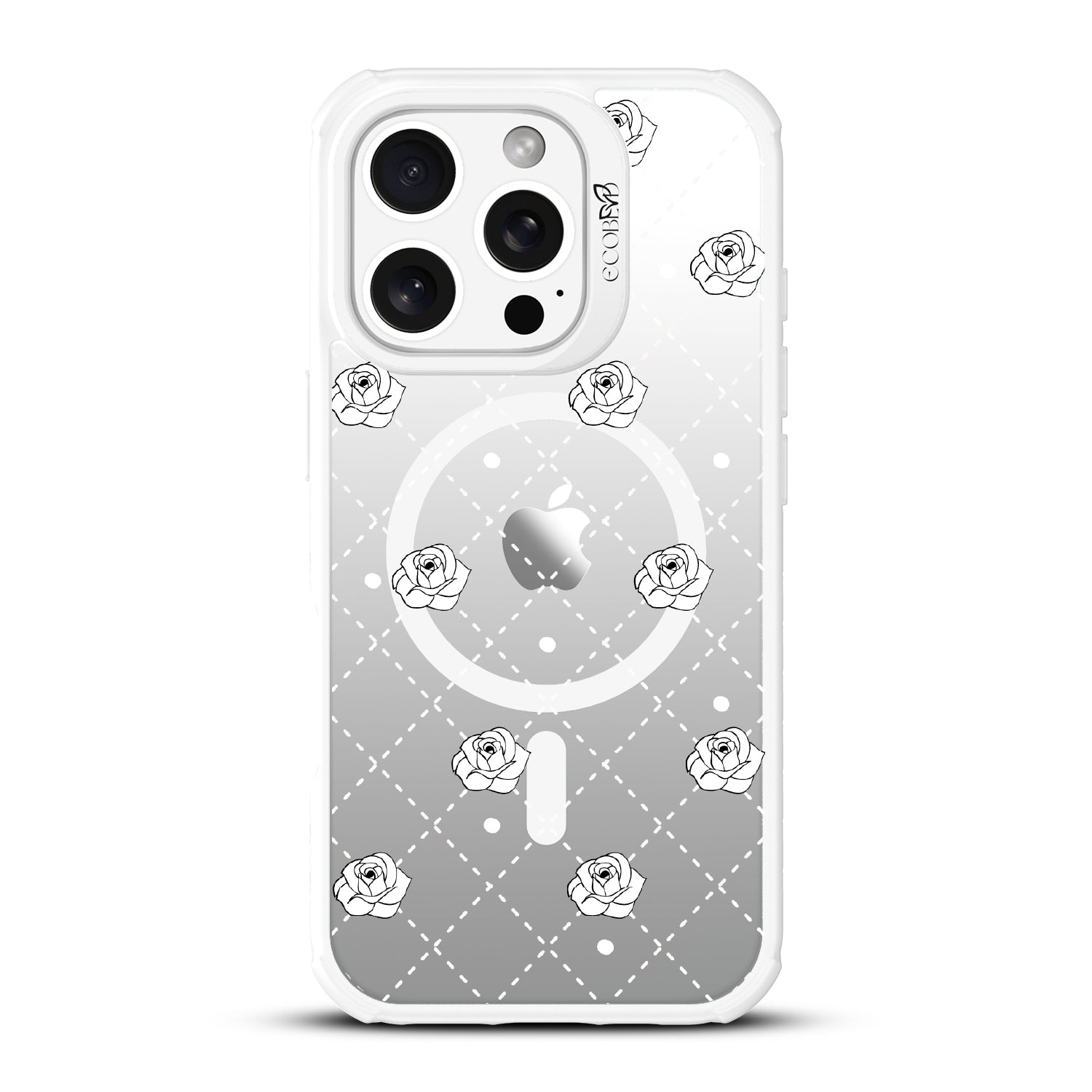Roses are red, violets are blue, but with this Rose To The Occasion design on our Revive clear iPhone 16 Pro phone case, your phone's look will be nothing but fresh and new with its white roses and polka dots on a stitched argyle background, adding that extra oomph to your style.