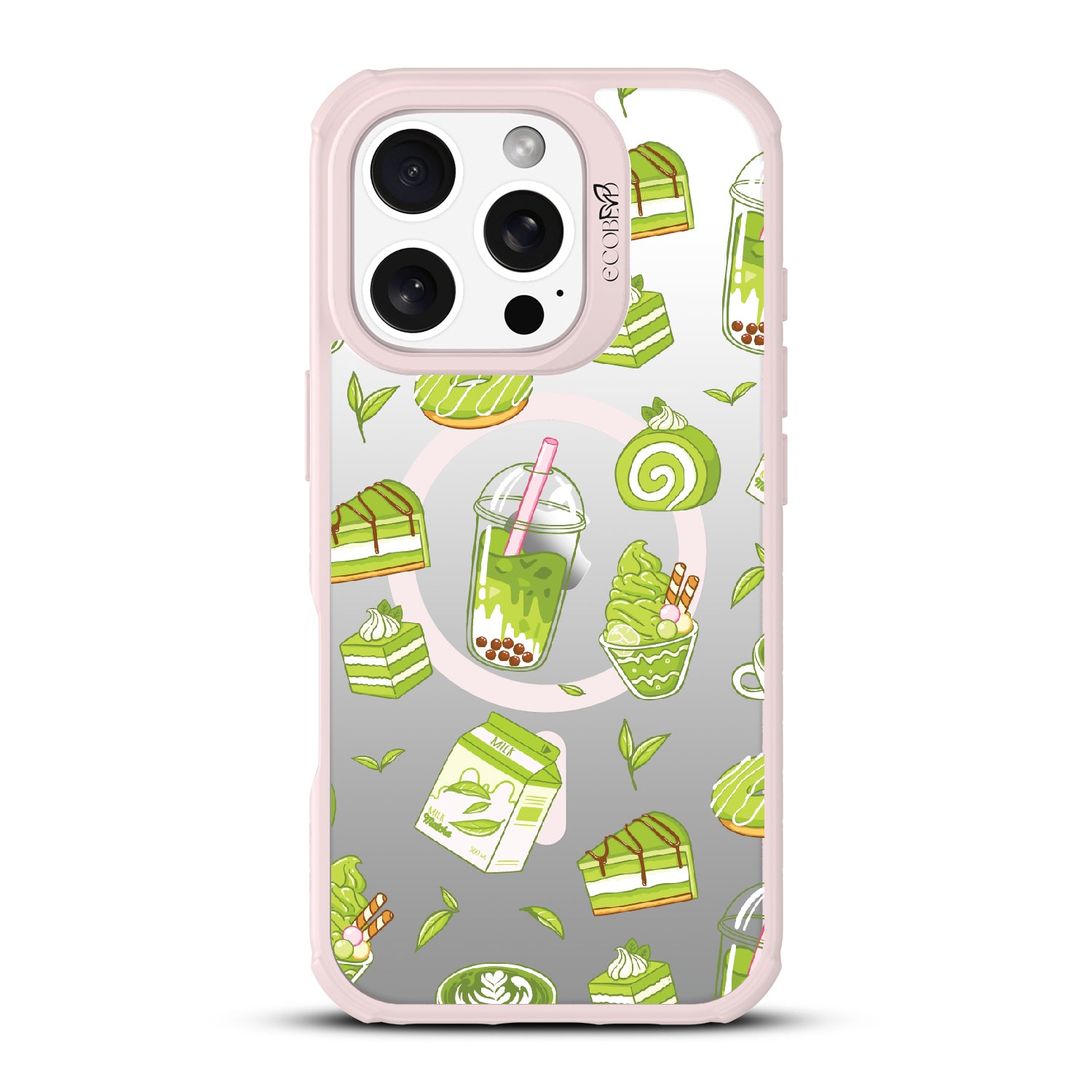 Ice cream and boba, cake, milk, and so matcha more! Overflowing with matcha flavor, this design on our Revive clear iPhone 16 Pro case! brings you a perfect blend of your favorite green treats. Because who ever said there was such a thing as too much matcha?