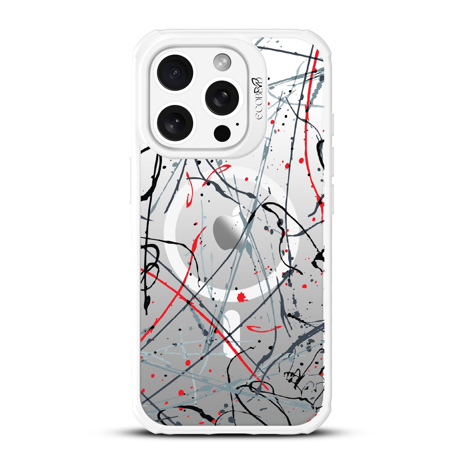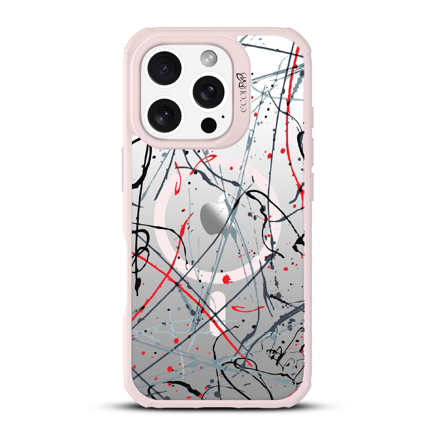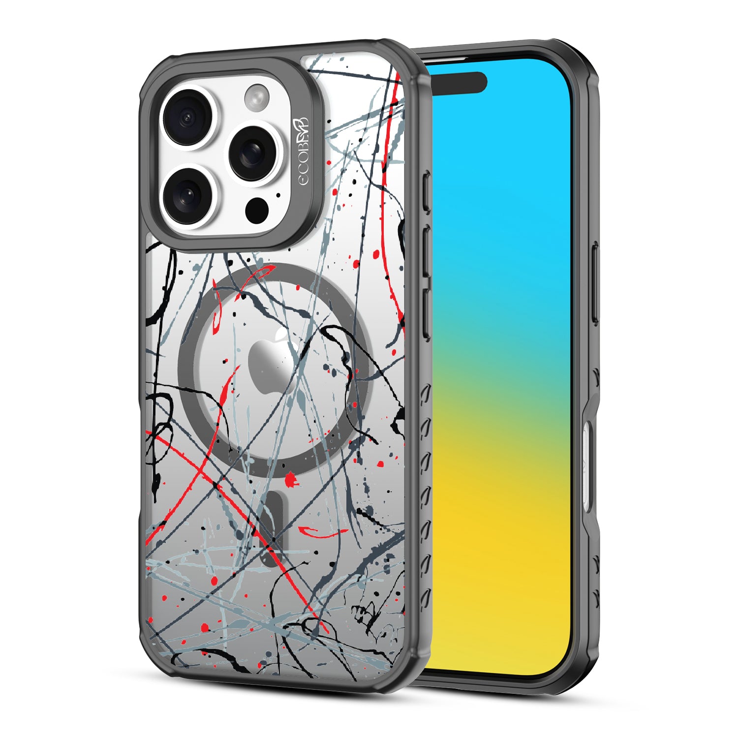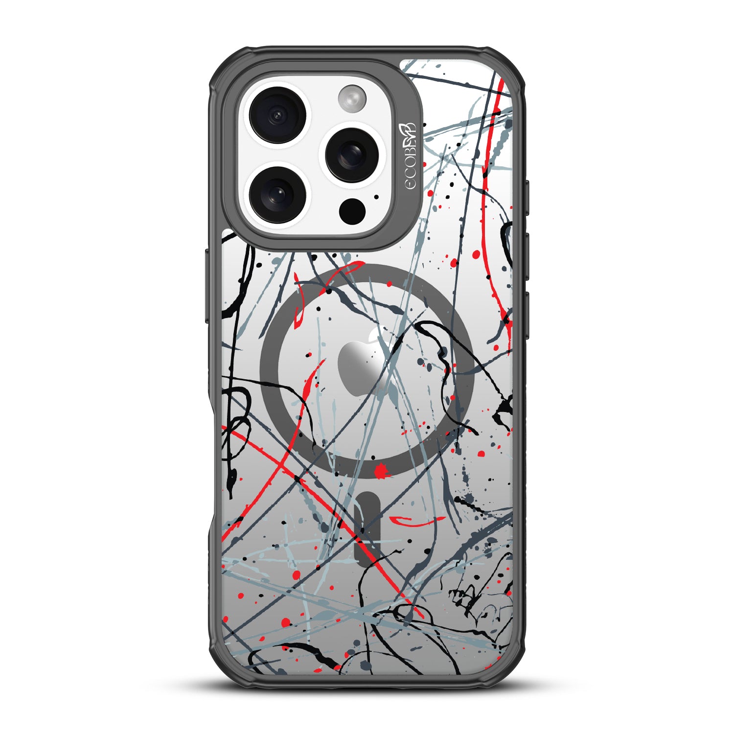 Unconventional and avant-garde, the Stroke Of Genius design on our Revive clear iPhone 16 Pro phone case is a bold statement of progress that captures the essence of a creative journey - its abstract paint splatter lines with black and red lines resembling brush strokes signify the power, potential, and elegance of a stroke or flick that can ignite the genius within you, or at least on your phone.
