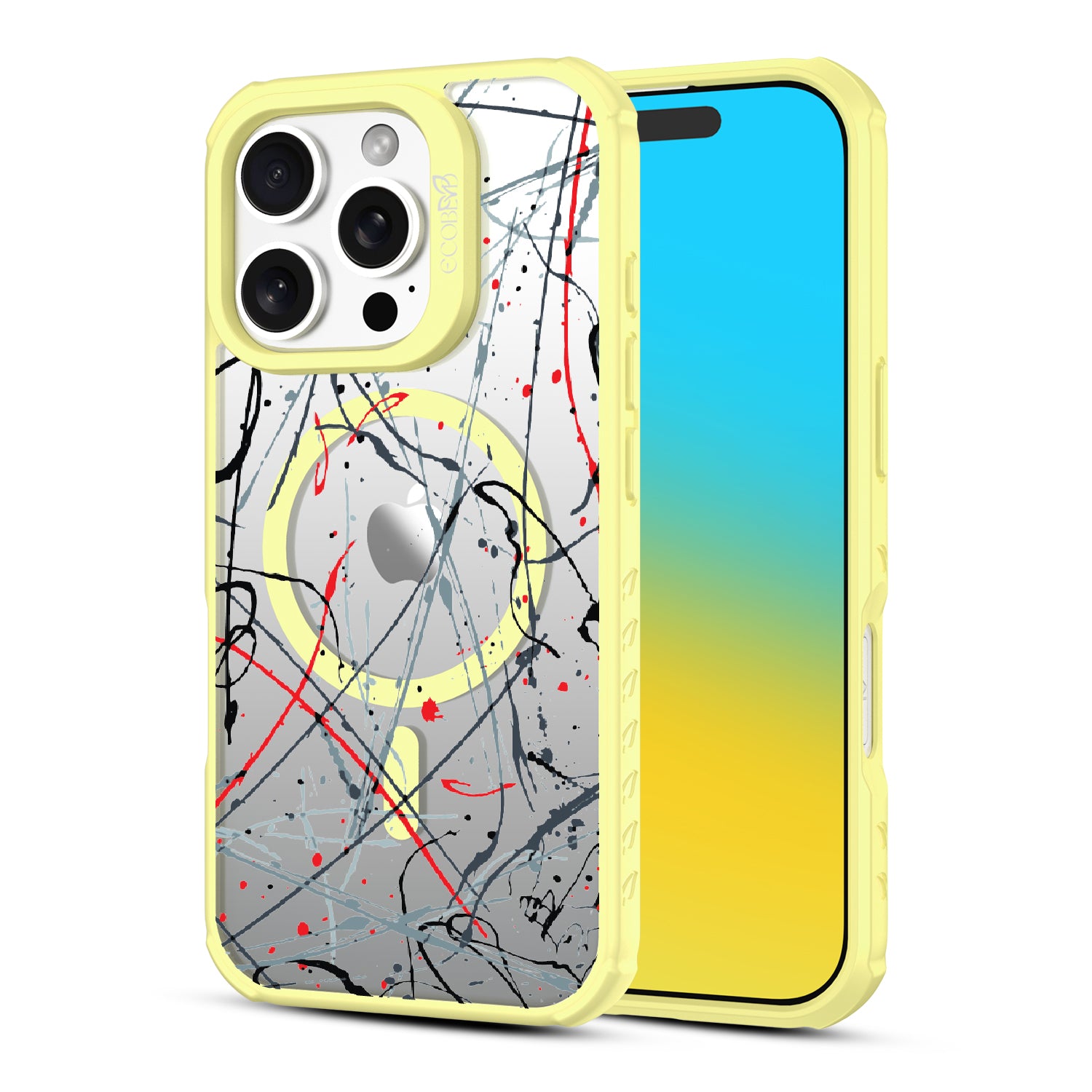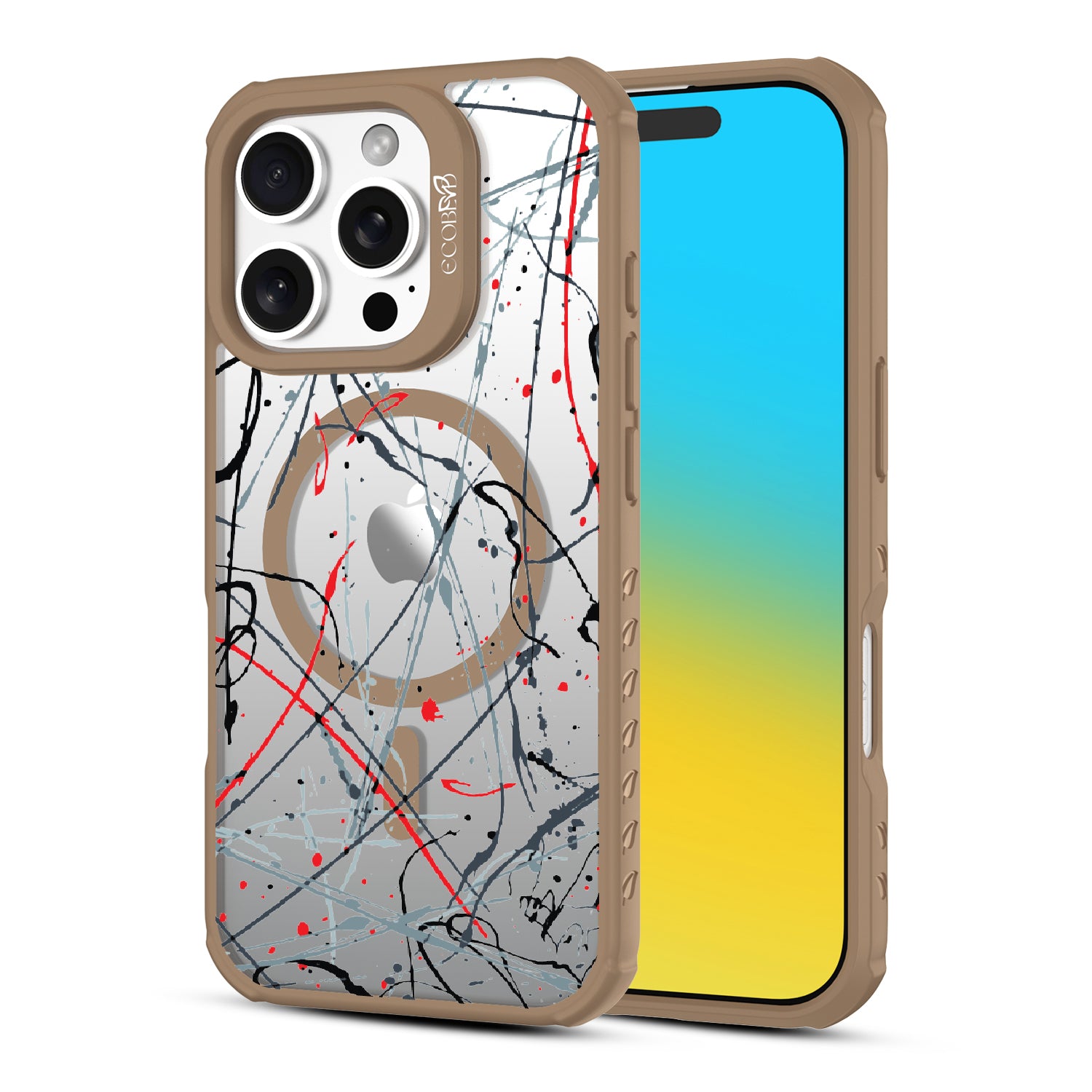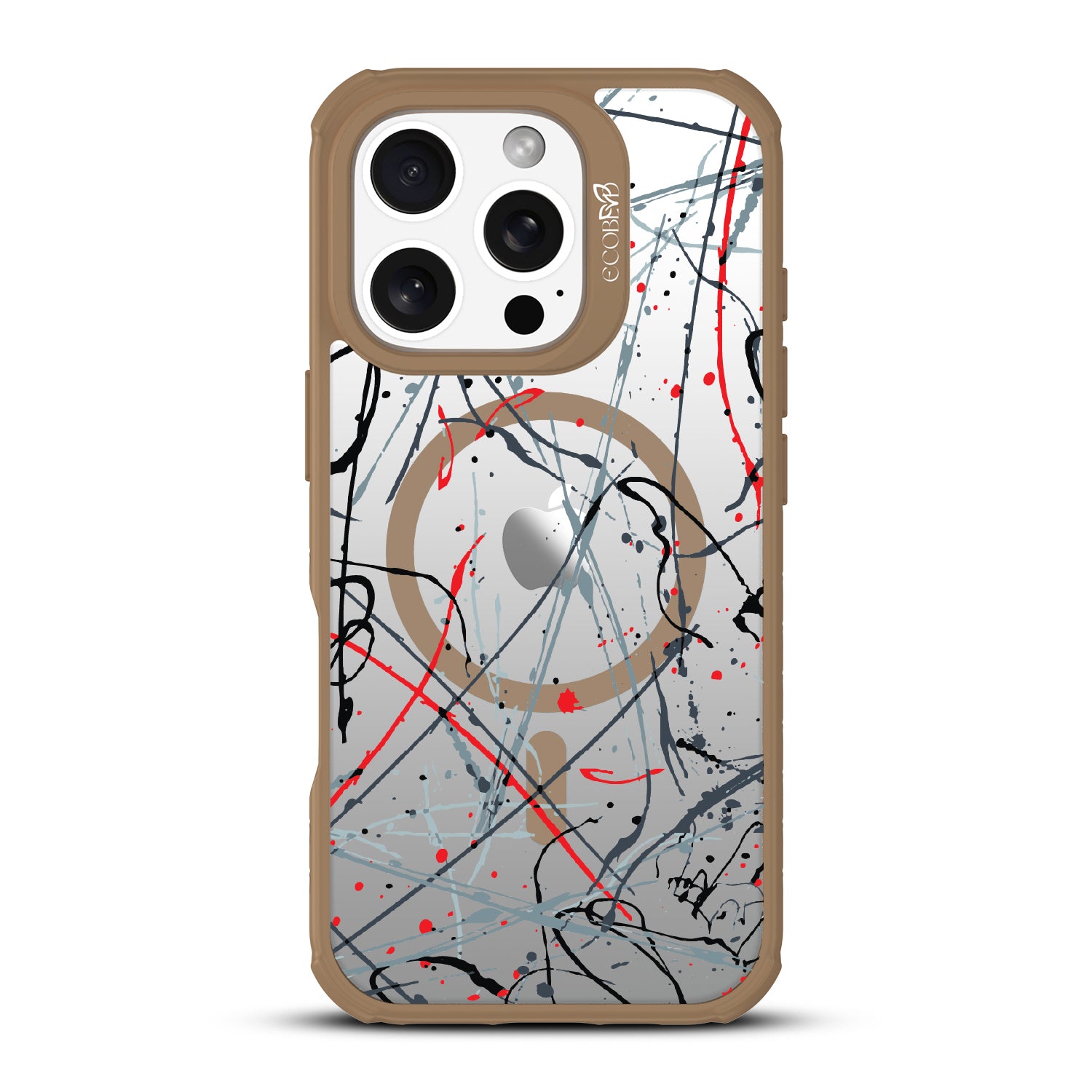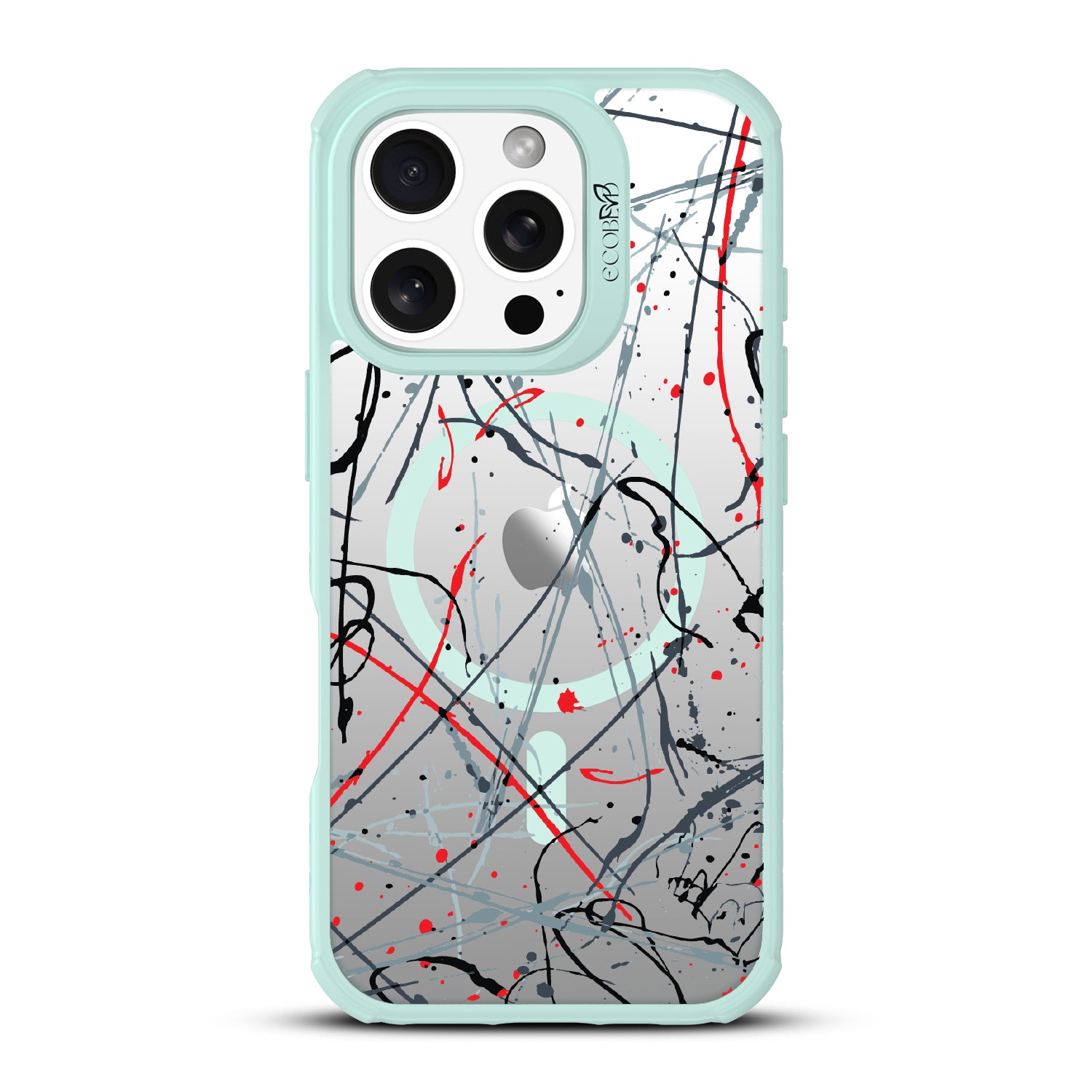 Unconventional and avant-garde, the Stroke Of Genius design on our Revive clear iPhone 16 Pro phone case is a bold statement of progress that captures the essence of a creative journey - its abstract paint splatter lines with black and red lines resembling brush strokes signify the power, potential, and elegance of a stroke or flick that can ignite the genius within you, or at least on your phone.