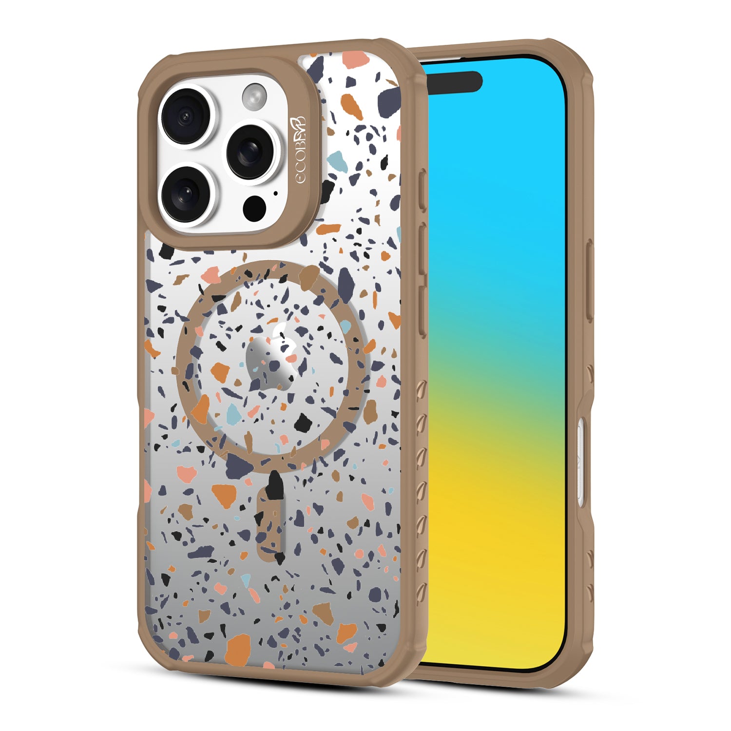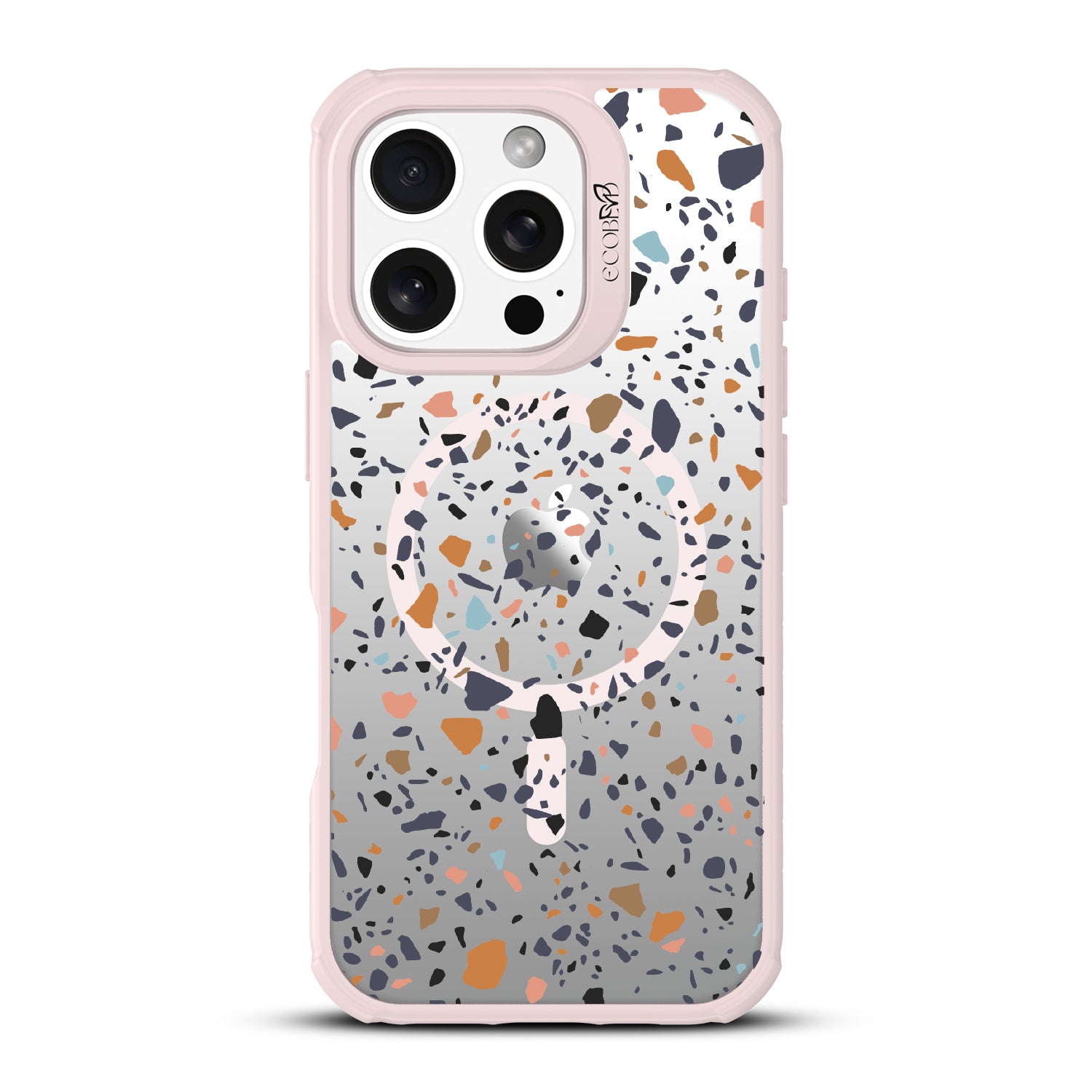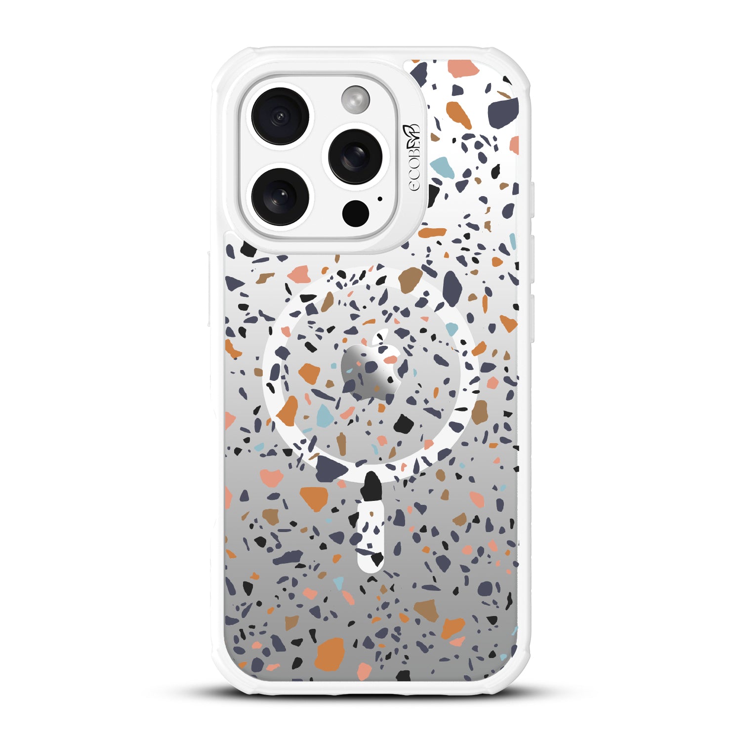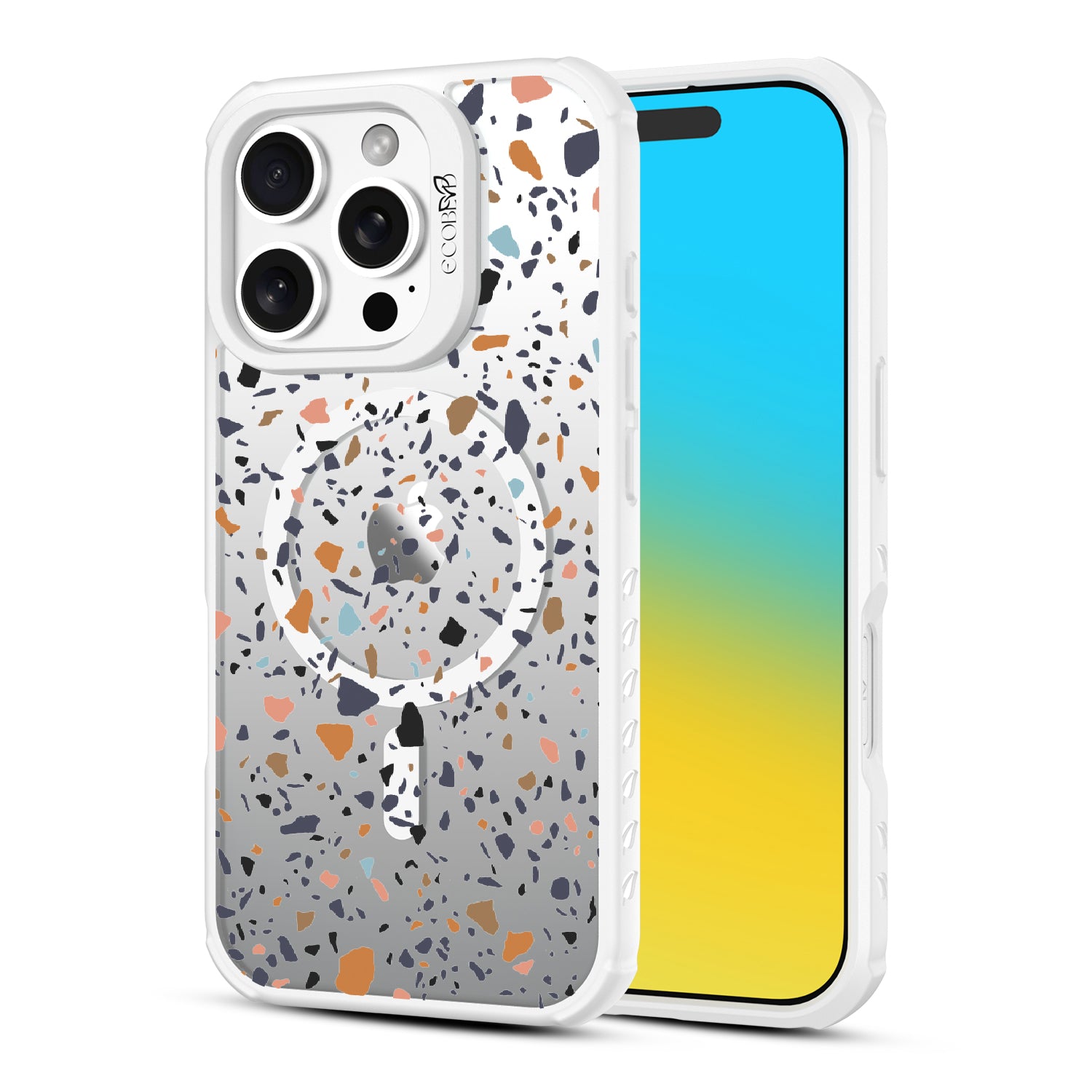 The Terrazzo design on our Revive clear iPhone 16 Pro phone case is like confetti for your phone, with its bold kaleidoscopic colors recalling a classic mid-century modern look that has swept fashion and architecture worldwide.