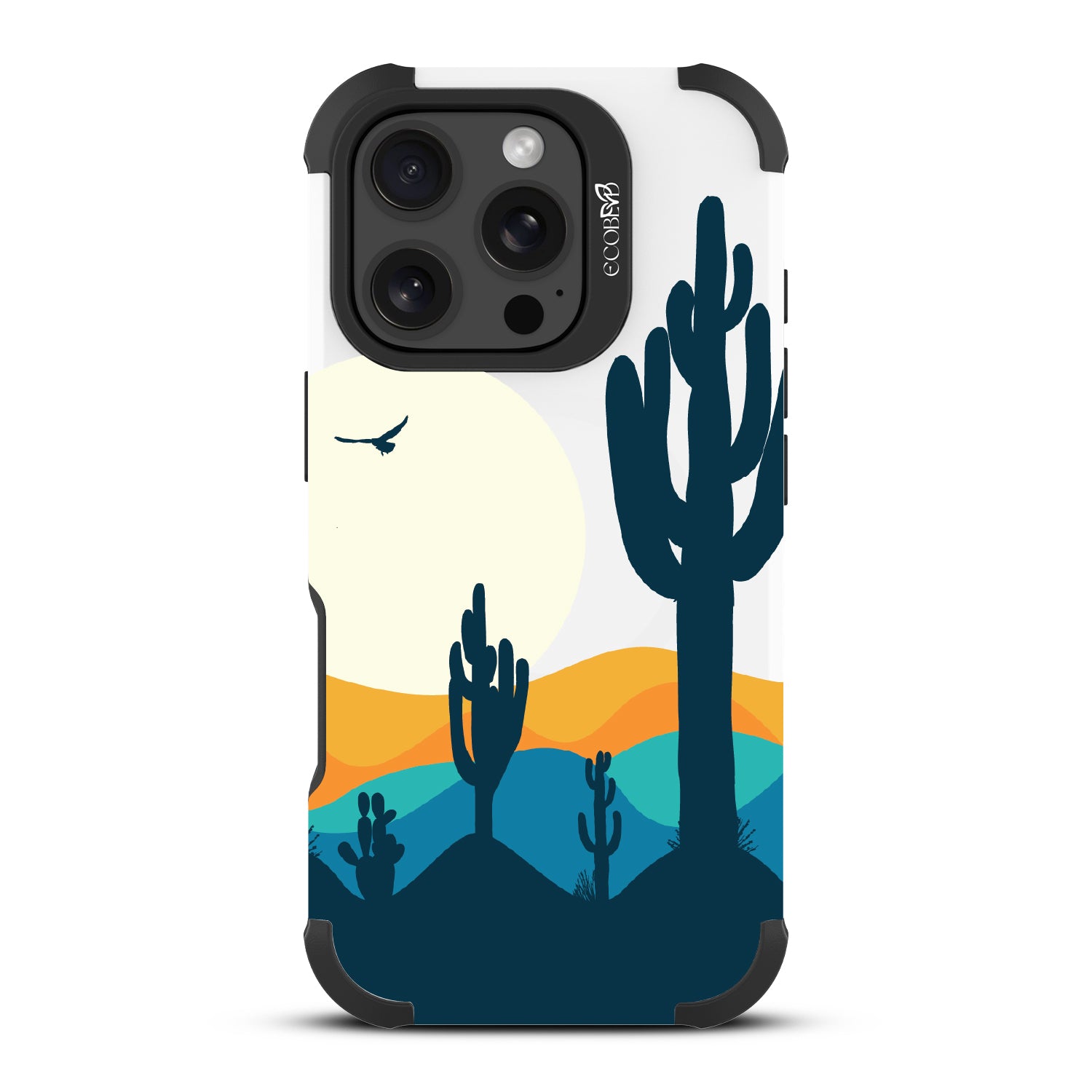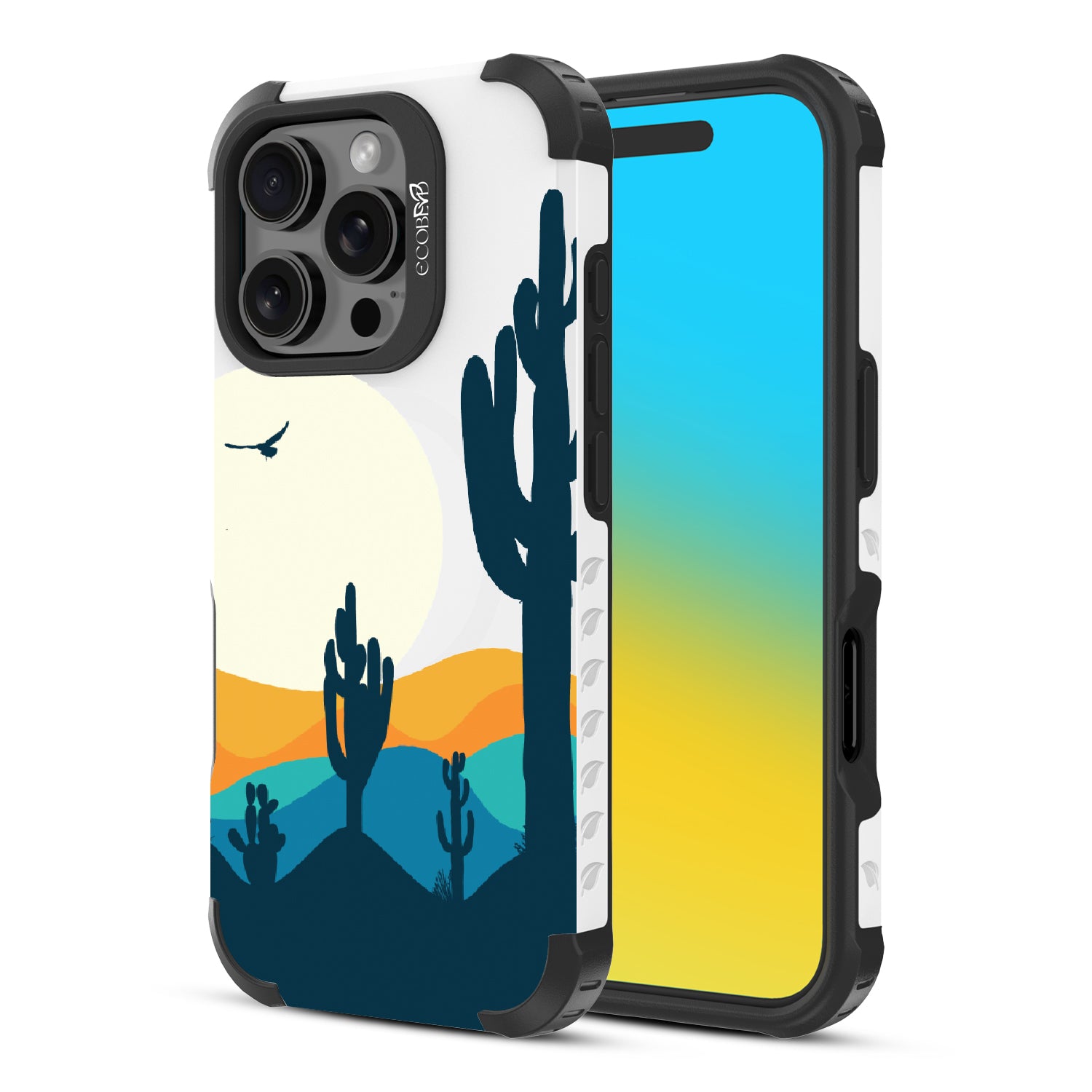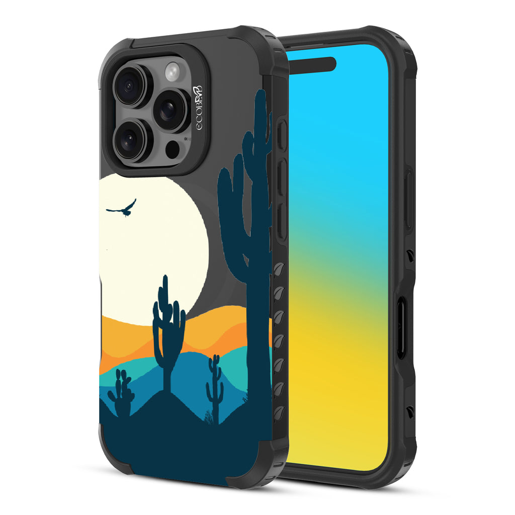 Get lost in the Desert Daze with this design on our Reforge rugged iPhone 16 Pro phone case, where the vast beauty of the desert comes to life. It's a homage to those golden hours when the sun dips low, and the world glows with an otherworldly light, captured right on your phone.