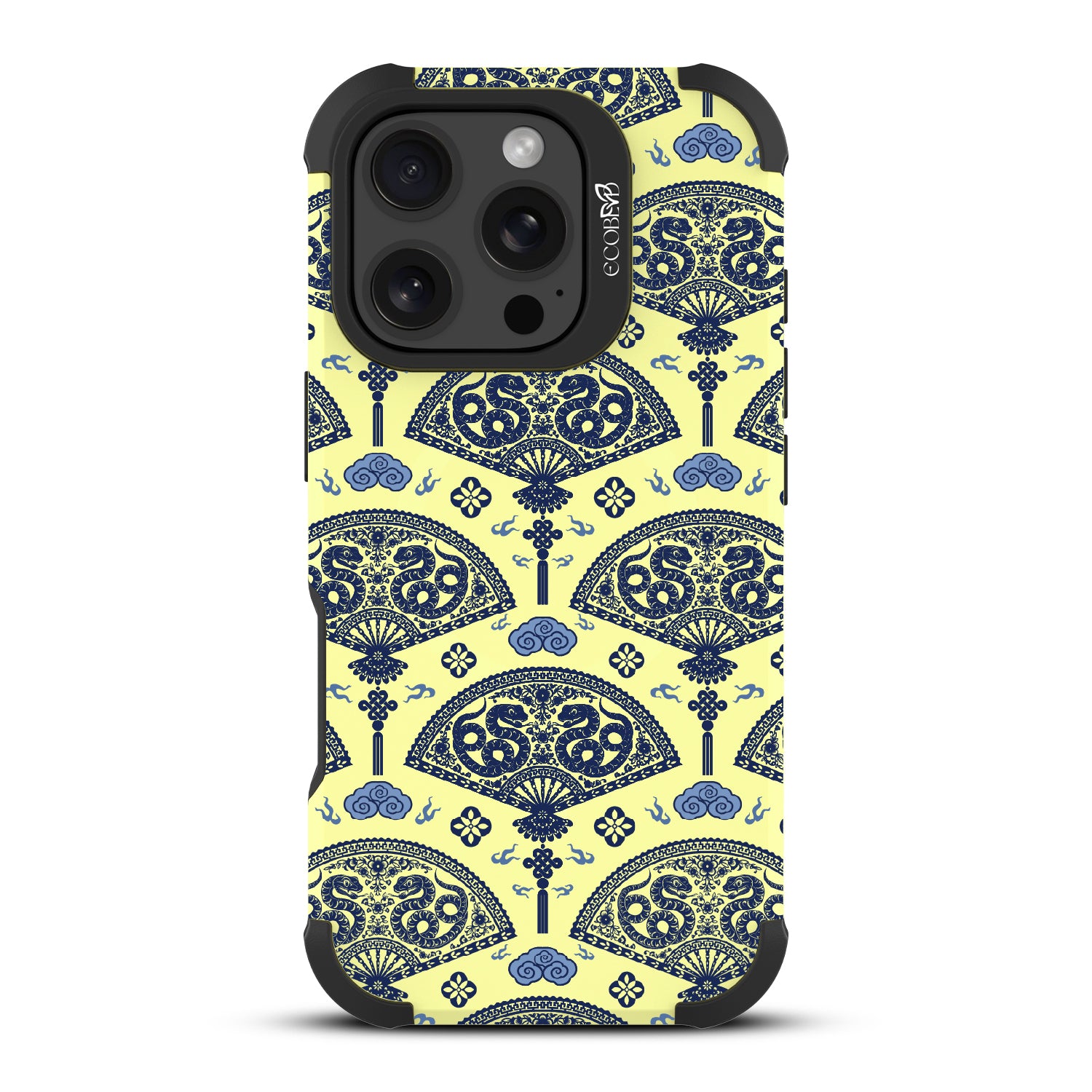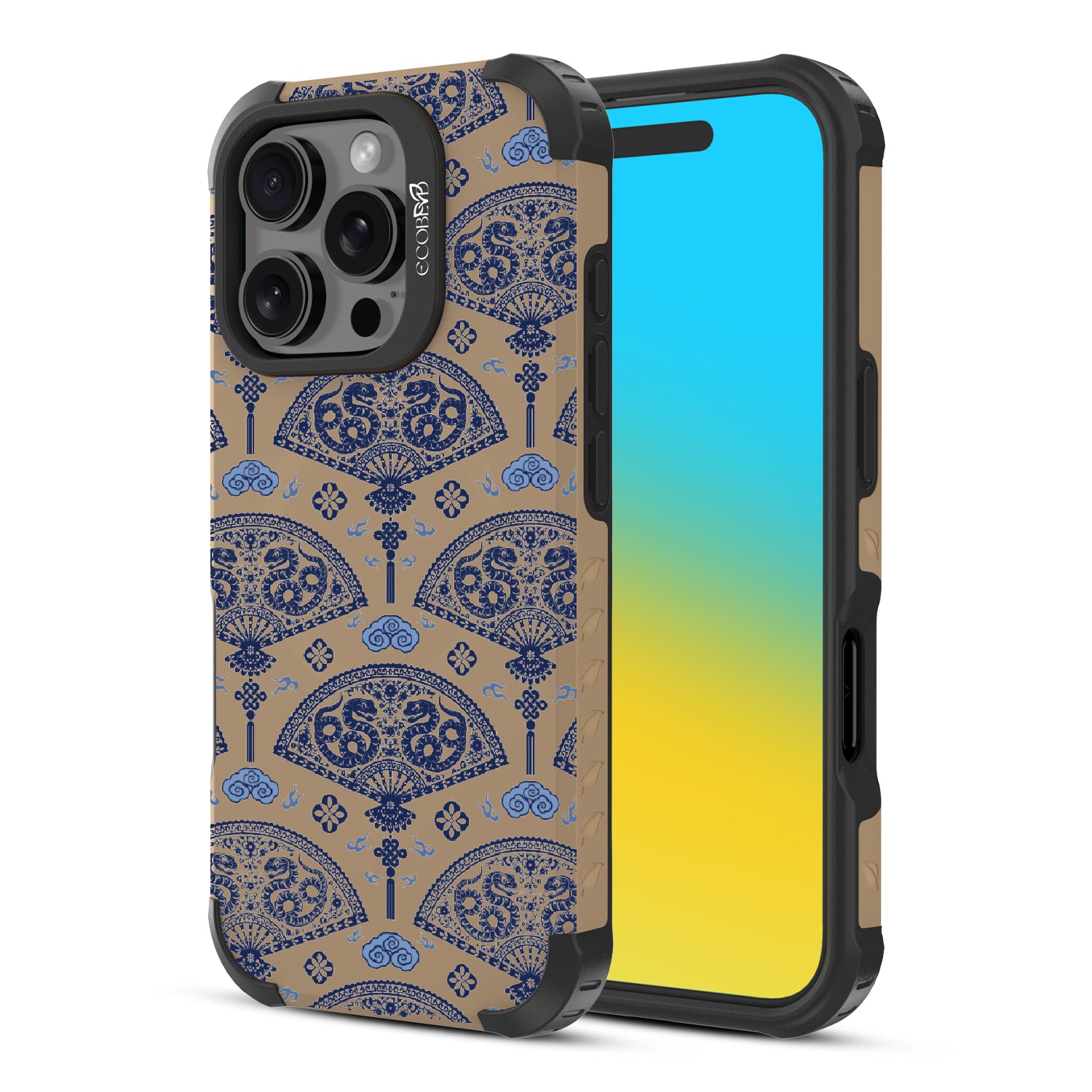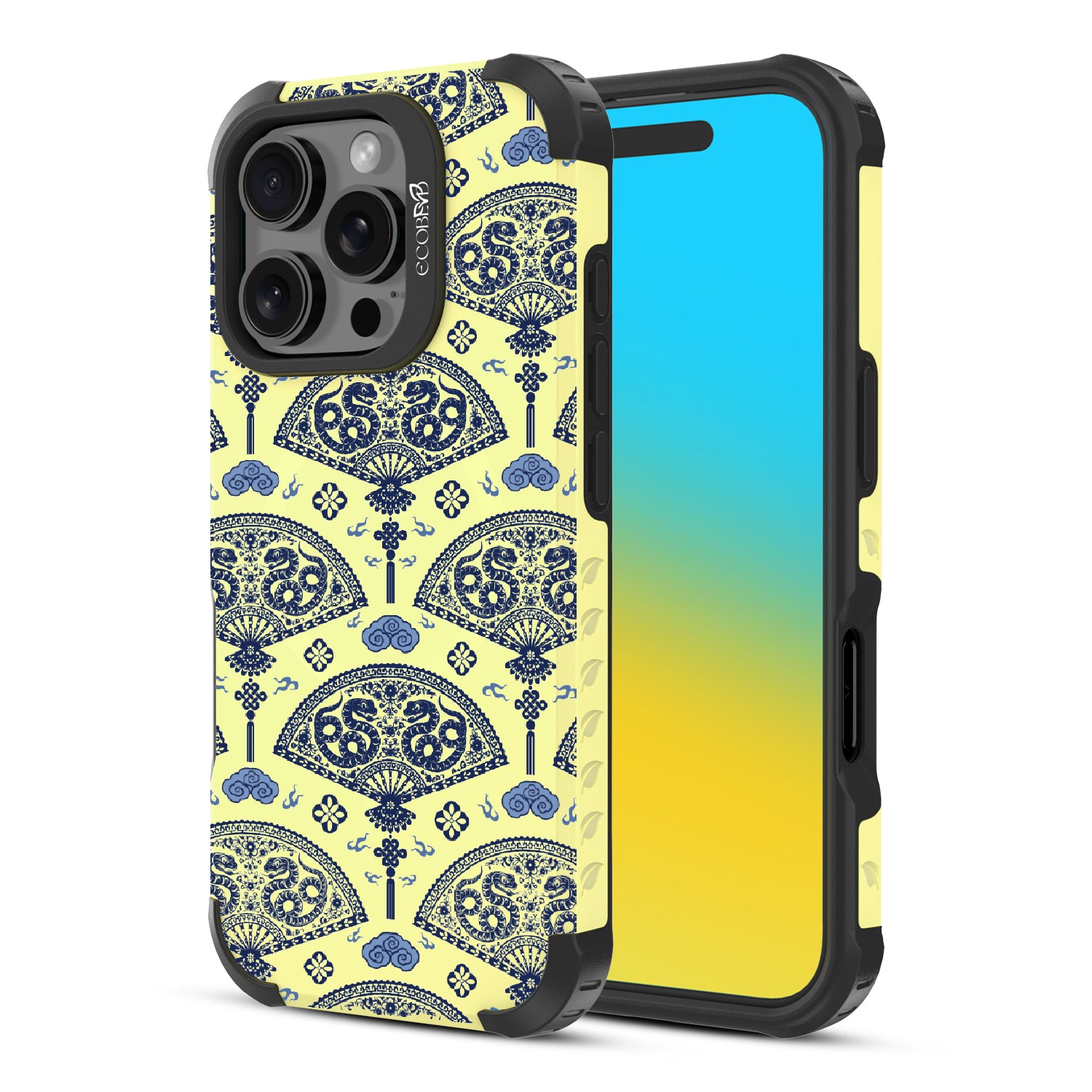 Let the winds of good fortune blow your way with the Fanning Fortune design on our Reforge rugged iPhone 16 Pro phone case. Golden serpents coil through beautifully detailed fans, a symbol of protection and prosperity for the Year of the Snake. The blue and yellow hues reflect the harmony between calmness and vitality, setting the tone for a year filled with new opportunities and growth.