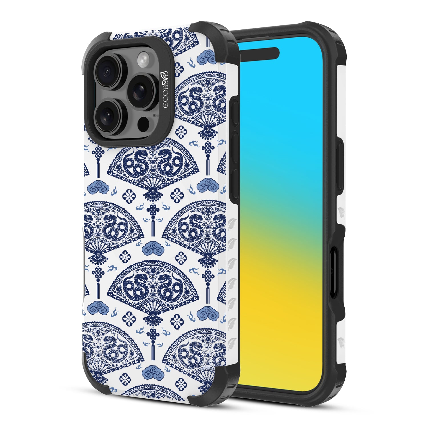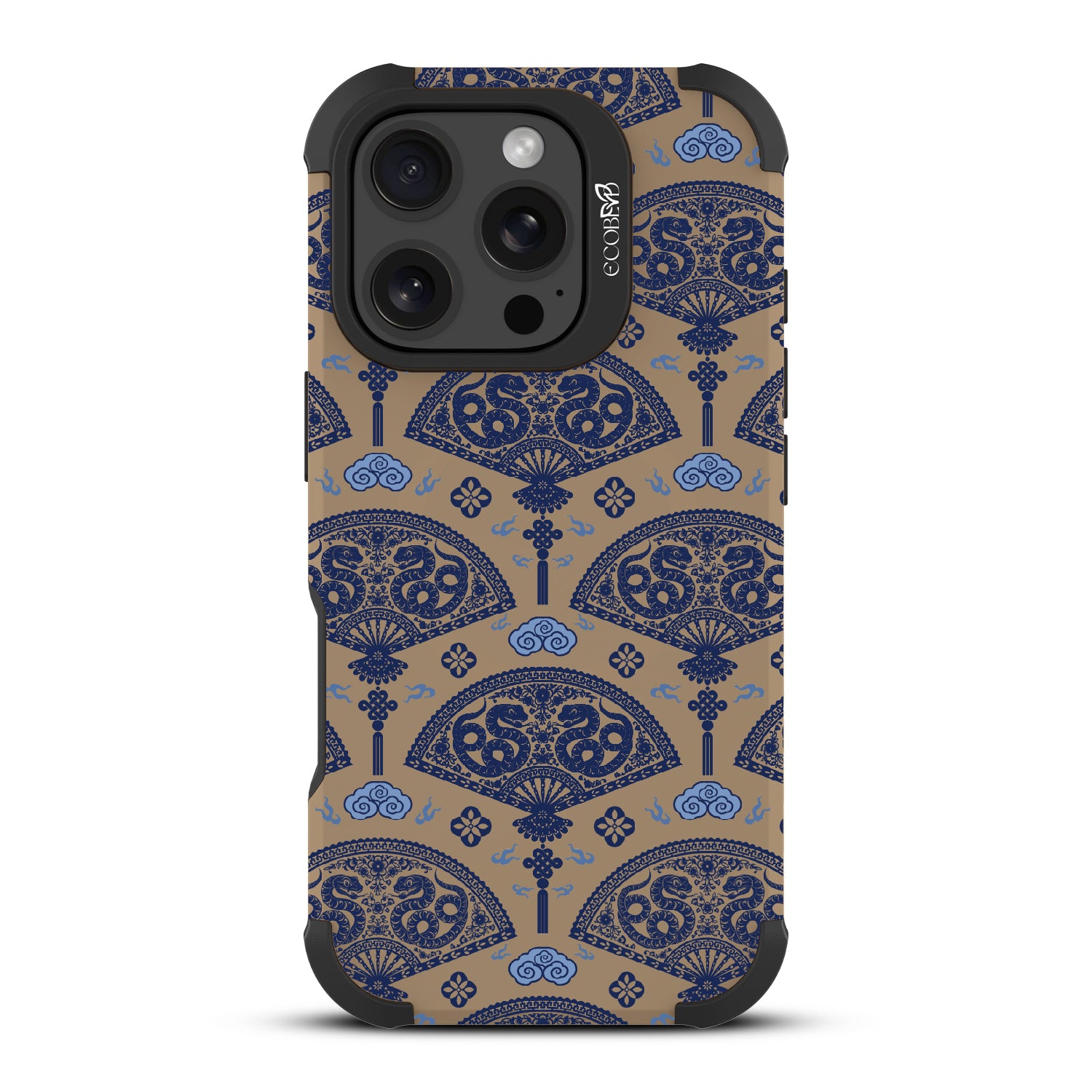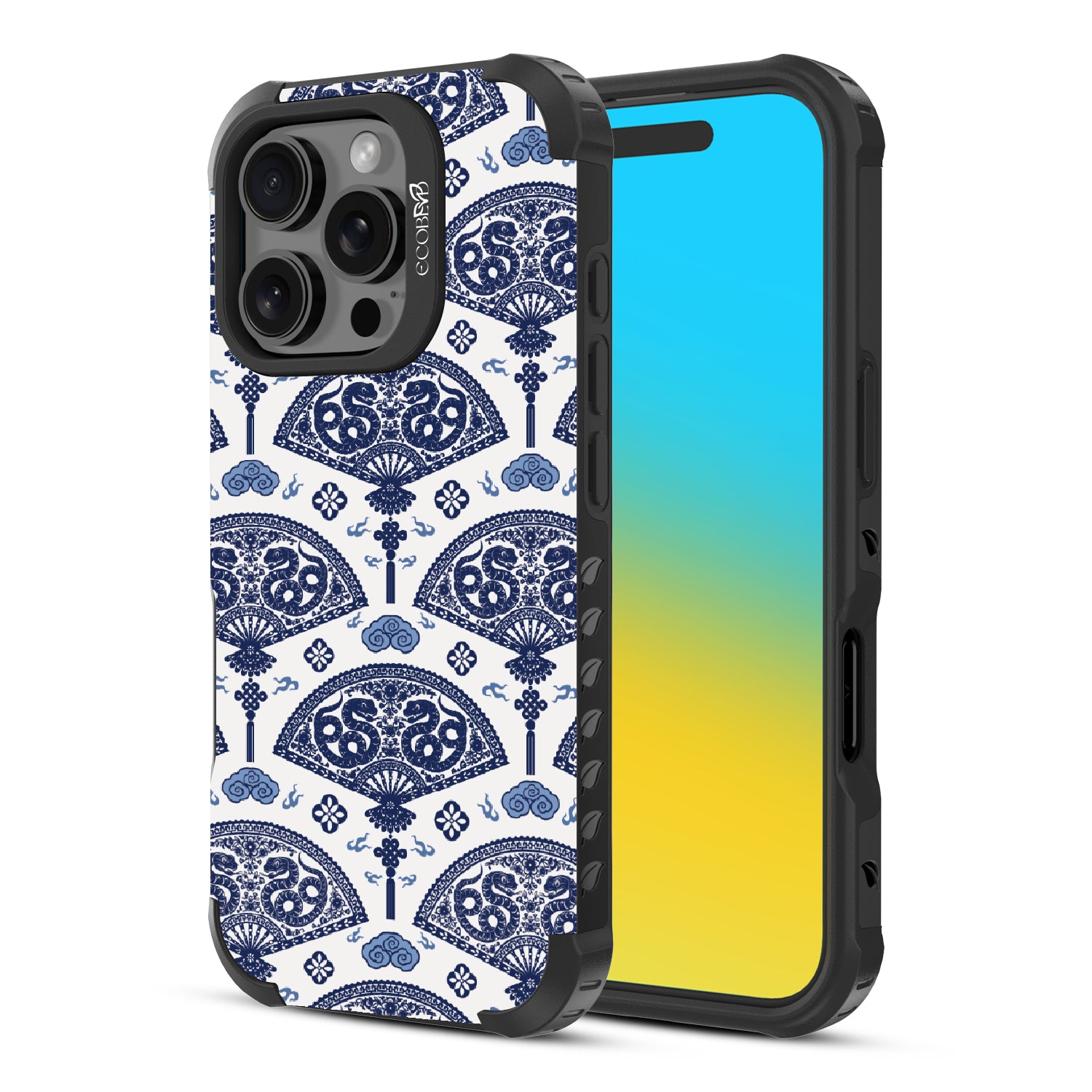 Let the winds of good fortune blow your way with the Fanning Fortune design on our Reforge rugged iPhone 16 Pro phone case. Golden serpents coil through beautifully detailed fans, a symbol of protection and prosperity for the Year of the Snake. The blue and yellow hues reflect the harmony between calmness and vitality, setting the tone for a year filled with new opportunities and growth.