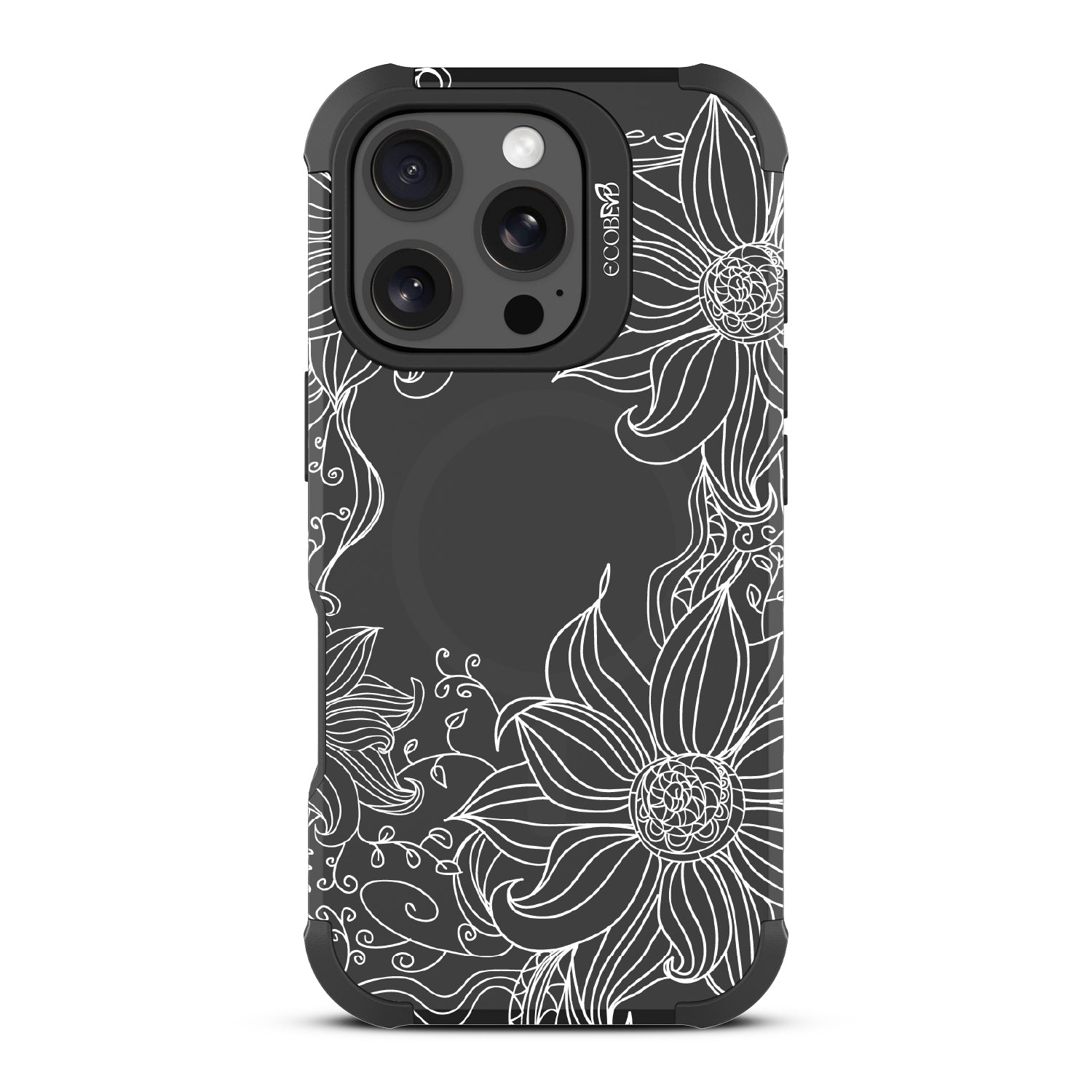 Often all it takes is a subtle outline to truly show the beauty around us, like the striking, yet minimalist Flower Stencil design on our Reforge rugged iPhone 16 Pro phone case whose stunning sunflower drawing transforms your style and look into a natural masterpiece.