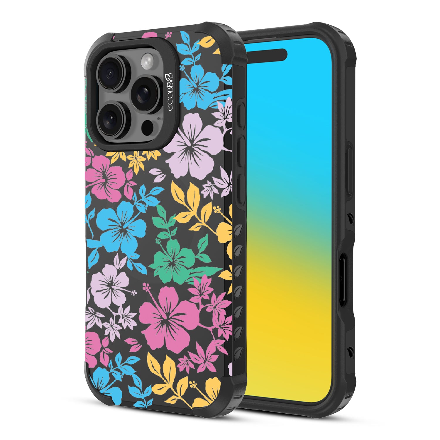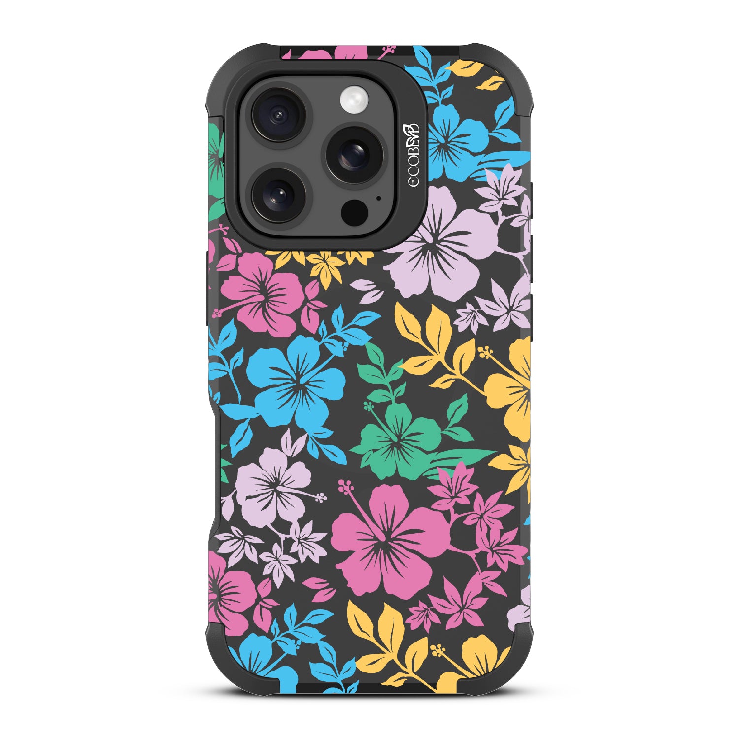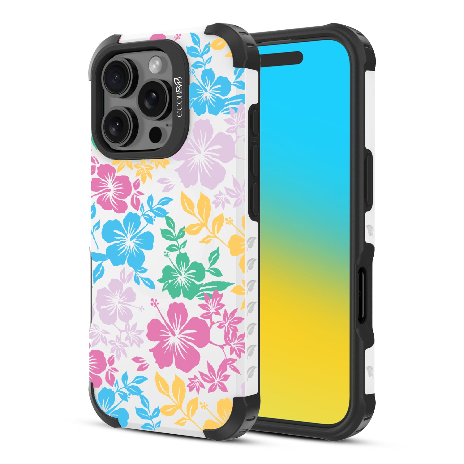 Experience the laid-back vibes of the tropics with our Lei'd Back design on our Reforge rugged iPhone 16 Pro phone case, a colorful homage to the vibrant beauty of Hawaiian leis. his design showcases an array of tropical hibiscus flowers in yellow, pink, green, and blue, reminiscent of traditional lei arrangements. Enjoy the relaxed lifestyle of an island as you escape to the spirit of aloha.
