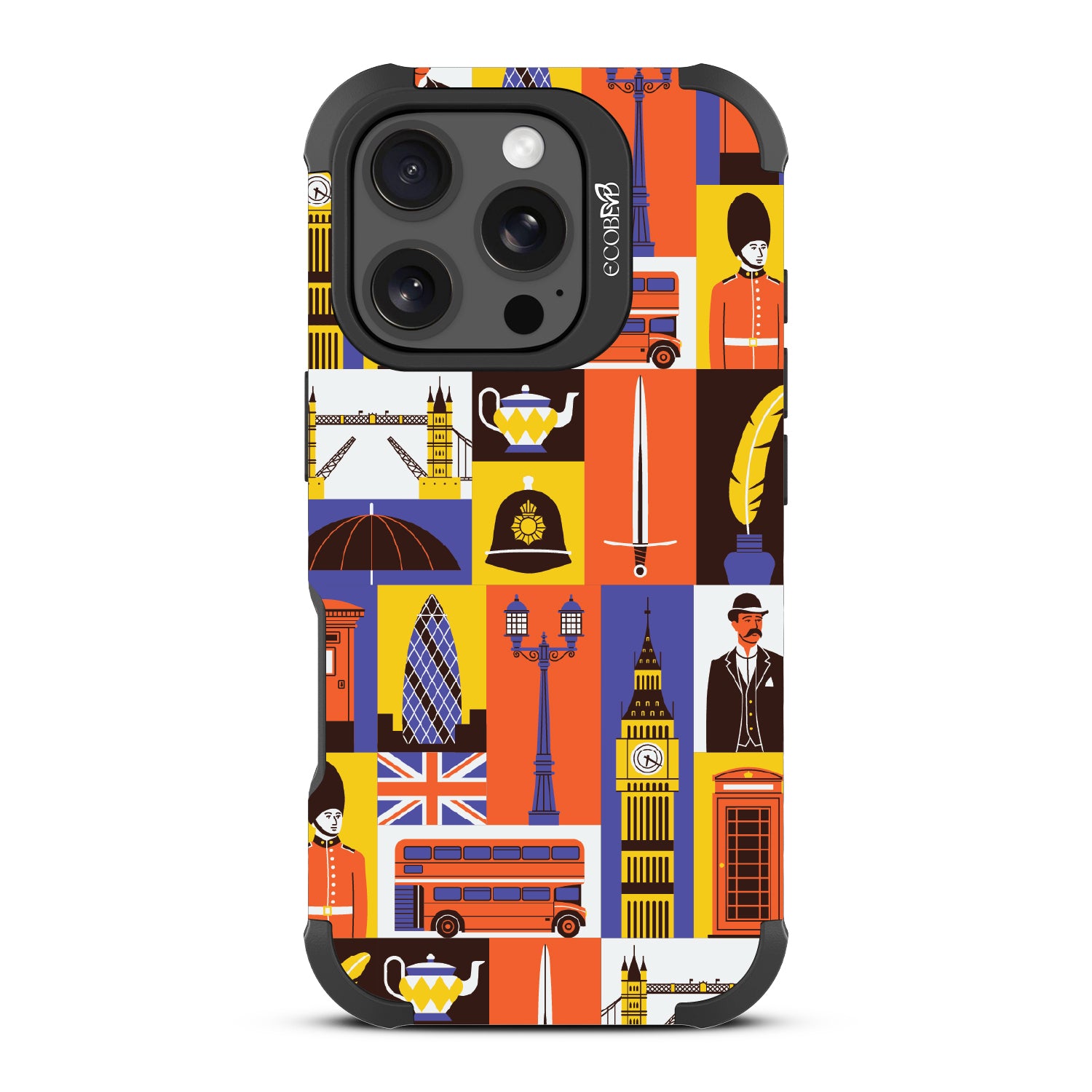 Climb onto the top deck of your own tour bus with the London Town design on our Reforge rugged iPhone 16 Pro phone case, where every box offers a new sight to be seen. From the grand silhouette of Big Ben to the solemn beauty of the Royal Guards, and the quaint charm of the traditional red telephone box, this design is your all-access pass to the city’s most storied landmarks.