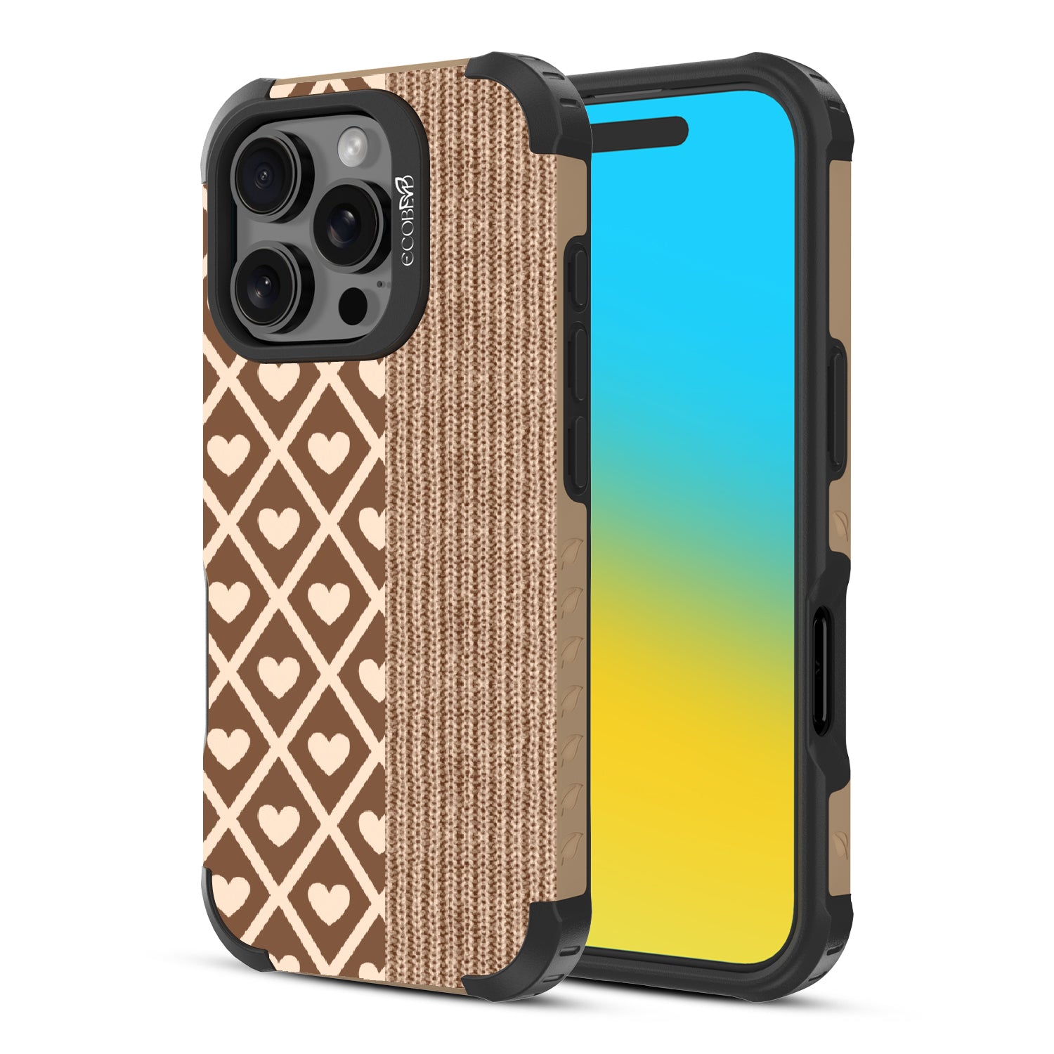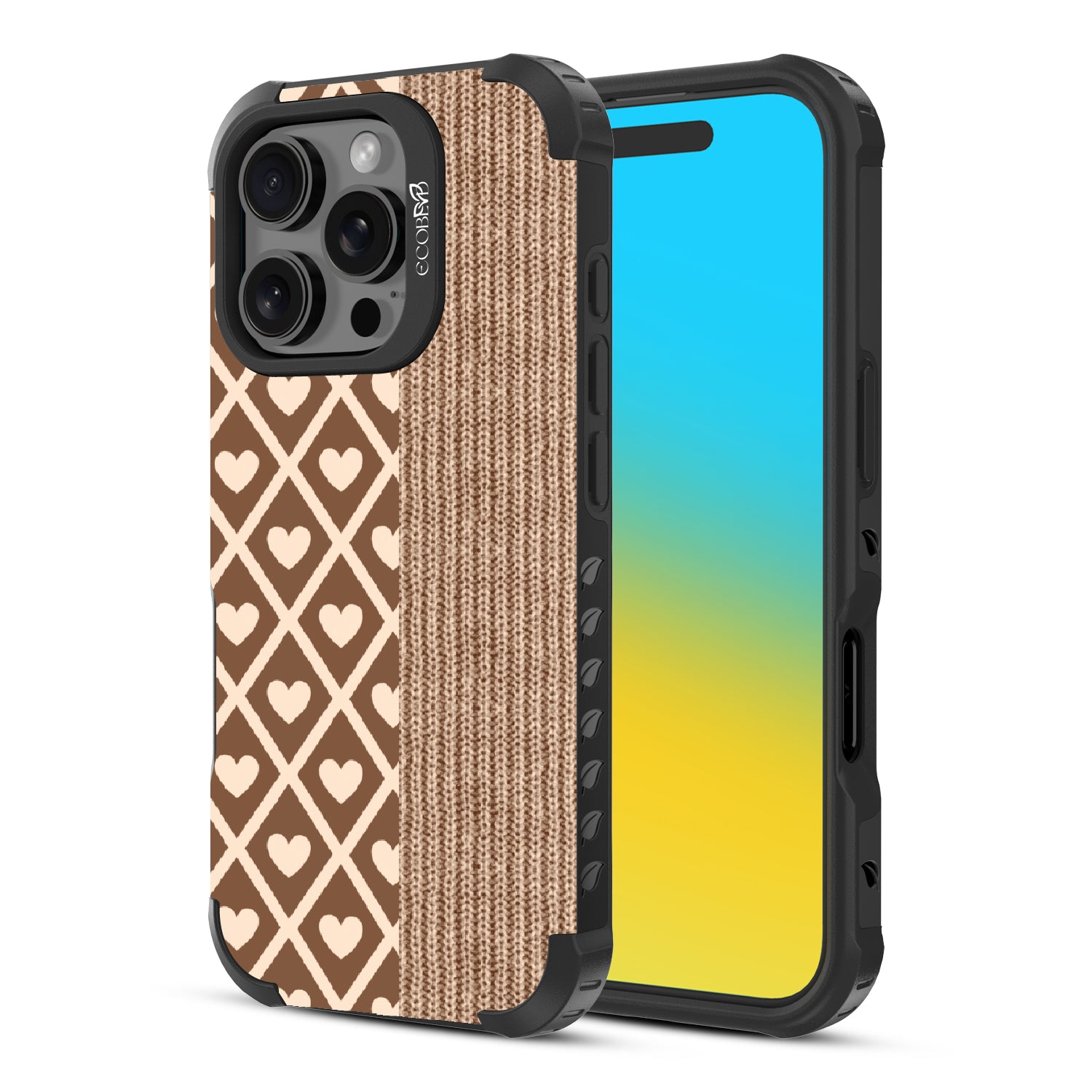 Captivate admiring looks as the Sew Adorable design on our Reforge rugged iPhone 16 Pro case makes your phone look lovely and crafty as it's decorated in brown and tan argyle gems and trimmed with tender hearts and a luxurious fabric for that special something touch.