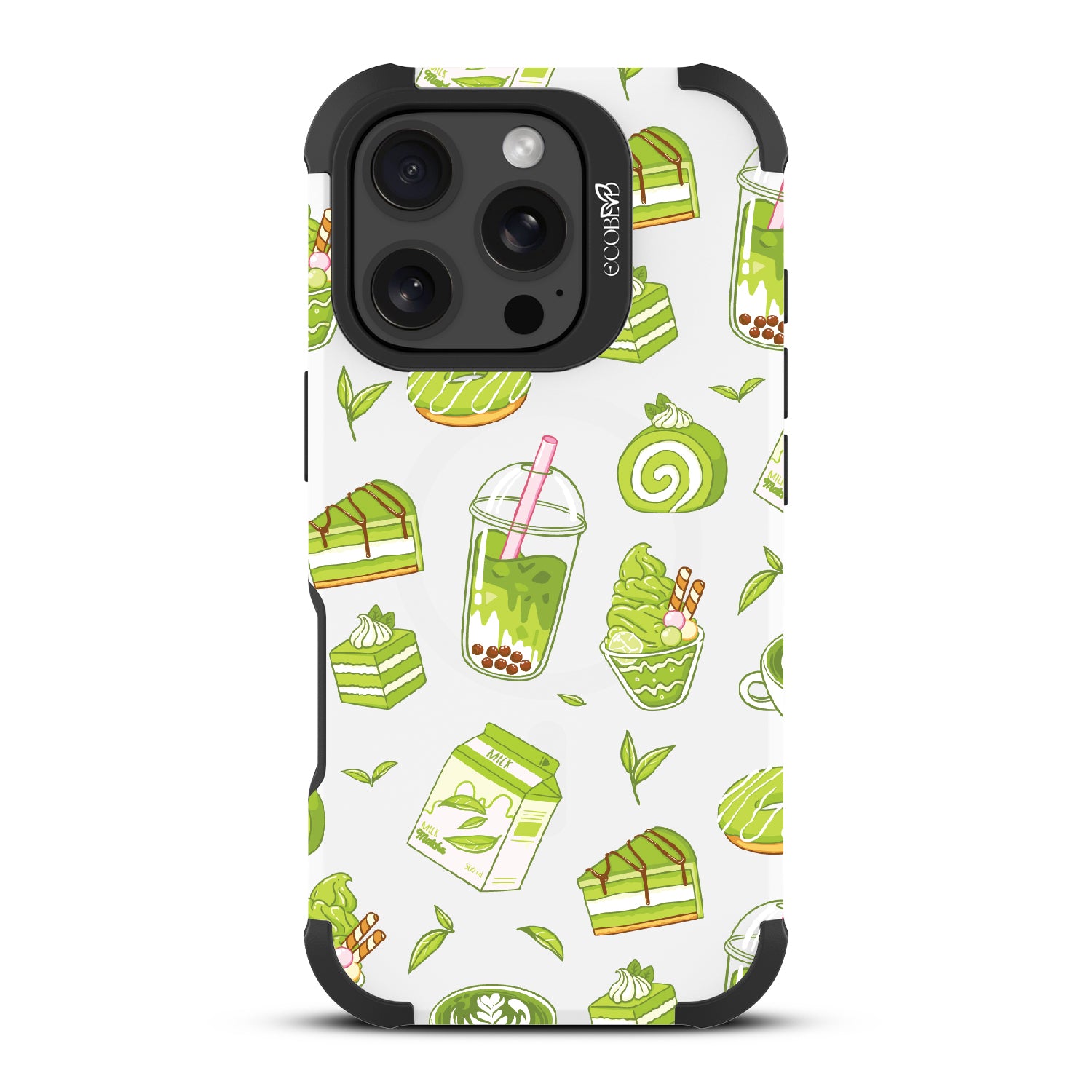 Ice cream and boba, cake, milk, and so matcha more! Overflowing with matcha flavor, this design on our Reforge rugged iPhone 16 Pro case! brings you a perfect blend of your favorite green treats. Because who ever said there was such a thing as too much matcha?