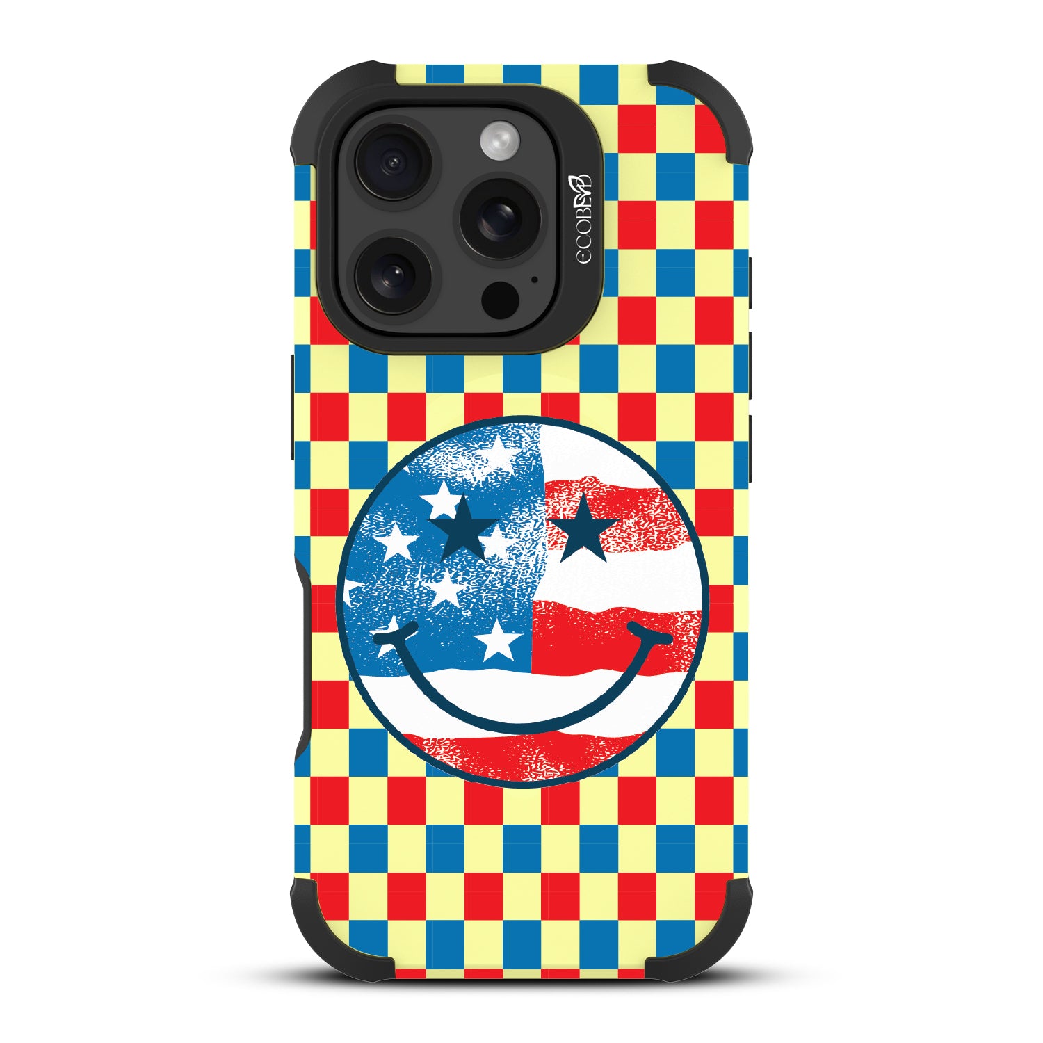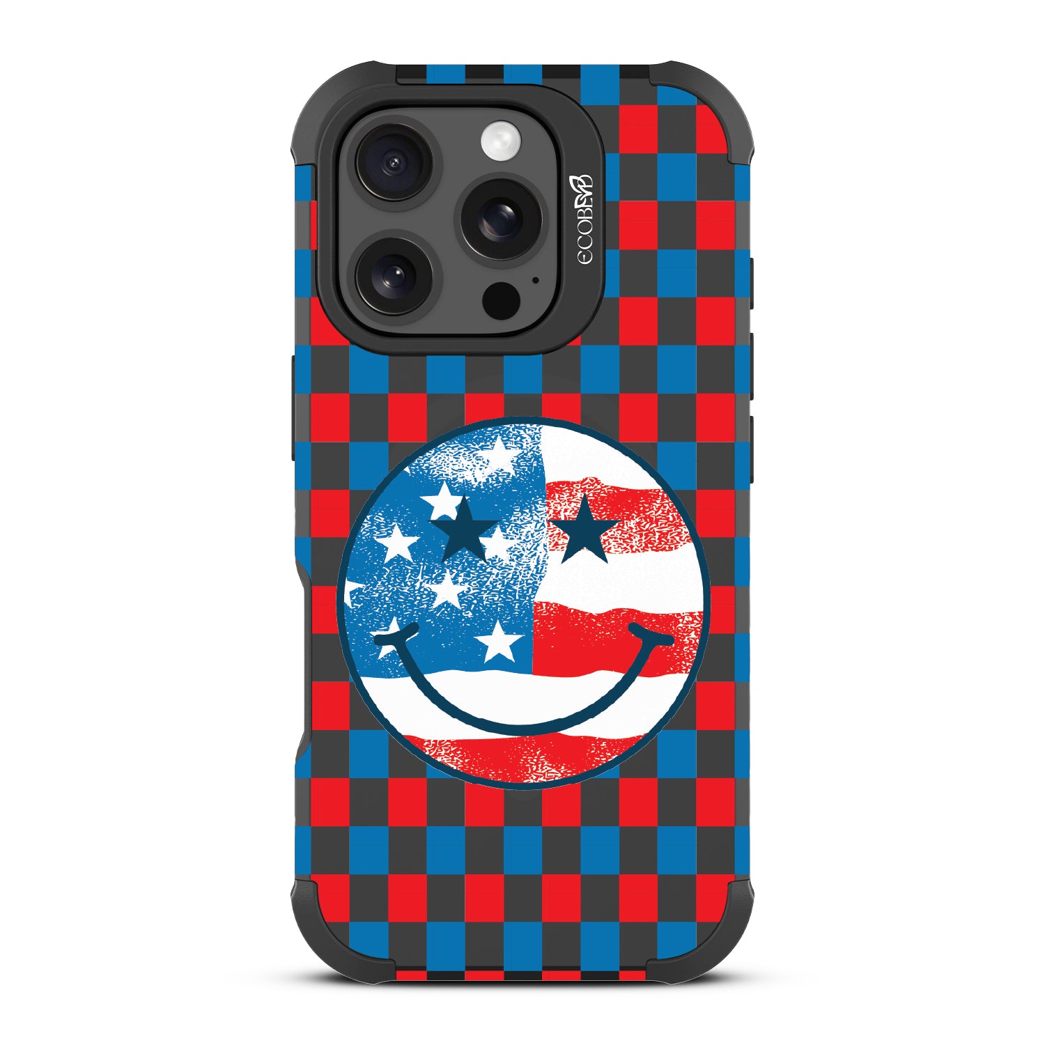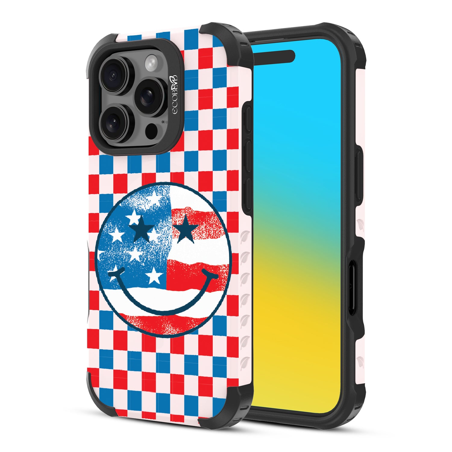 Rock your stars and stripes with The Anthem design on our Reforge rugged iPhone 16 Pro phone case. The edgy red, white, and blue checker print and iconic smiley face embody the punk spirit of freedom. Turn up the volume and let your phone sing its anthem.
