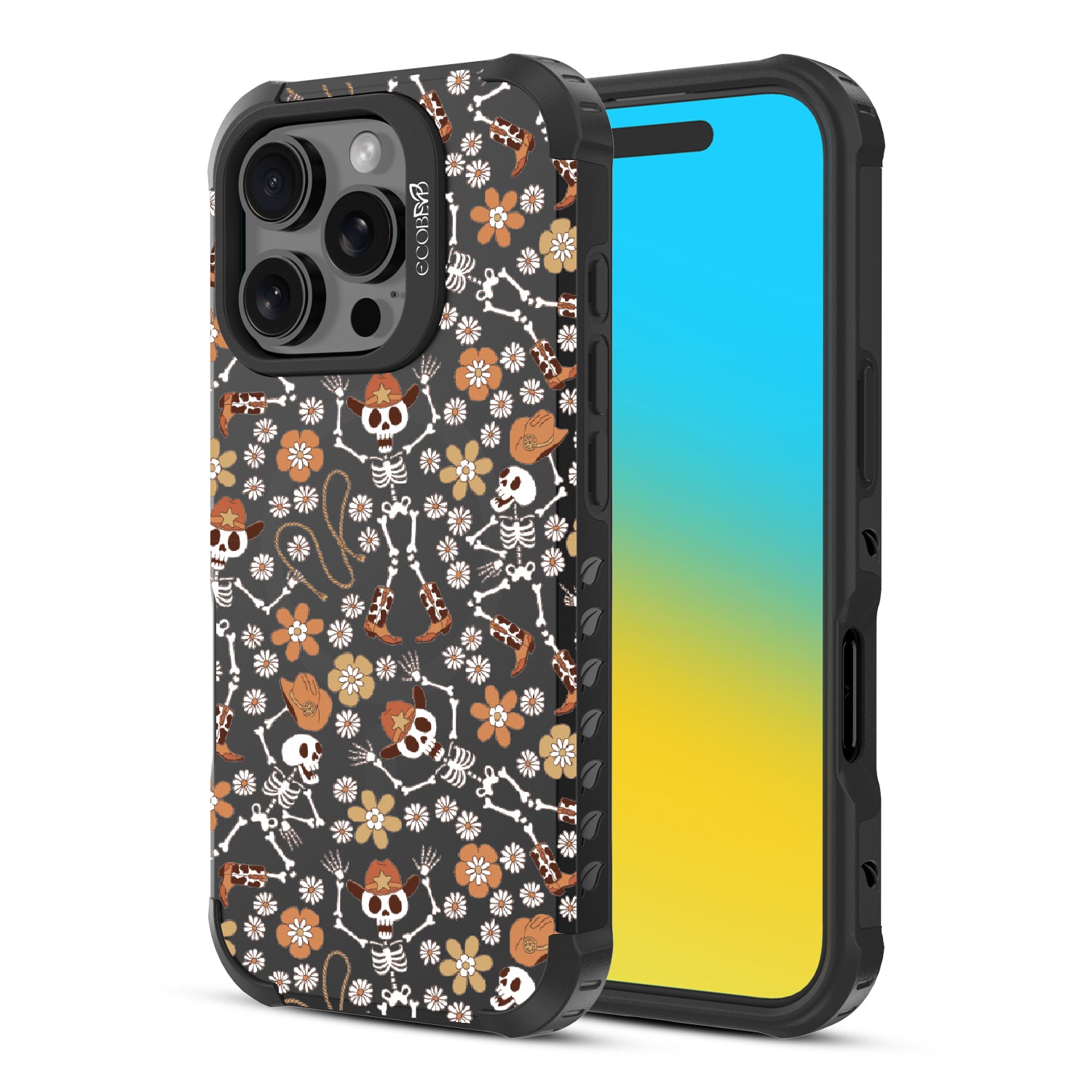 Ride into the spirit of the season with the Yee-Haunt design on our Reforge rugged iPhone 16 Pro cases. Cowboy skeletons take center stage, adding a playful western twist to fall’s festivities. It’s a design that brings a dash of spooky fun to your everyday style.