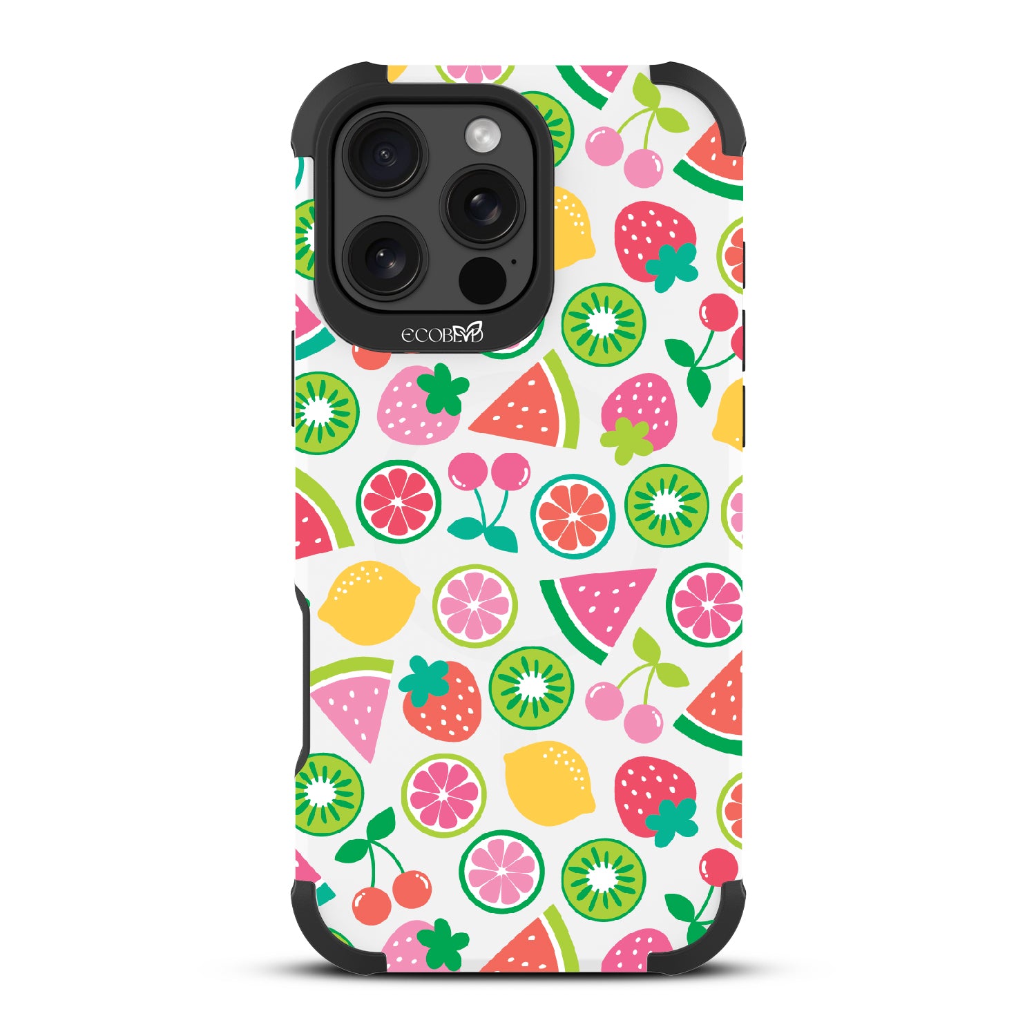 Savor the juicy goodness of summer with the Juicy Fruit design on our Reforge rugged iPhone 16 Pro Max phone case, a delightful blend of vibrant fruits that will quench your style thirst. From the juicy watermelon to the tangy lemon, zesty lime, tropical guava, refreshing kiwi, luscious strawberries, and succulent cherries, this case is a juicy treat for your eyes. This phone case is a reminder to see the juicy side of life, to add a pop of fruity freshness to your style, and to use your phone to start juicy conversations.