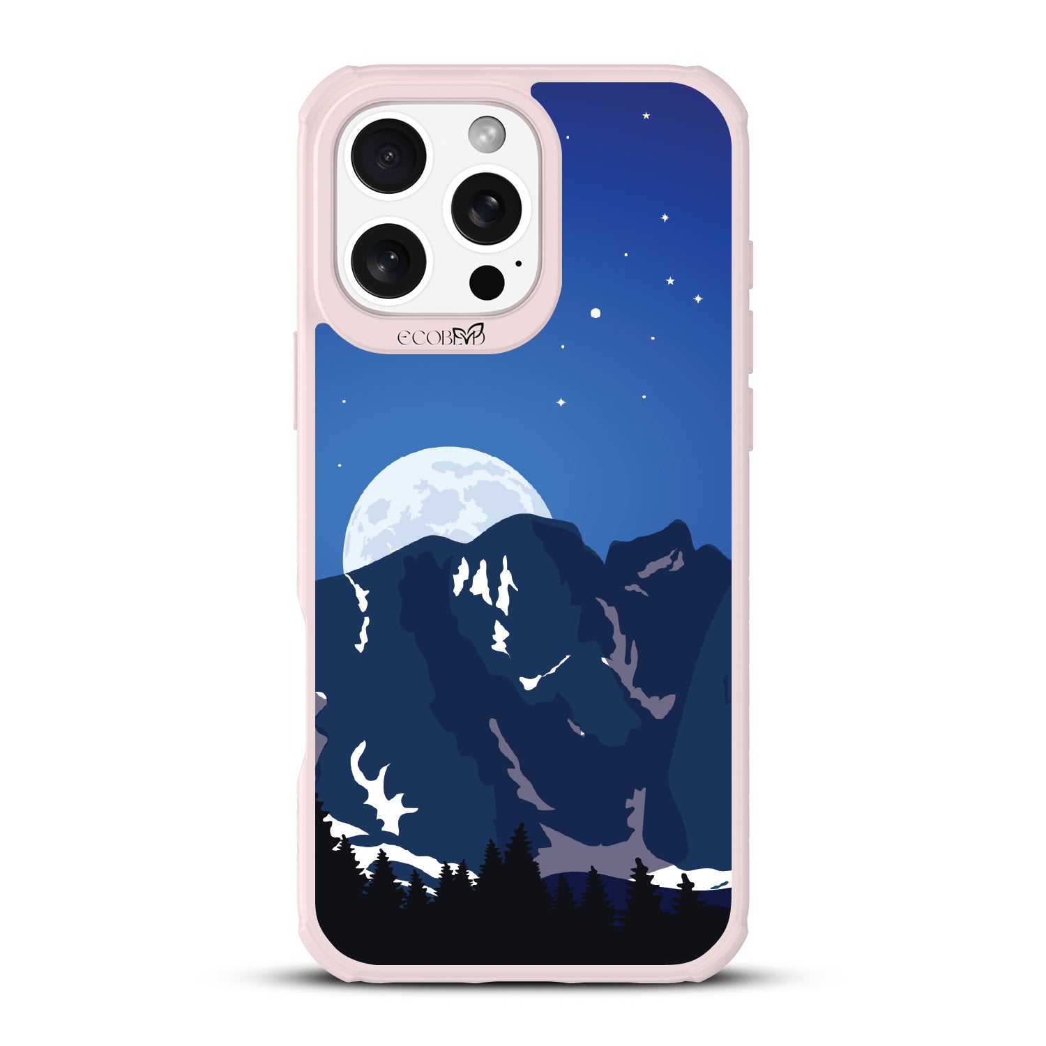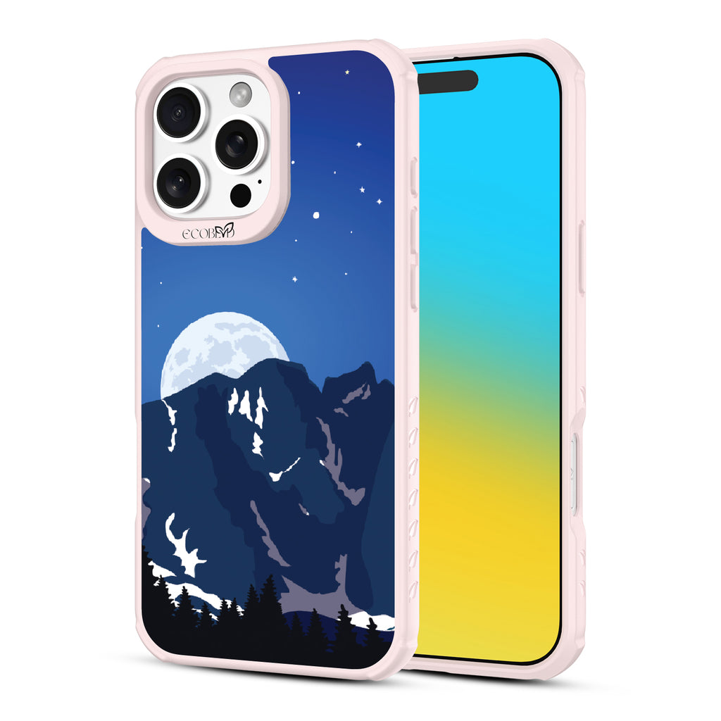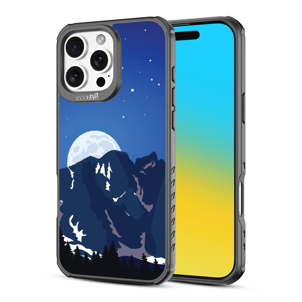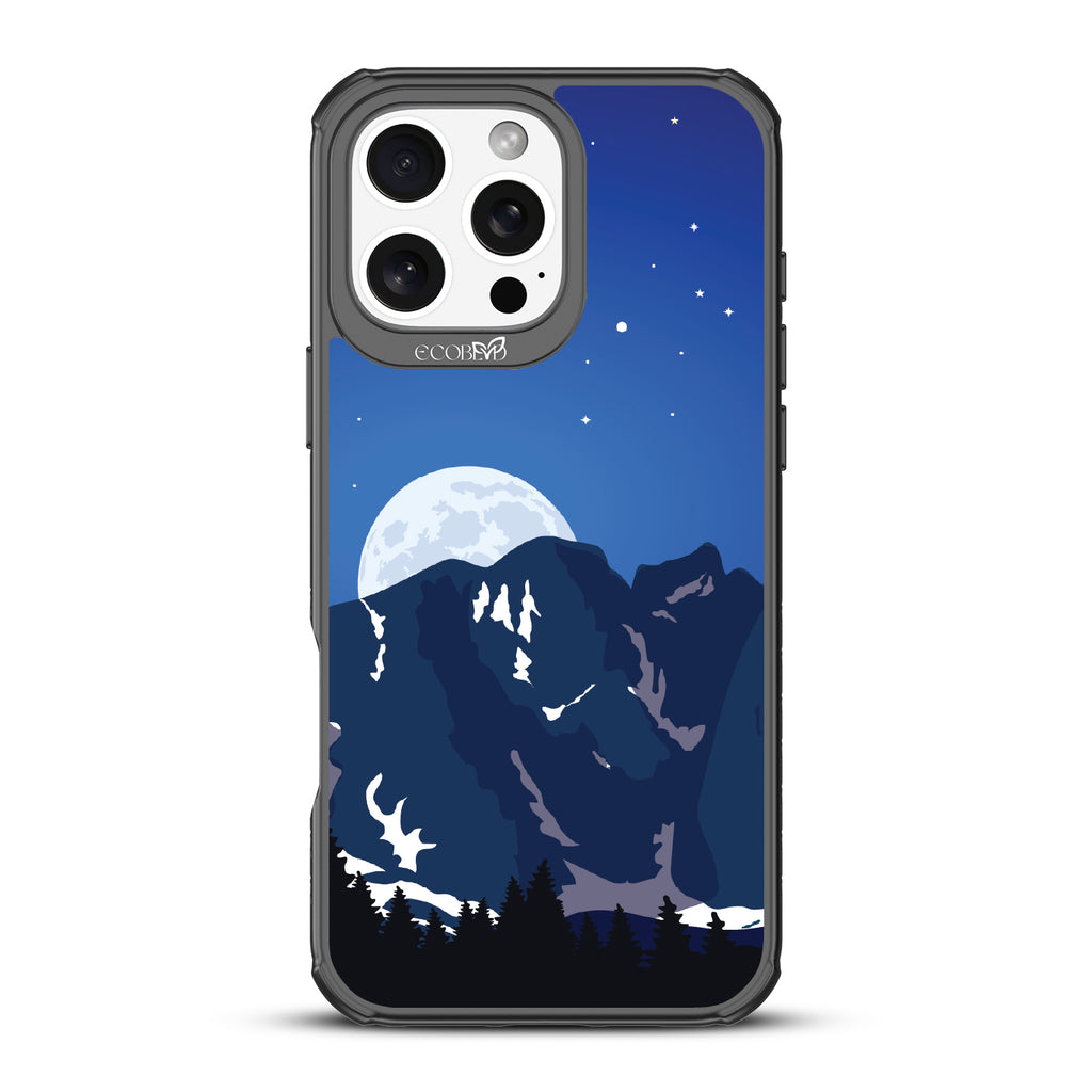 Bask in the ethereal glow of our Alpine Moon design on our Revive clear iPhone 16 Pro Max phone case where the moon hangs like a luminous pearl against the velvet canvas of the night sky, casting its soft radiance upon the rugged terrain below.