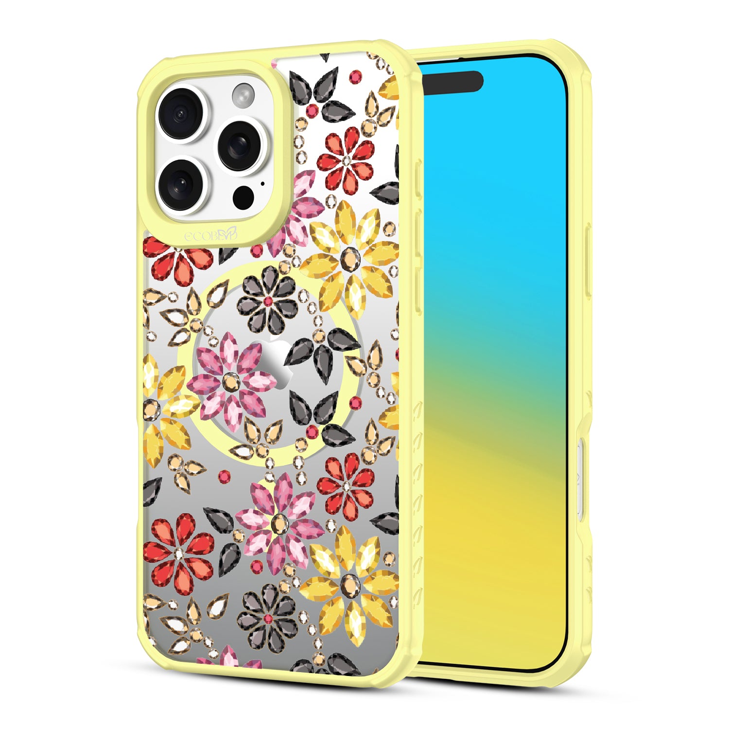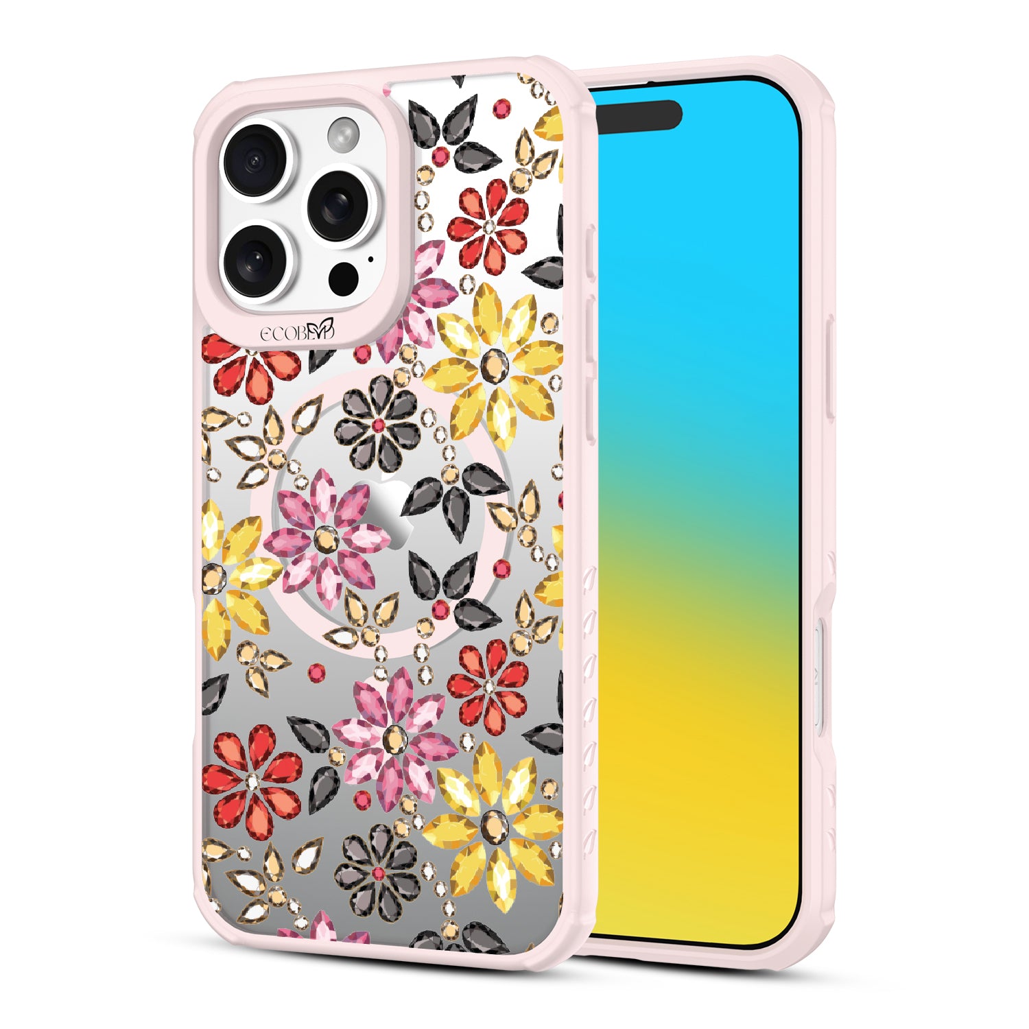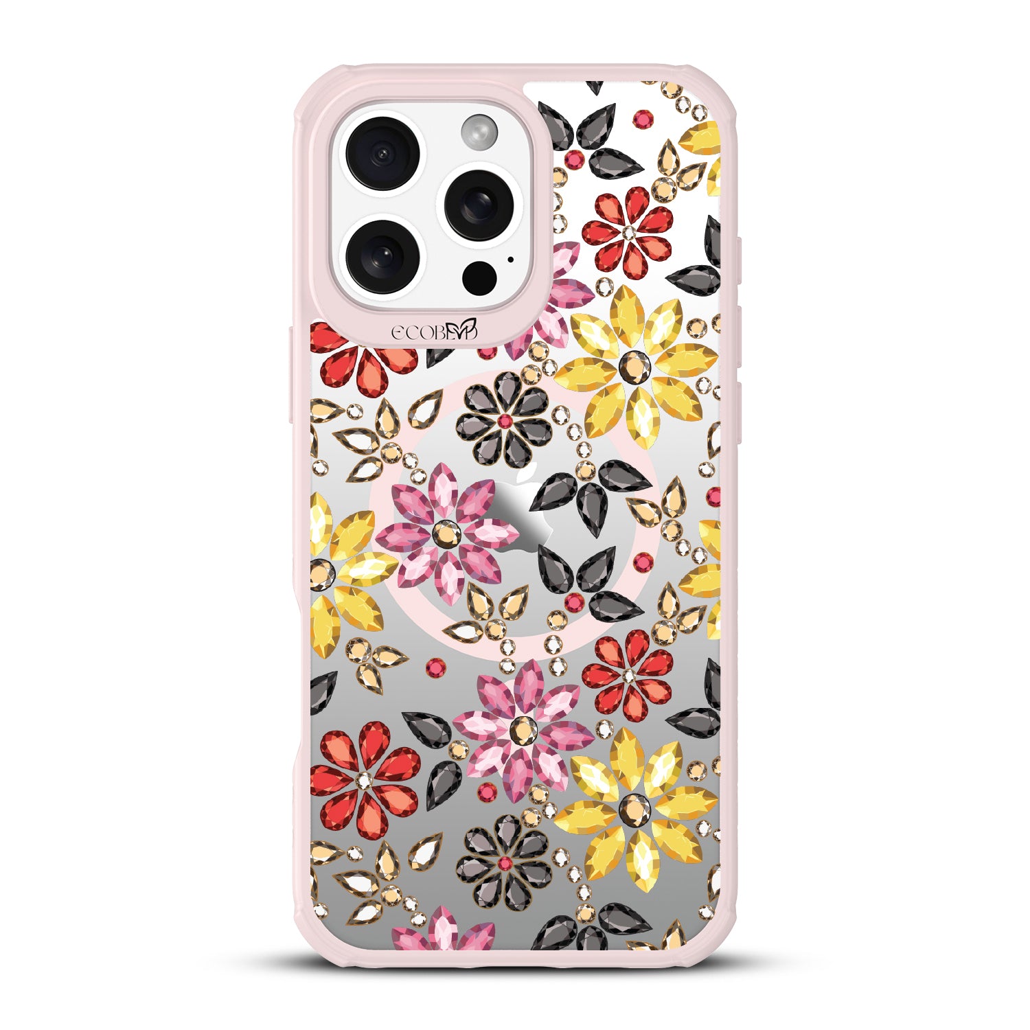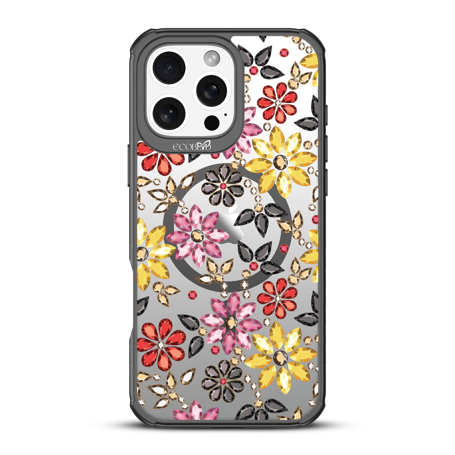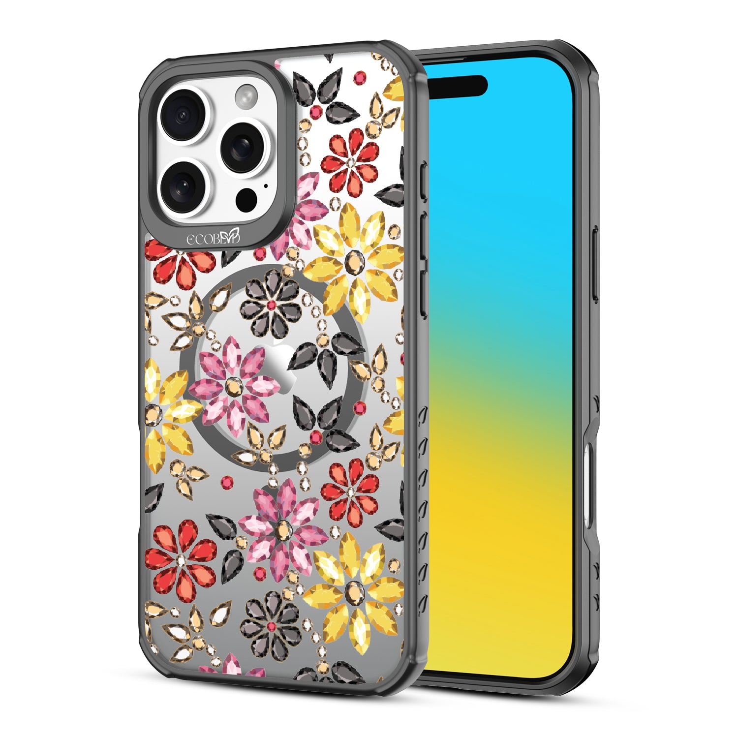 The Bejeweled design on our Revive clear iPhone 16 Pro Max phone case is a radiant burst of Spring bling, a cheerful display of rhinestone jewels and playful floral patterns that brighten up your day and your phone.