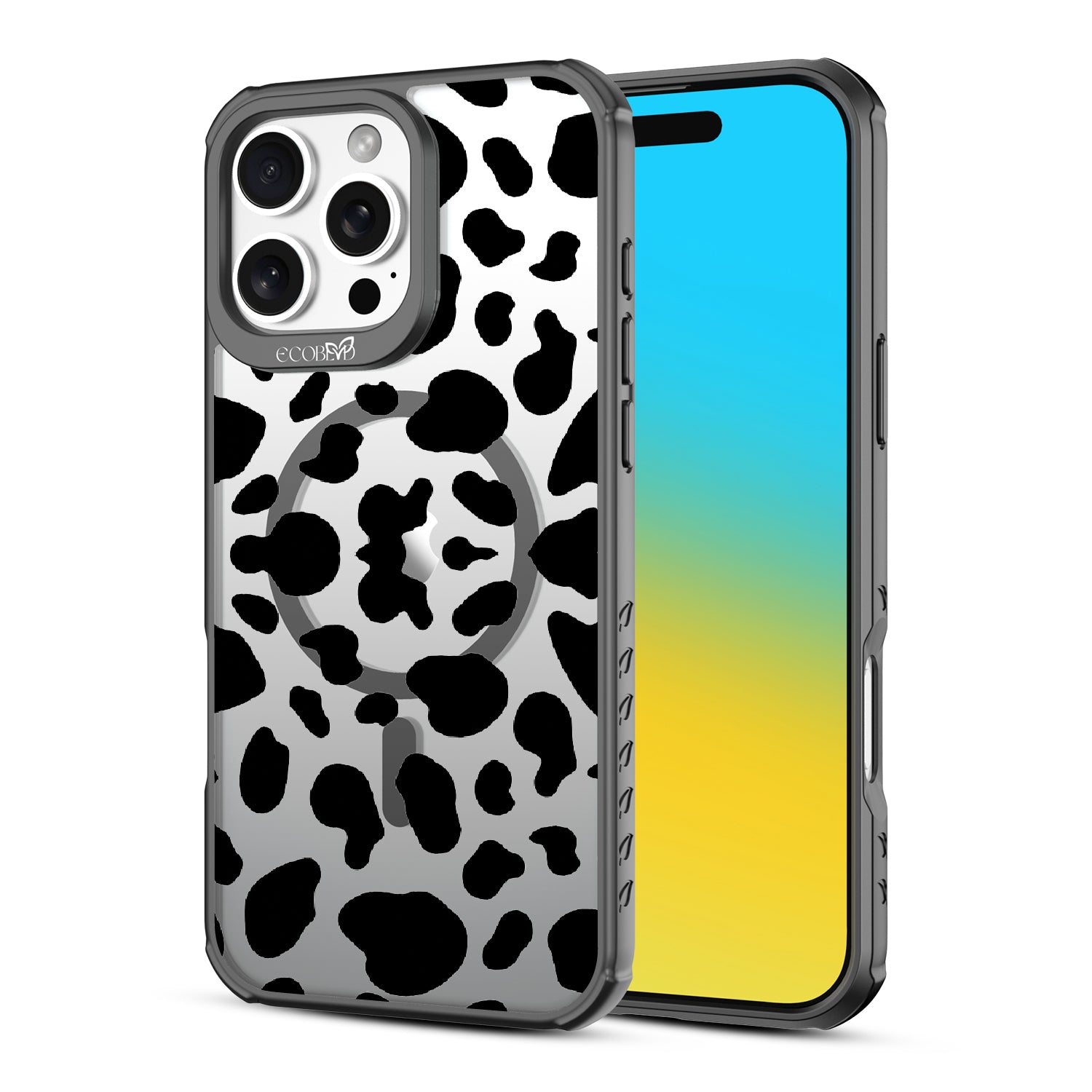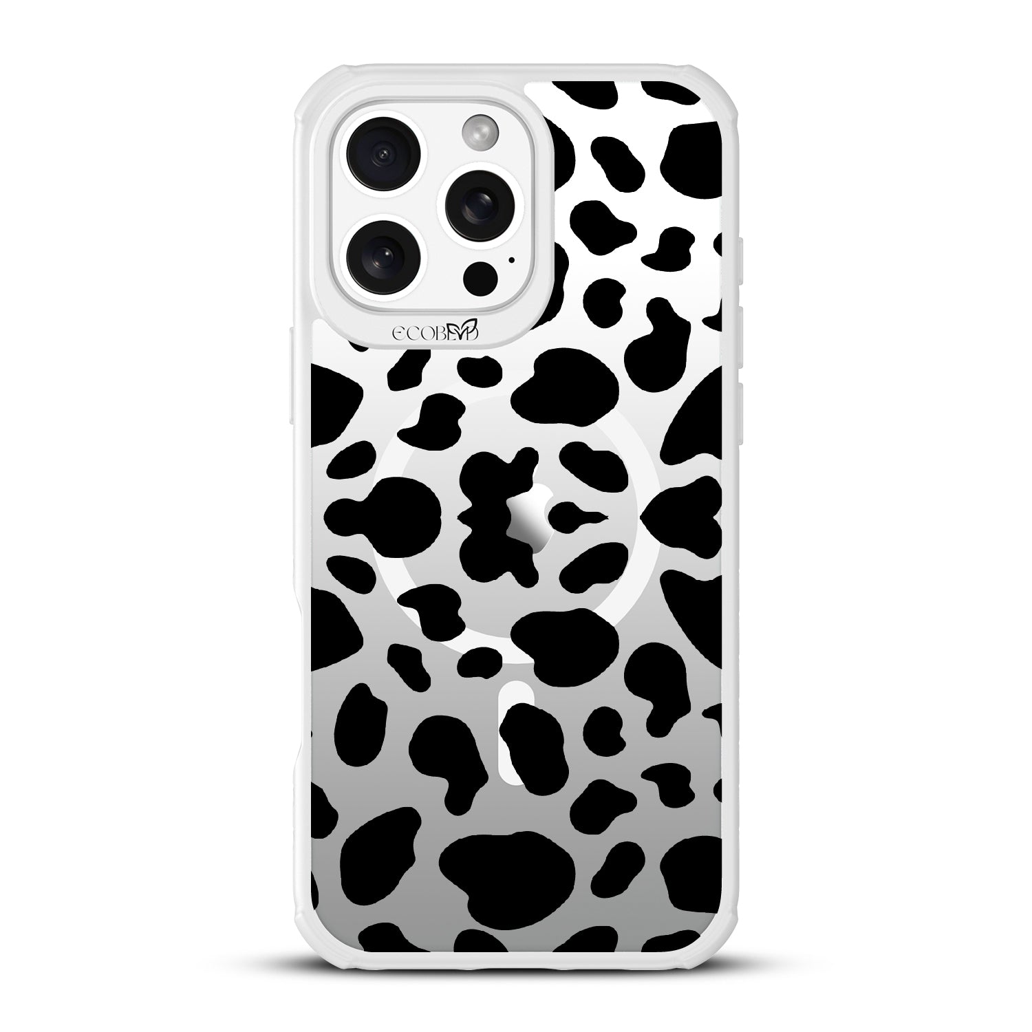 Make your phone easy to spot with this "moooognificient" Cow Print design on our Revive clear iPhone 16 Pro Max phone case.