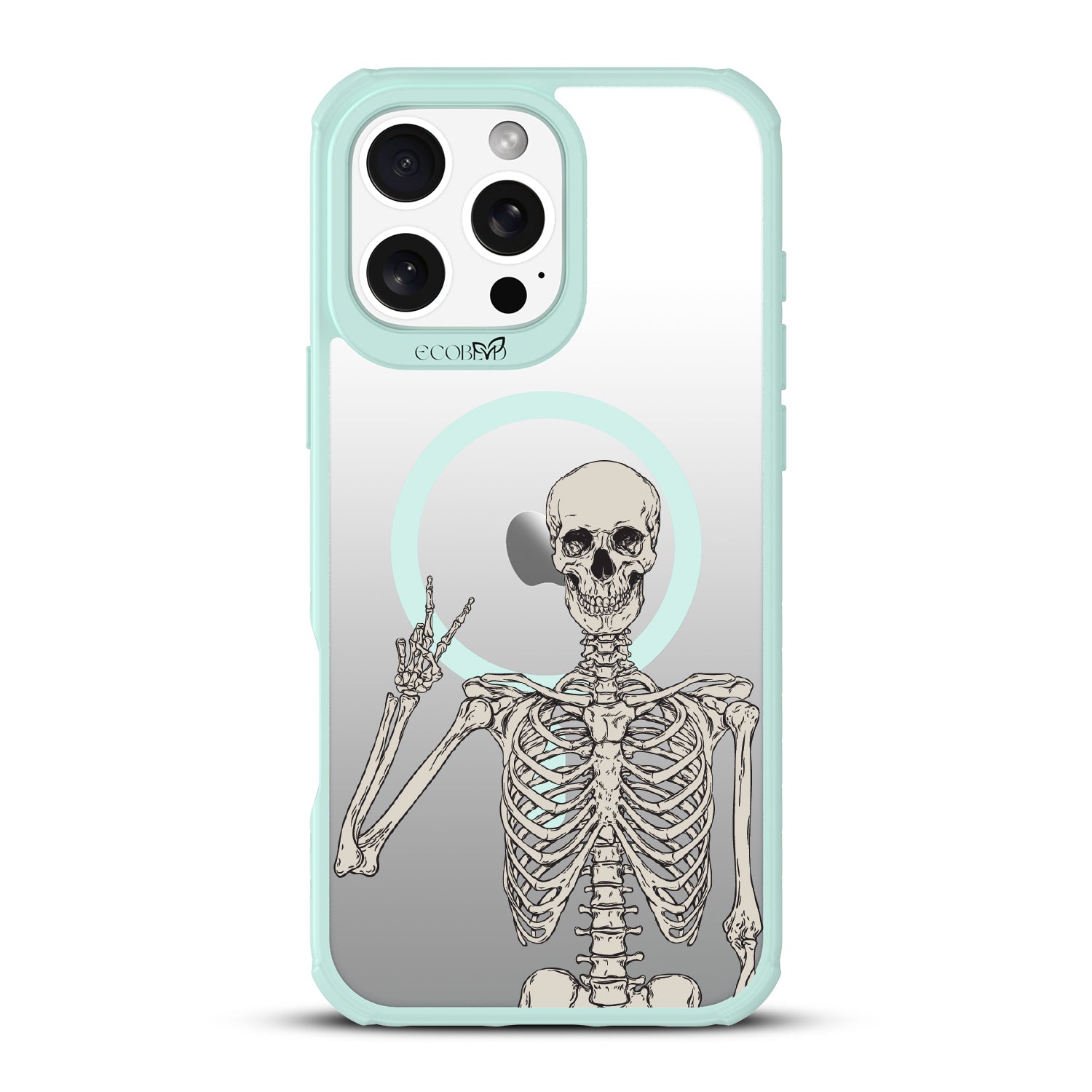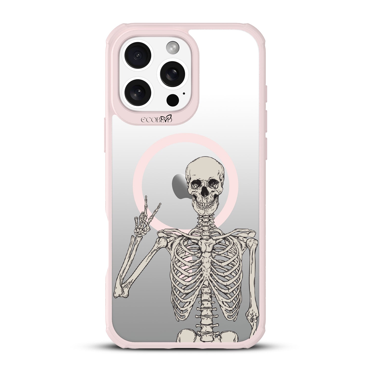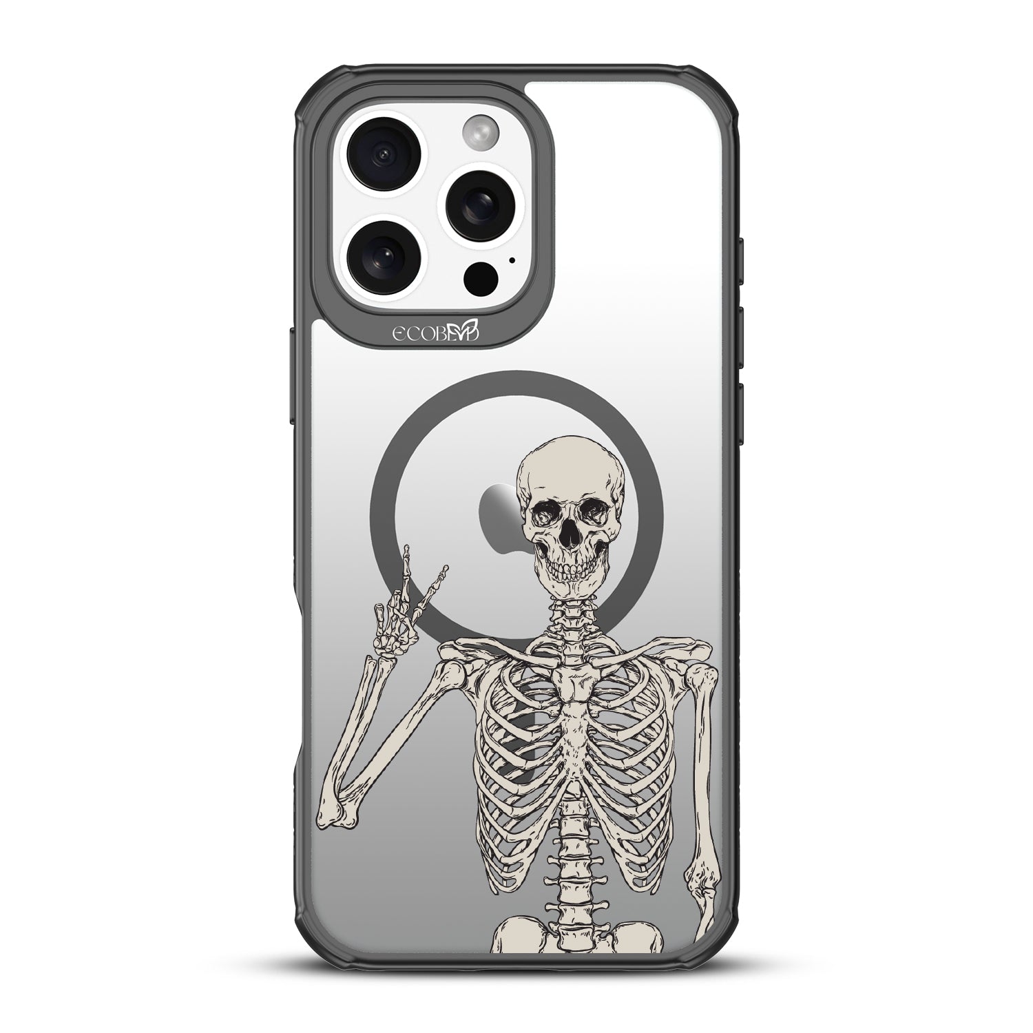 No doubt, the Creepin' It Real design on the Revive clear iPhone 16 Pro Max phone case is sure to make your phone look simply bone-chilling, as it features an eye-catching skeleton giving the peace sign.