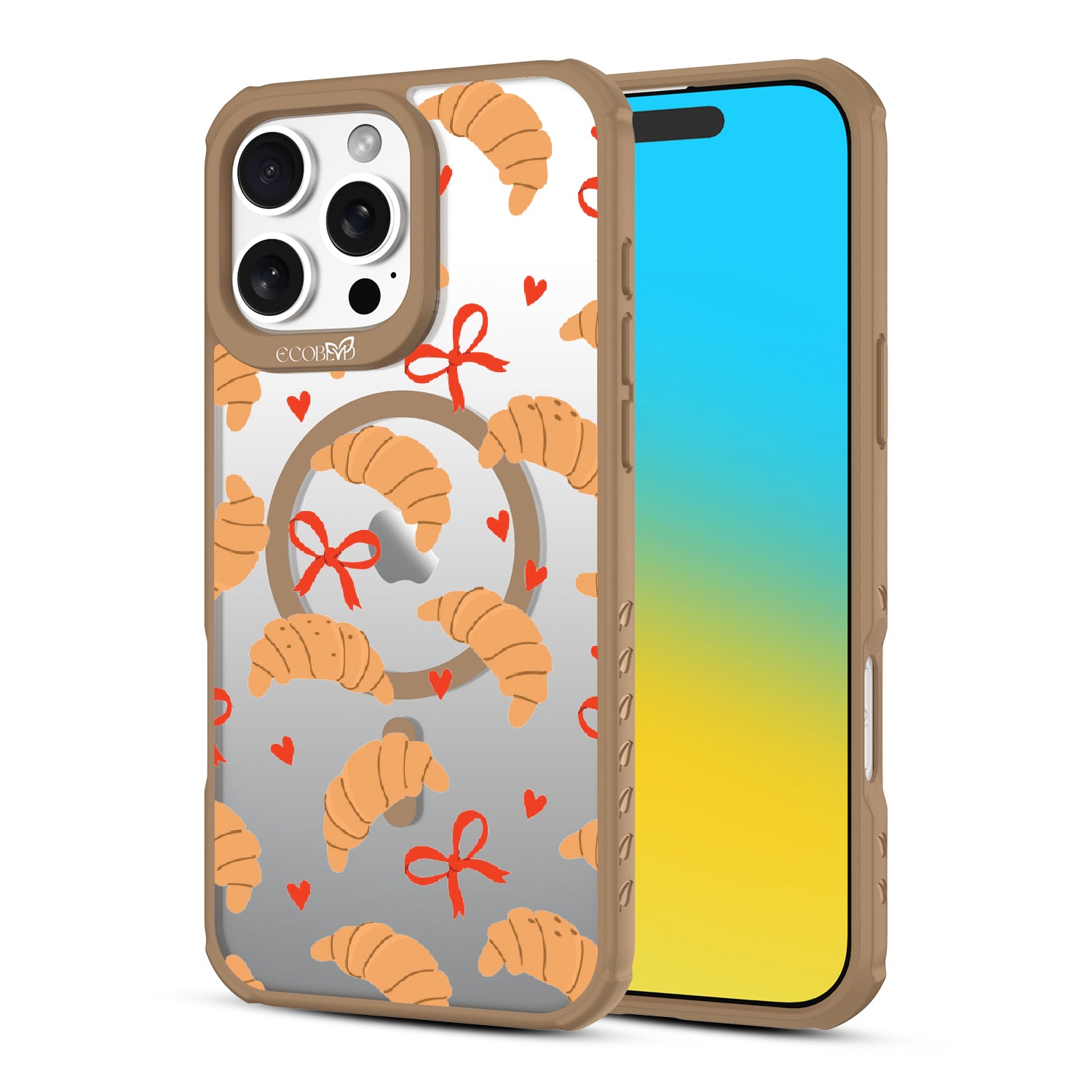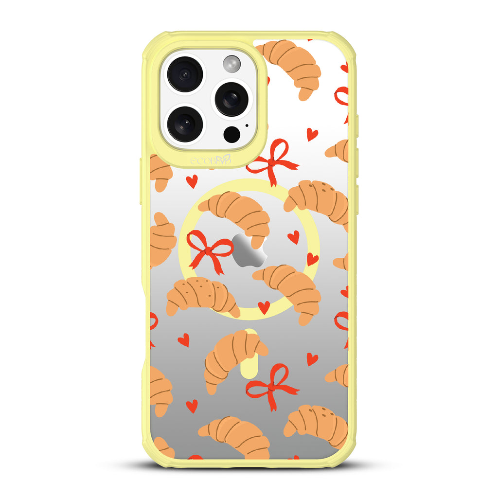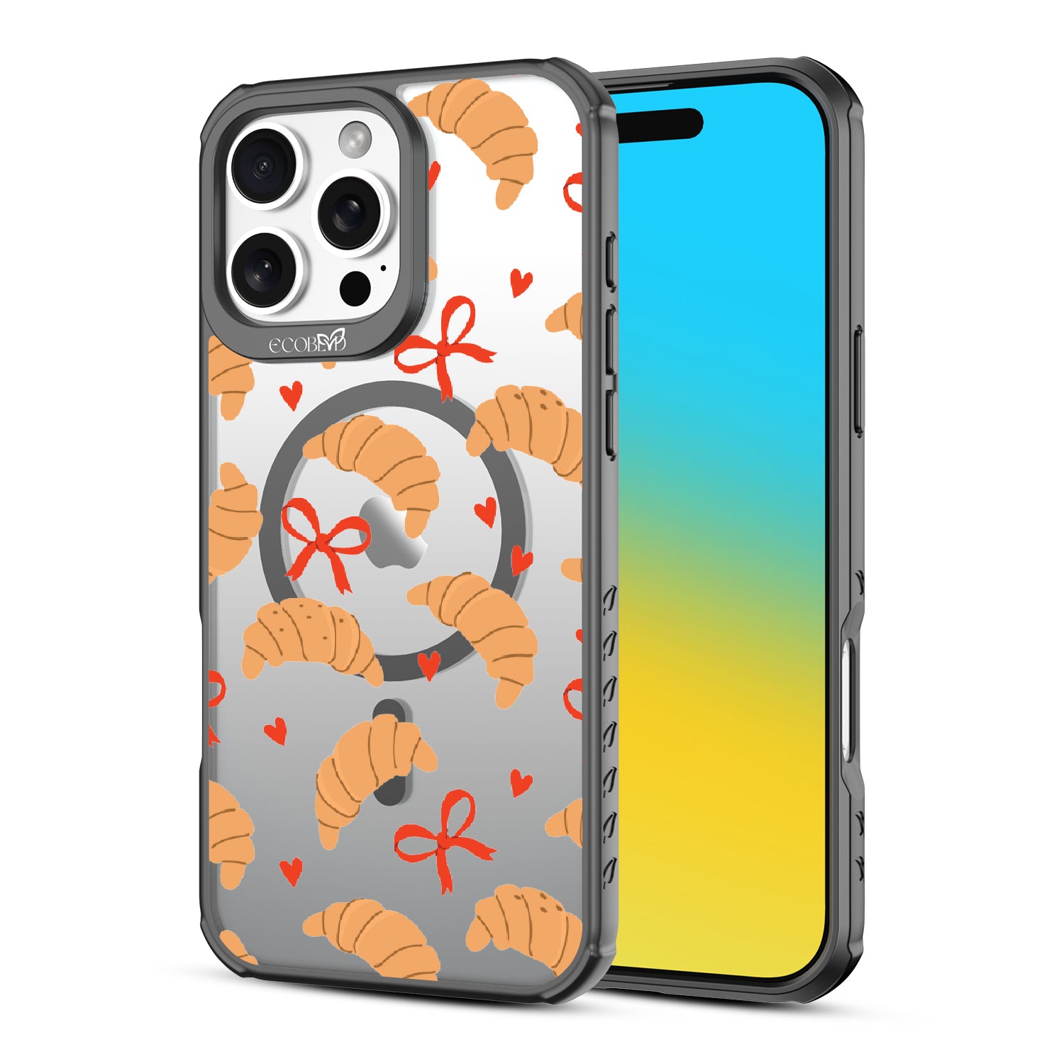Good taste deserves the perfect recipe like the Croissant Couture design on our Revive clear iPhone 16 Pro Max case! Softly folded croissants, tied with dainty red bows and sprinkled with sweet hearts, evoke the lightness and care of a true delicacy.