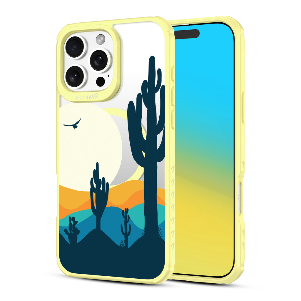 Get lost in the Desert Daze with this design on our Revive clear iPhone 16 Pro Max phone case, where the vast beauty of the desert comes to life. It's a homage to those golden hours when the sun dips low, and the world glows with an otherworldly light, captured right on your phone.