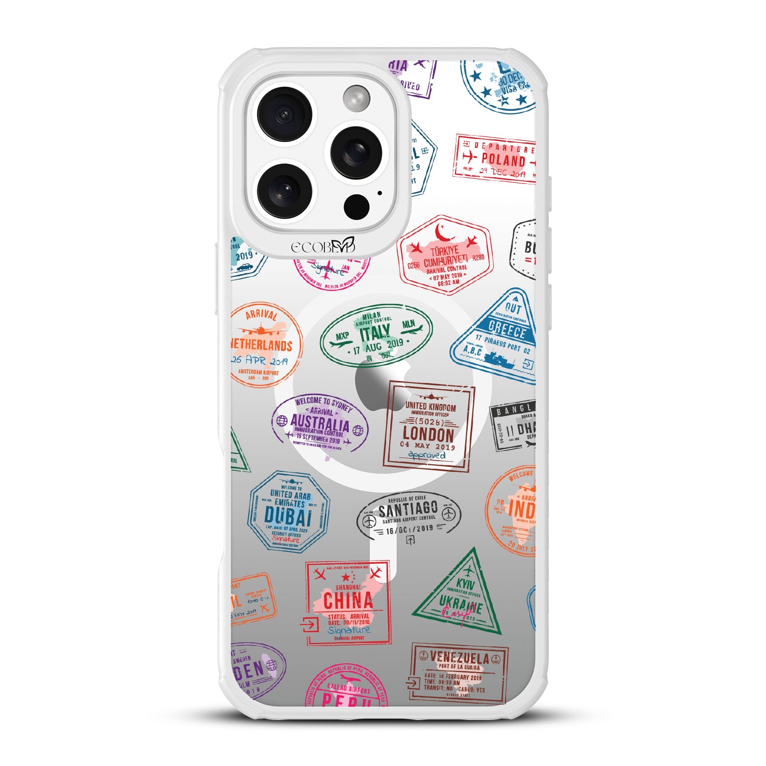 Take your phone on a world tour with the Frequent Flyer design on our Revive clear iPhone 16 Pro Max phone case. It’s a jet-setting journey across the globe, with stamps from Sydney to Rome, making every text a postcard from abroad. Gear up your phone with this travel-ready case, and let every call be a new stamp in your passport to adventure.