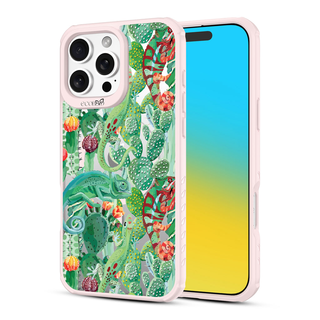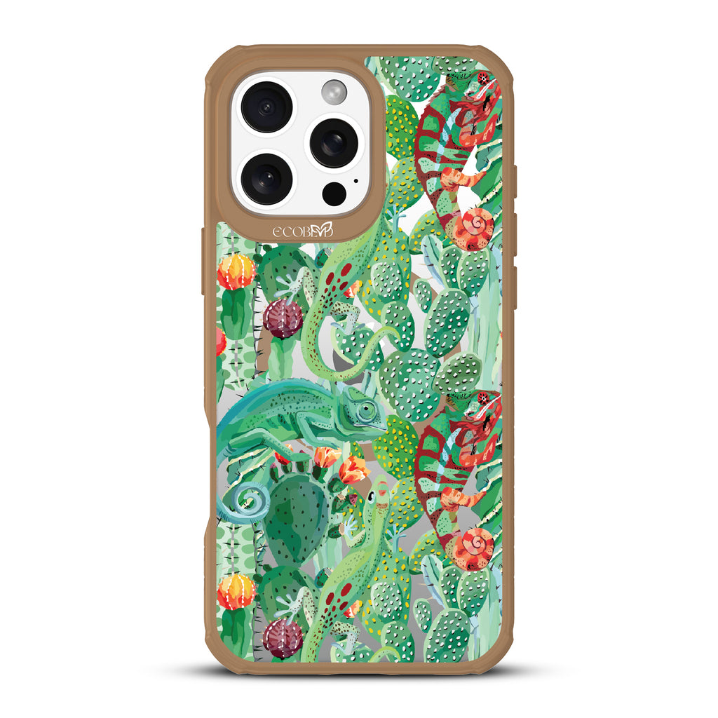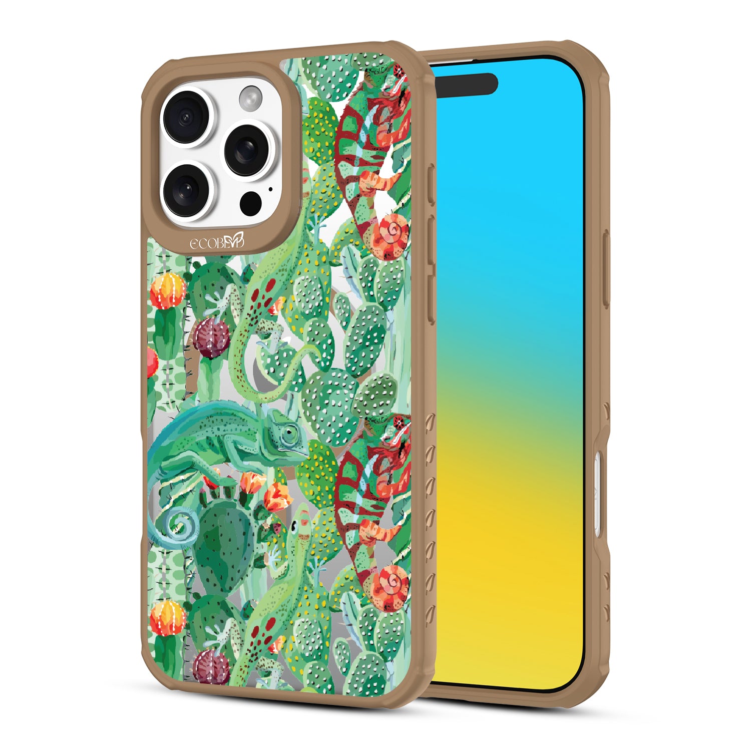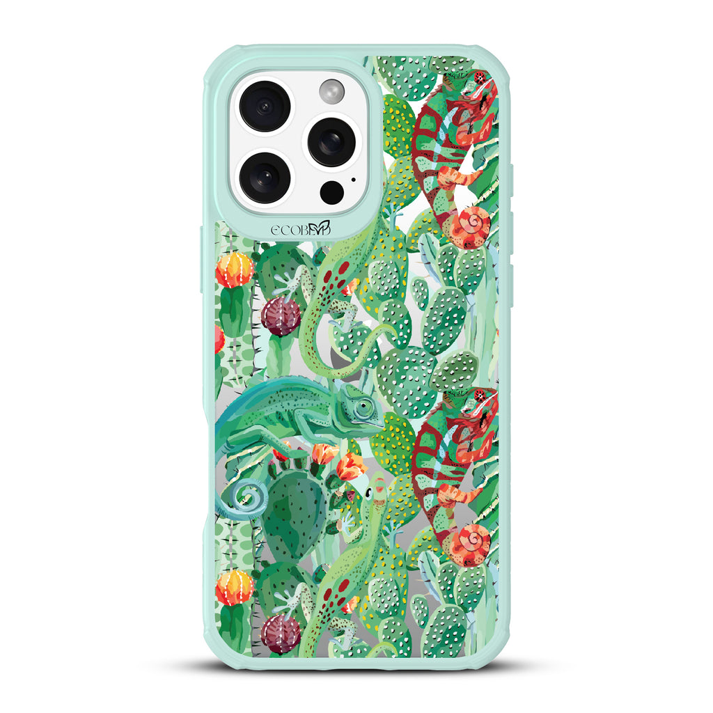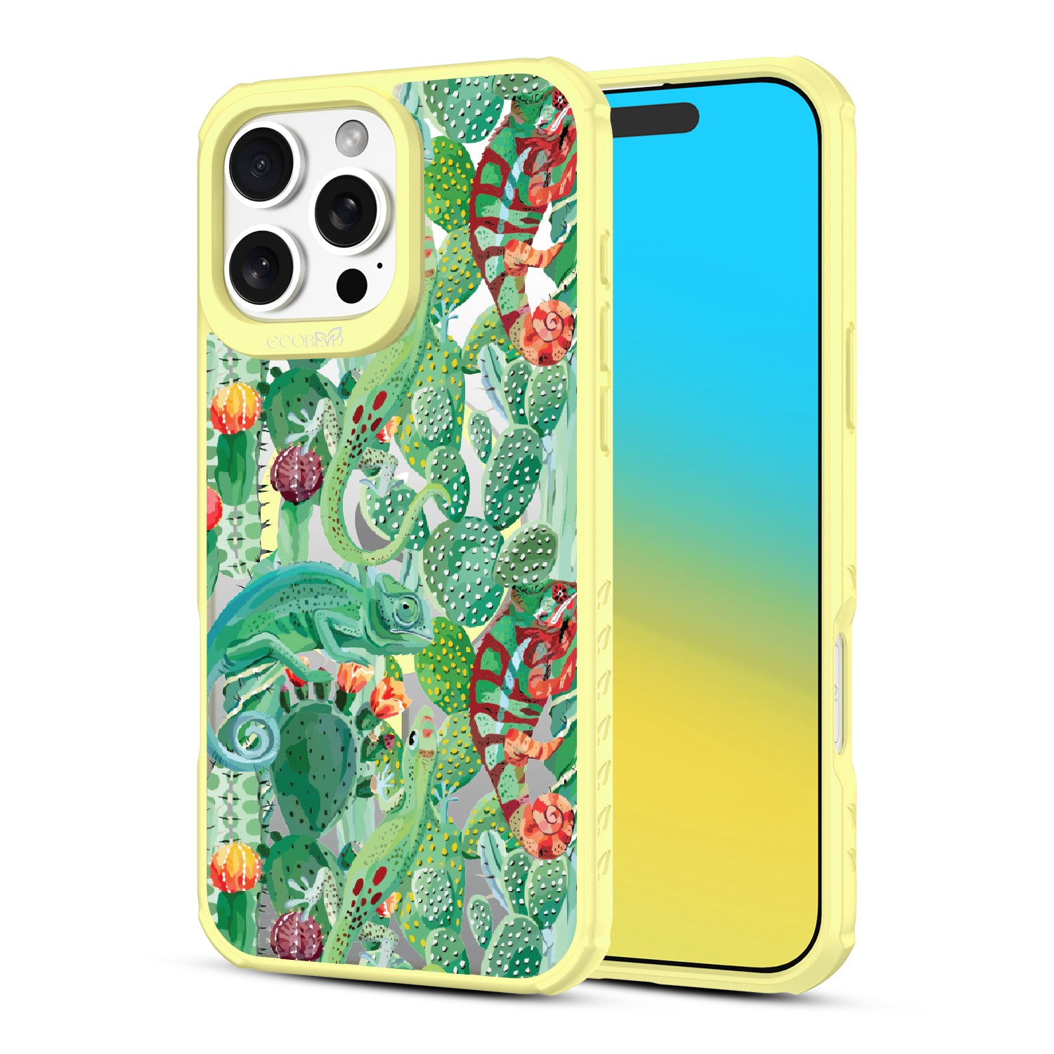 Embrace the captivating artistry of nature's hidden wonders with In Plain Sight, an exclusive design crafted for the Revive clear iPhone 16 Pro Max phone case. Immerse yourself in impeccable style and protection while supporting ocean conservation efforts, as you embark on a wild journey with this captivating phone case. This design shows that sometimes, the most beautiful things are hiding In Plain Sight with a playful nod to the chameleons' camouflage abilities and their effortless blend into the colorful cactus landscape.