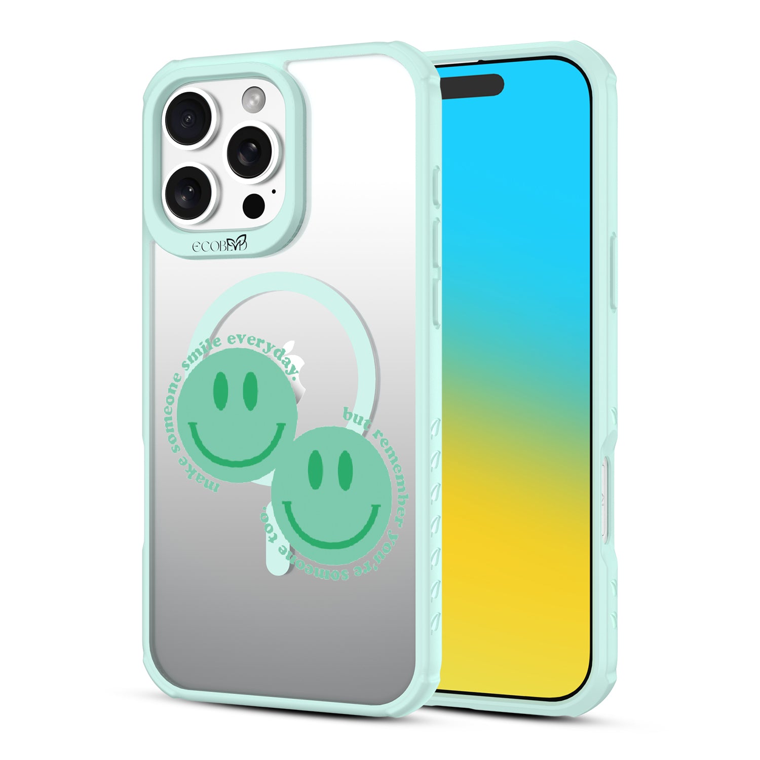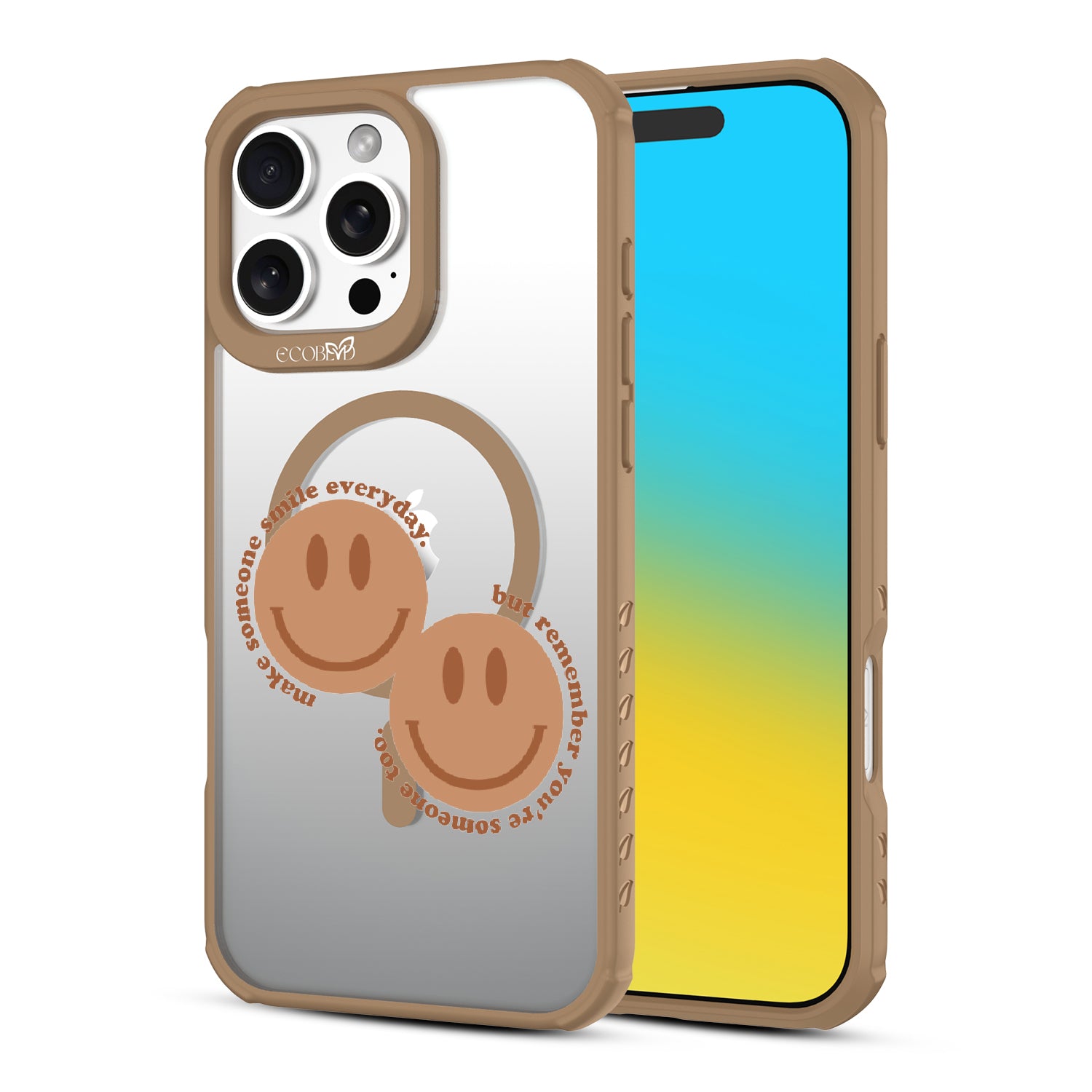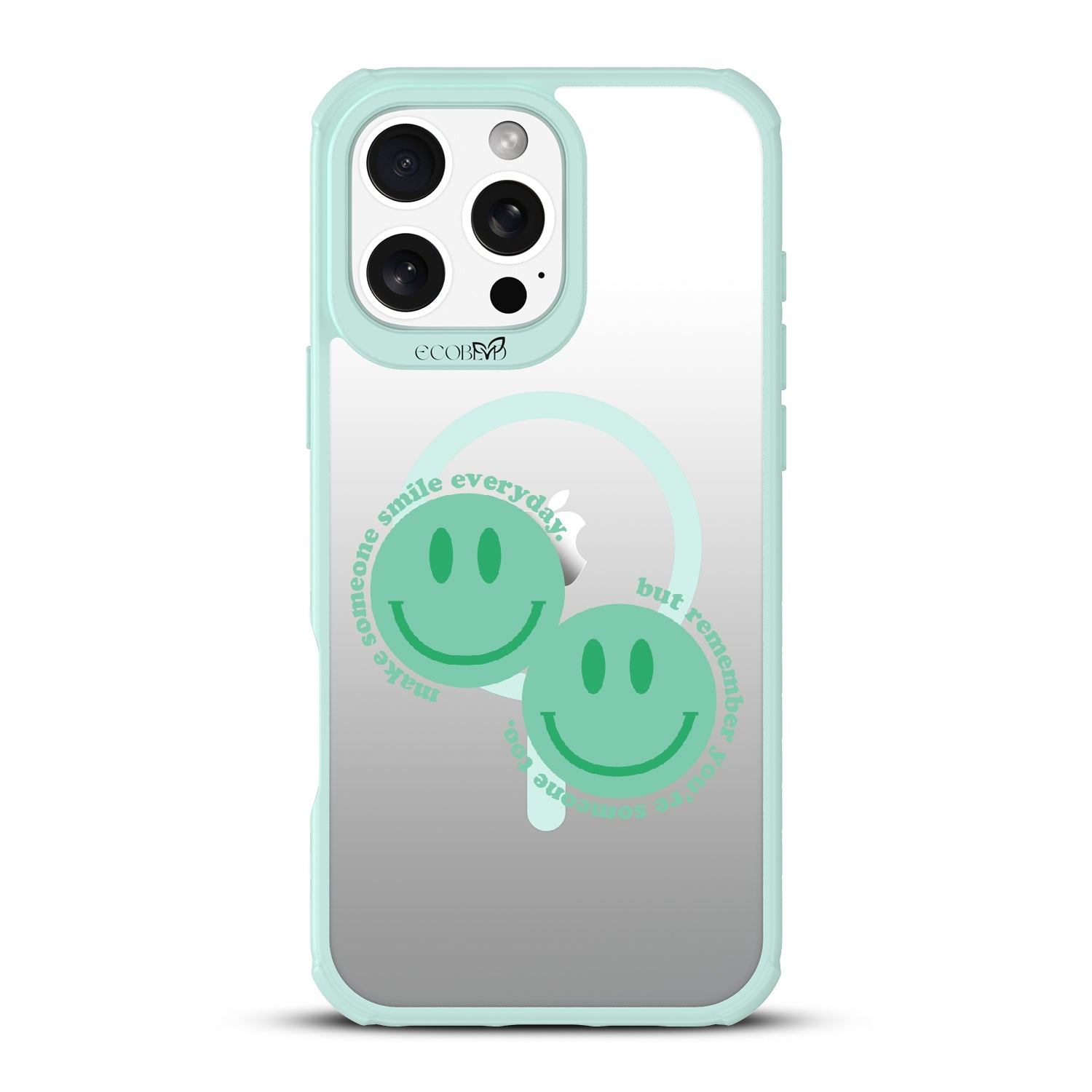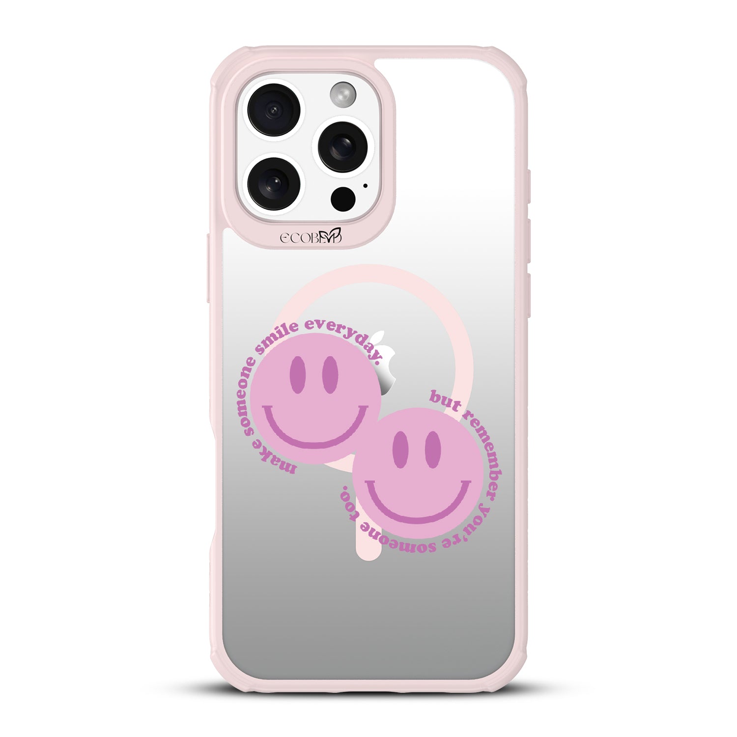 Spread happiness with the Make Someone Smile design on our Revive clear iPhone 16 Pro Max phone case. Featuring two cheerful smiley faces, this design prompts you to be a source of joy for others. While you make someone else smile, recognize that you too are deserving of moments filled with happiness.