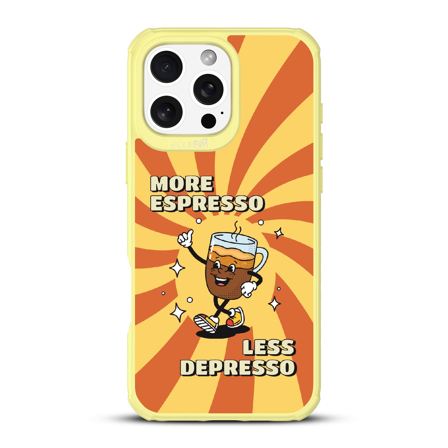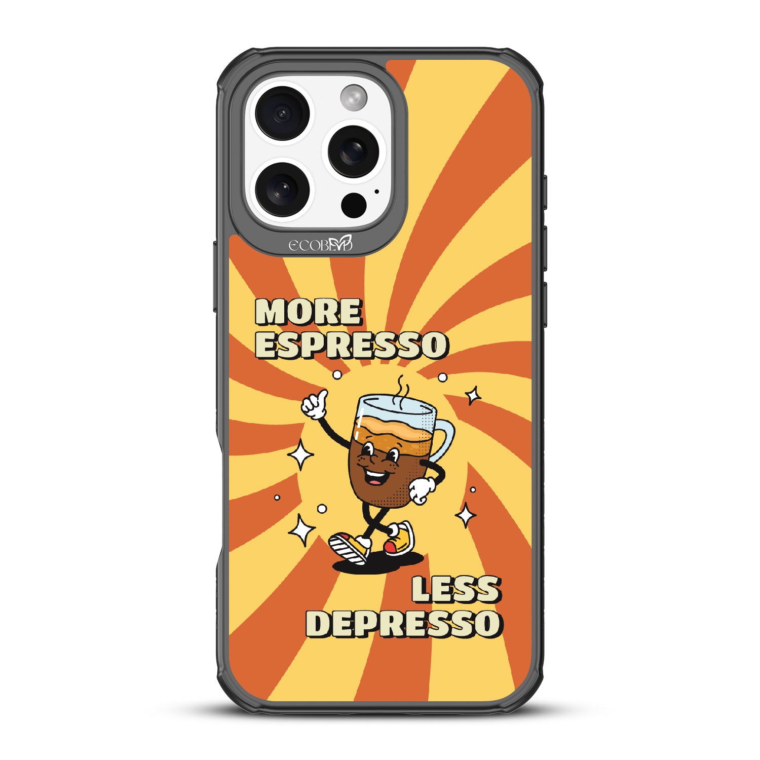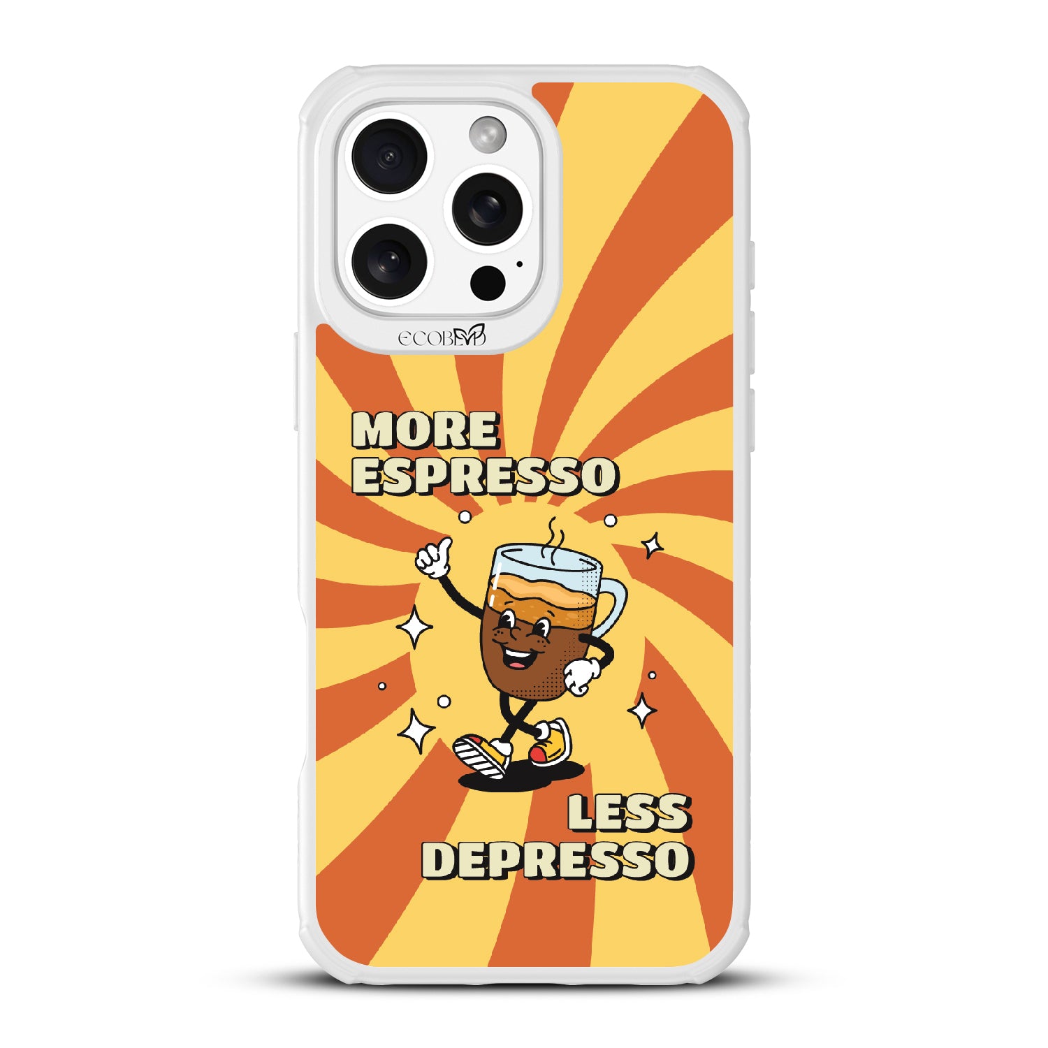 "More espresso, less depresso”—it’s that simple. A cheerful coffee mug and your new daily mantra bring good vibes to life with this playful design on our Revive clear iPhone 16 Pro Max case. Brew positivity and energy into every moment with a look that’s as bold as your first cup.