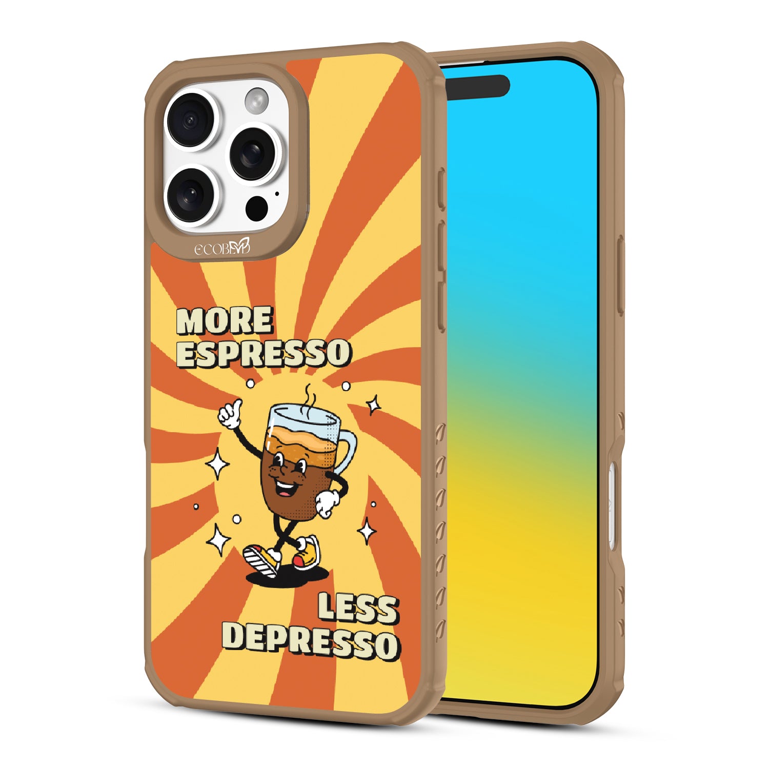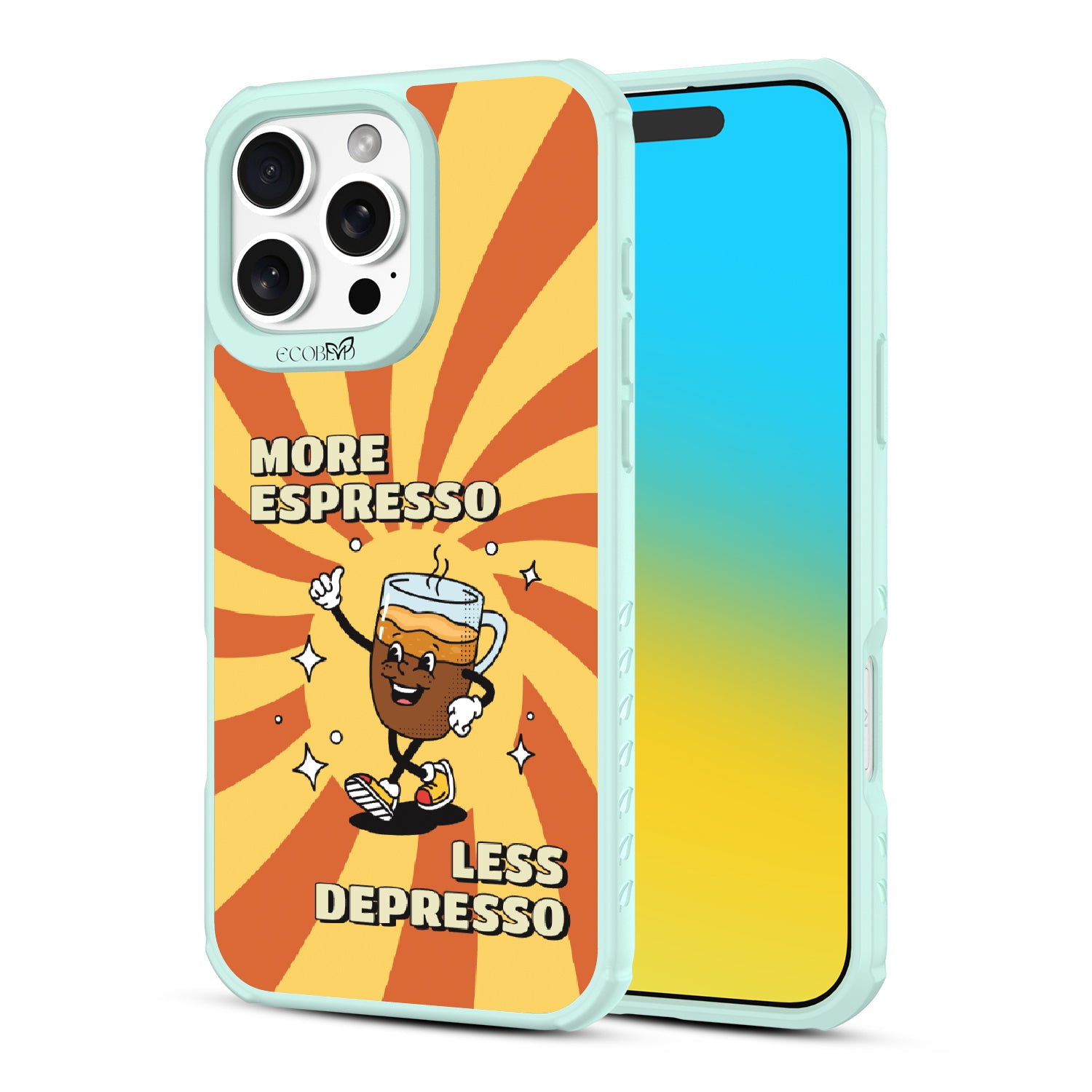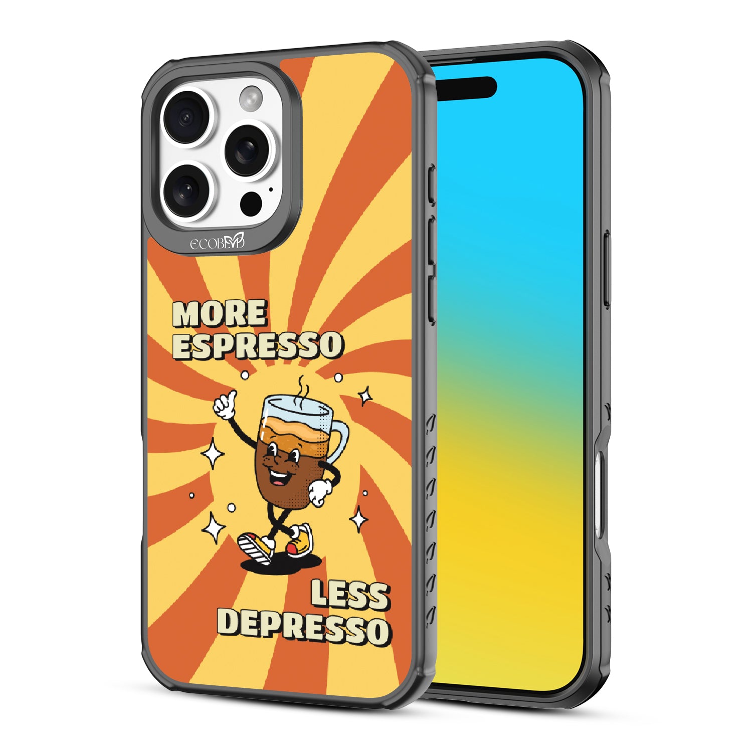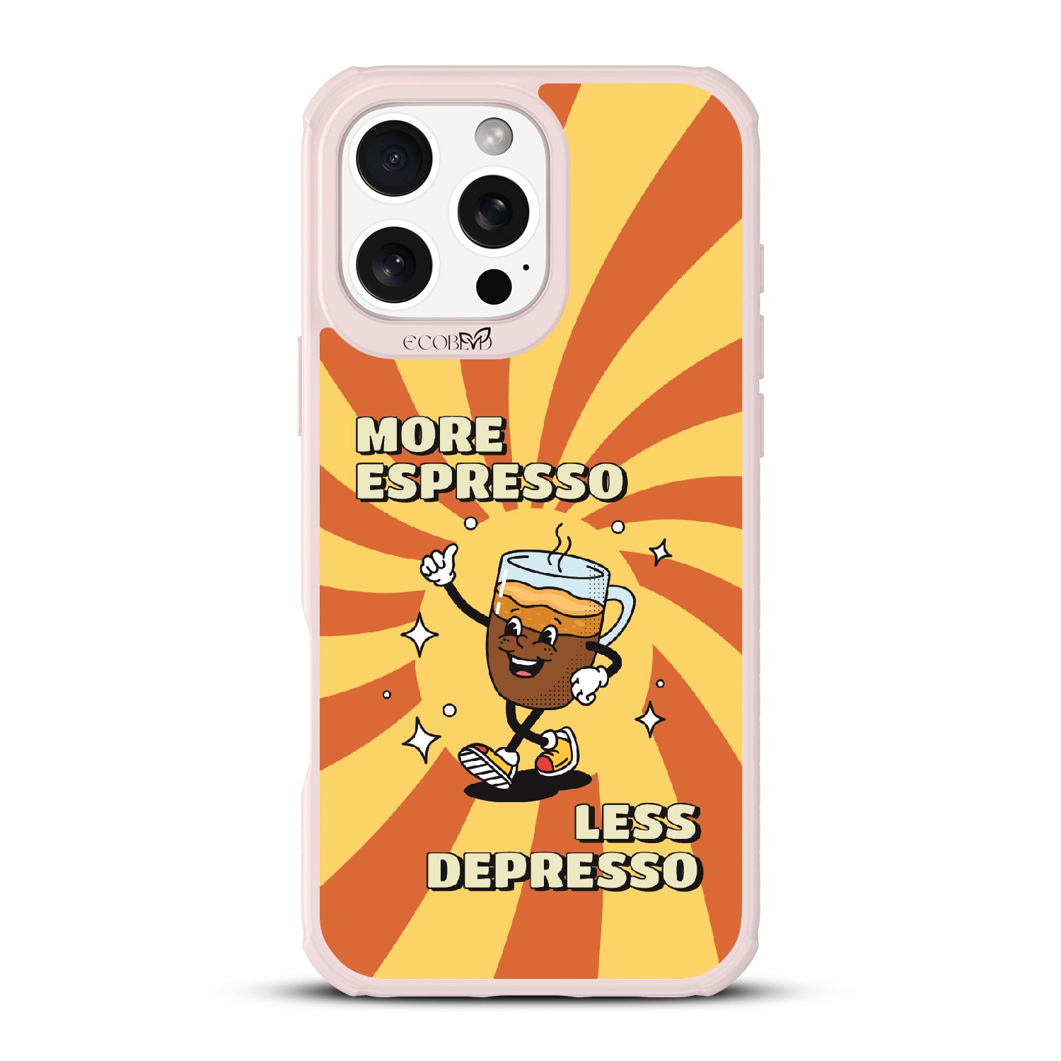 "More espresso, less depresso”—it’s that simple. A cheerful coffee mug and your new daily mantra bring good vibes to life with this playful design on our Revive clear iPhone 16 Pro Max case. Brew positivity and energy into every moment with a look that’s as bold as your first cup.