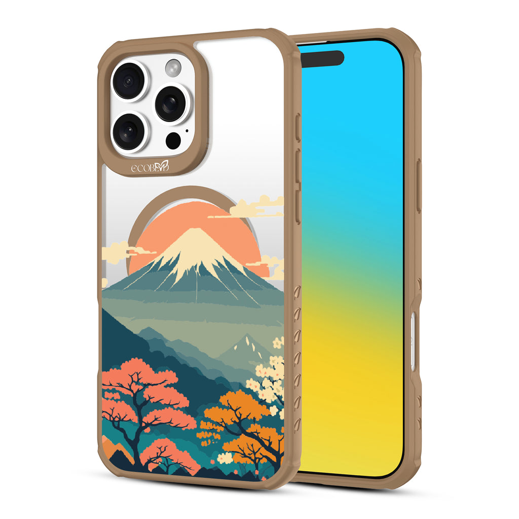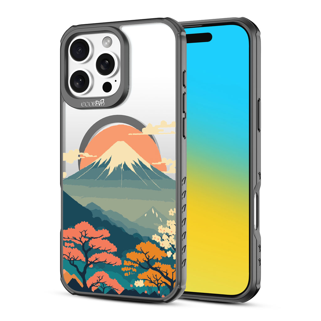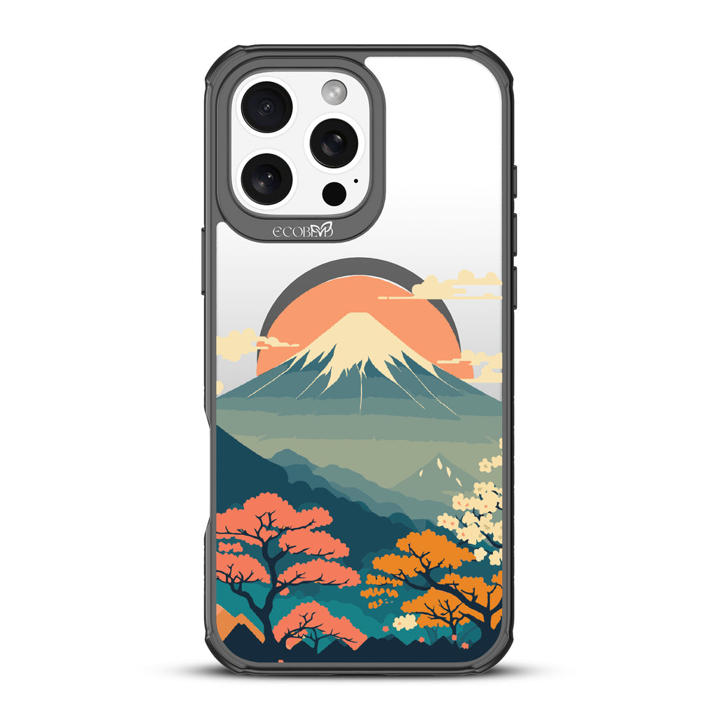 Witness the mesmerizing sunrise over Mt. Fuji with this captivating design on our Revive clear iPhone 16 Pro Max phone case. As dawn breaks over Japan's iconic peak, painting the sky in hues of pink and orange, let your phone transport you to the serene beauty of this majestic landmark.