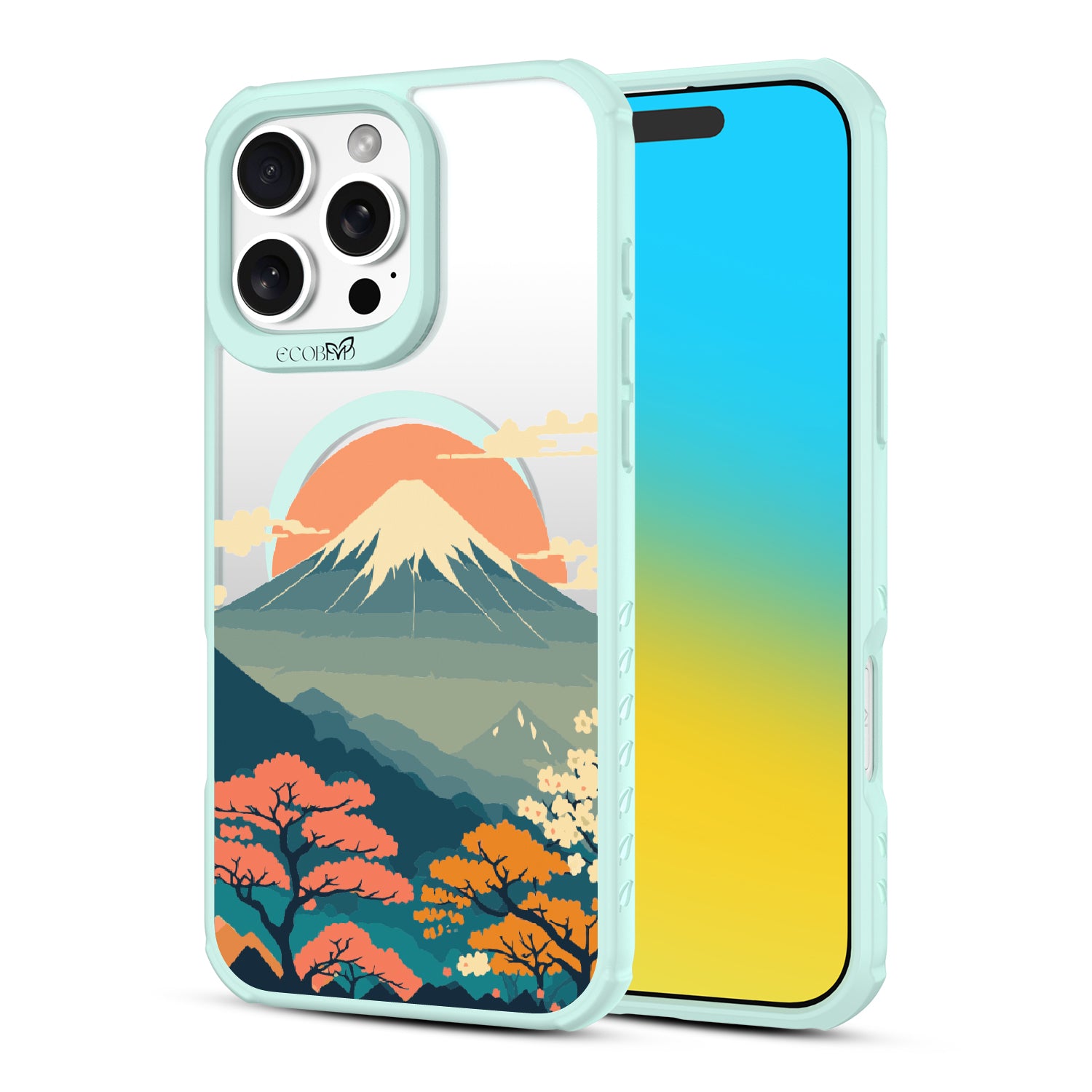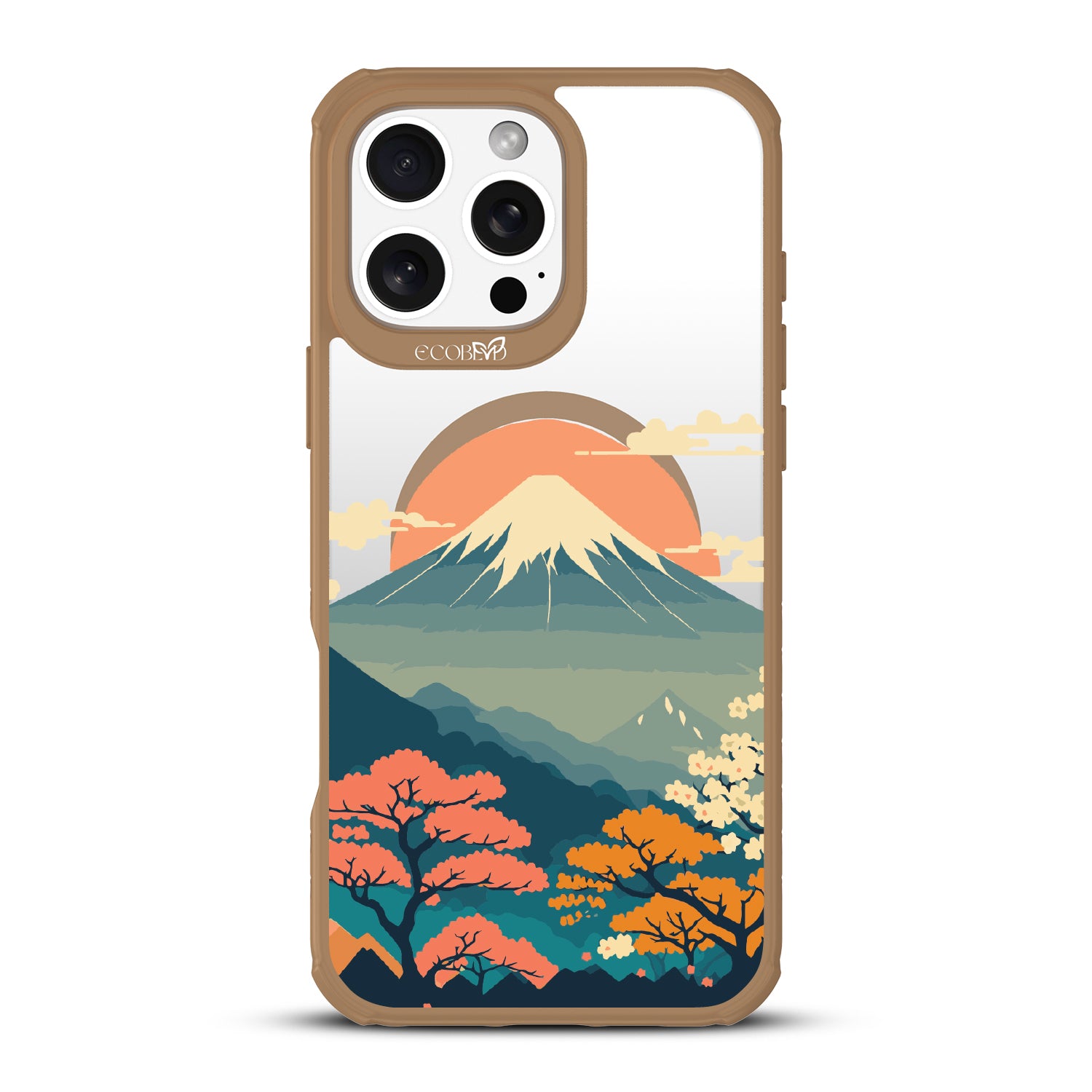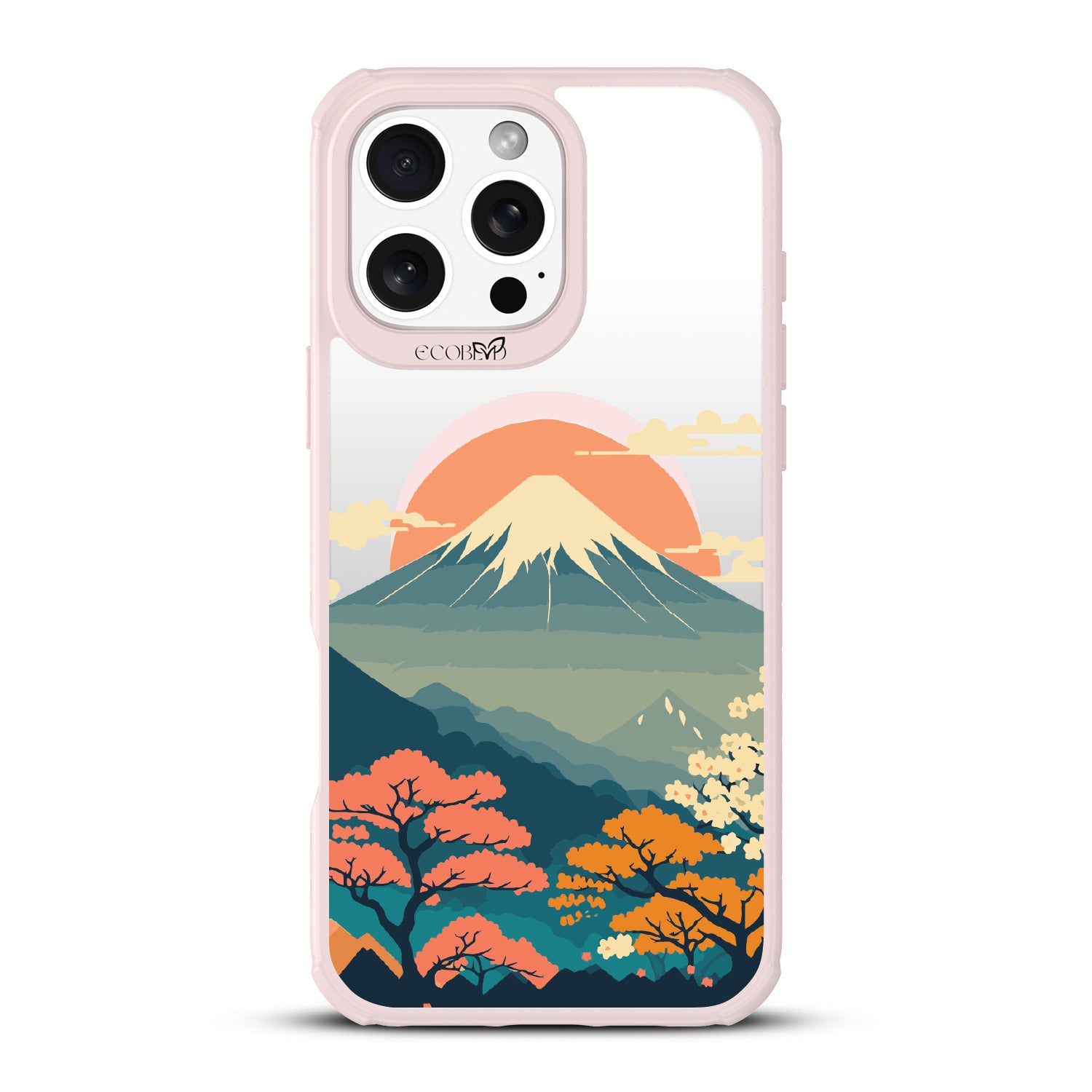 Witness the mesmerizing sunrise over Mt. Fuji with this captivating design on our Revive clear iPhone 16 Pro Max phone case. As dawn breaks over Japan's iconic peak, painting the sky in hues of pink and orange, let your phone transport you to the serene beauty of this majestic landmark.