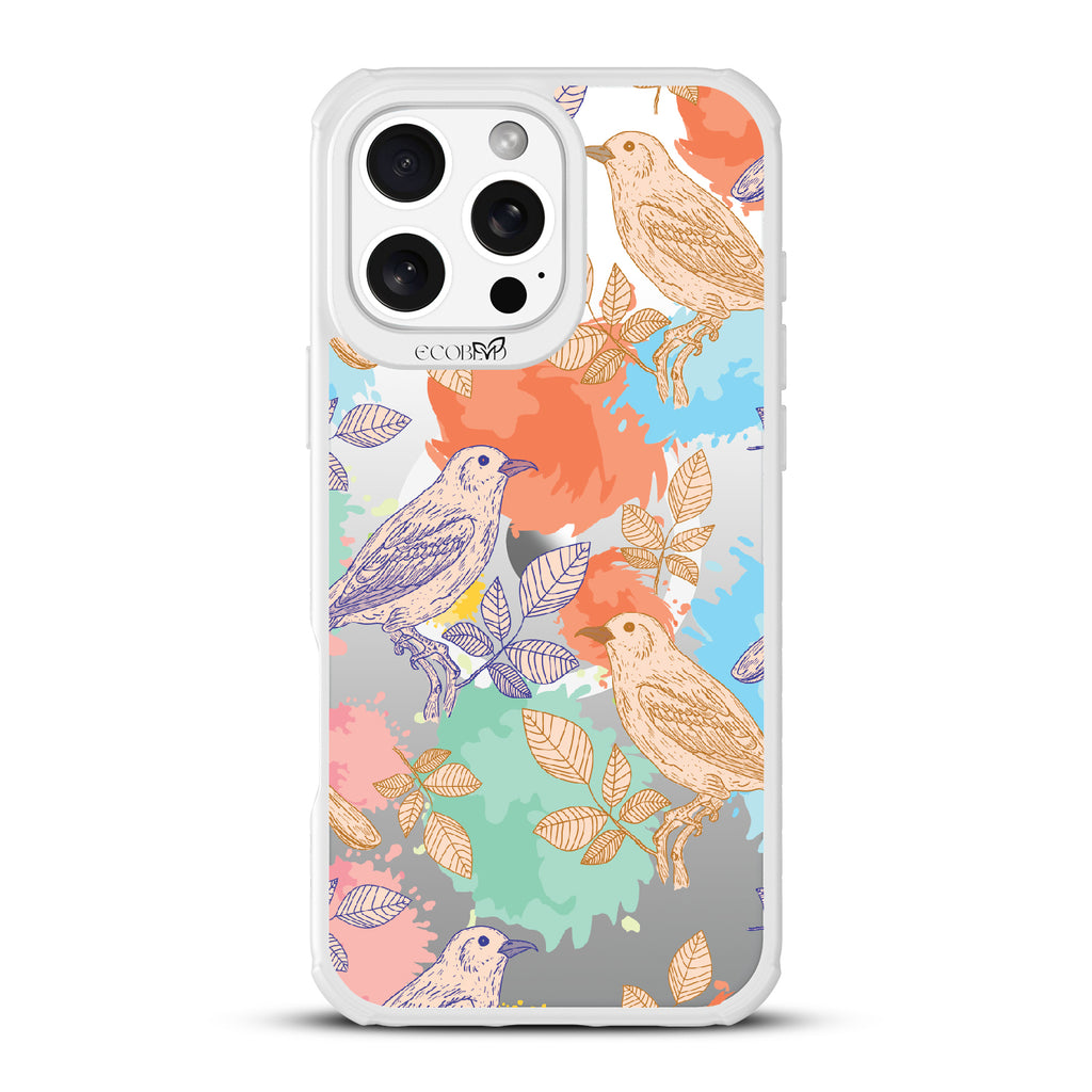 Get ready to soar to new heights with the Perch Perfect design for the Revive clear iPhone 16 Pro Max phone case. This feathered symphony will have you tweeting in delight as colorful birds perch on branches, creating a harmonious composition that hits all the right notes. The Perch Perfect design is like a symphony for your phone, hitting all the right notes with its playful bursts of color and intricate line art birds perched on a branch. Each bird adds its own unique melody to the song, creating a harmonious design that captures the essence of feeling wild and free. Let your phone be the conductor of this beautiful masterpiece with Perch Perfect.