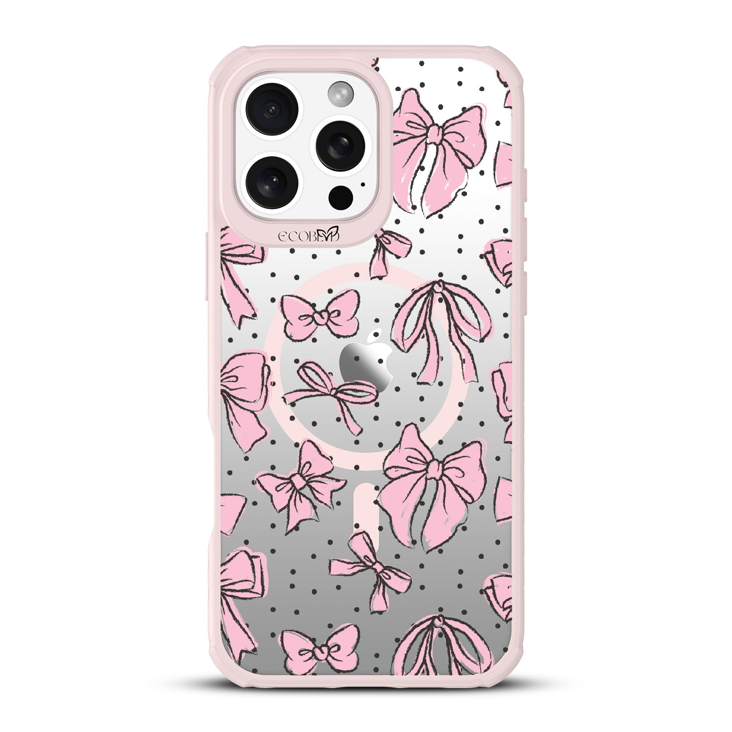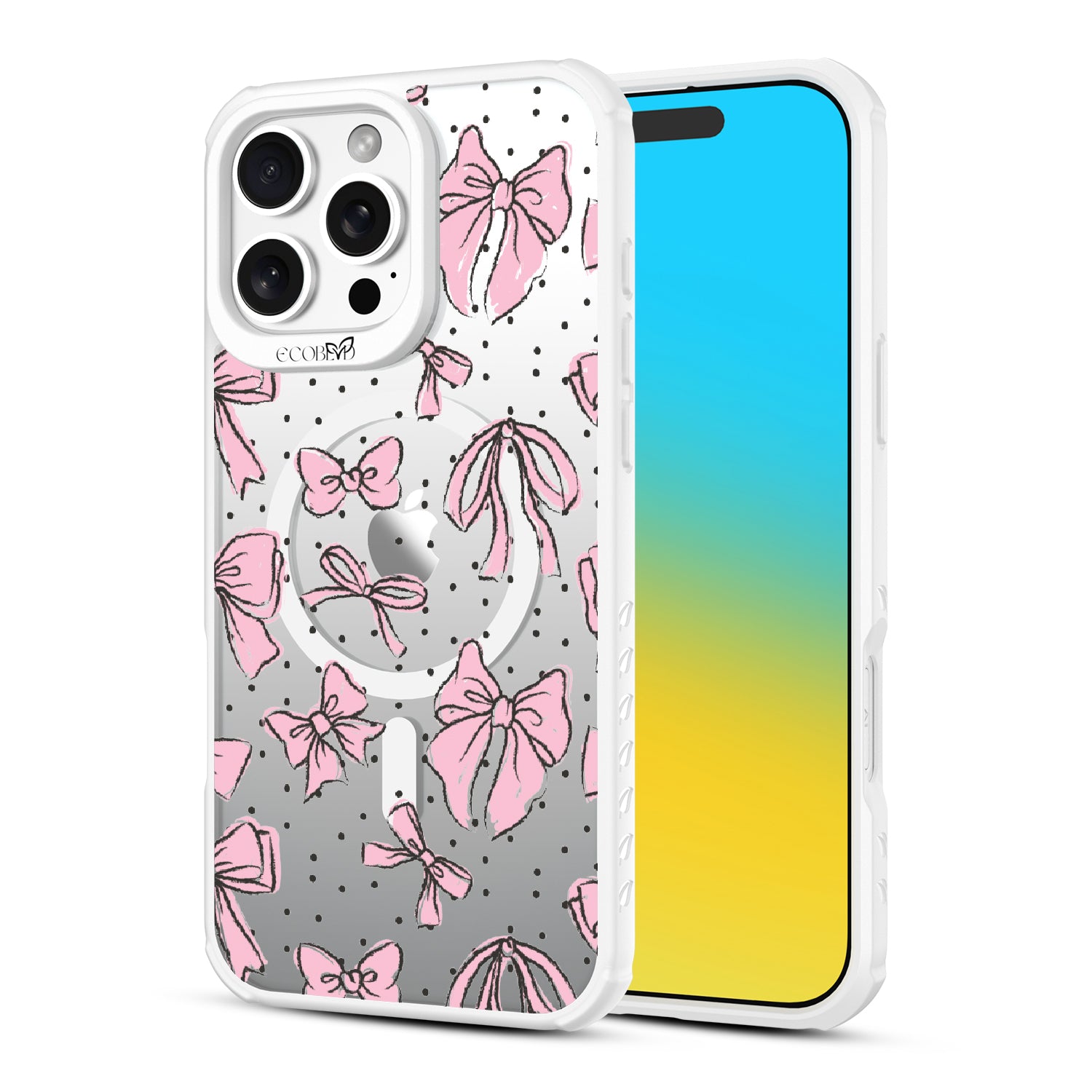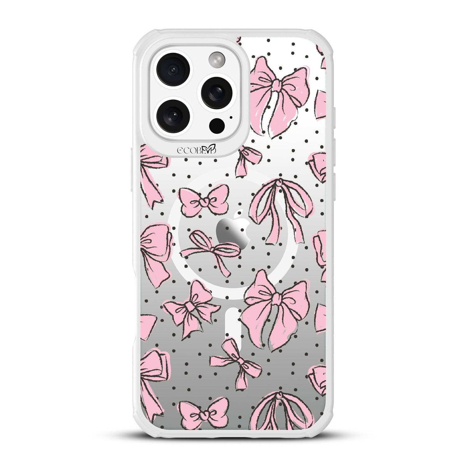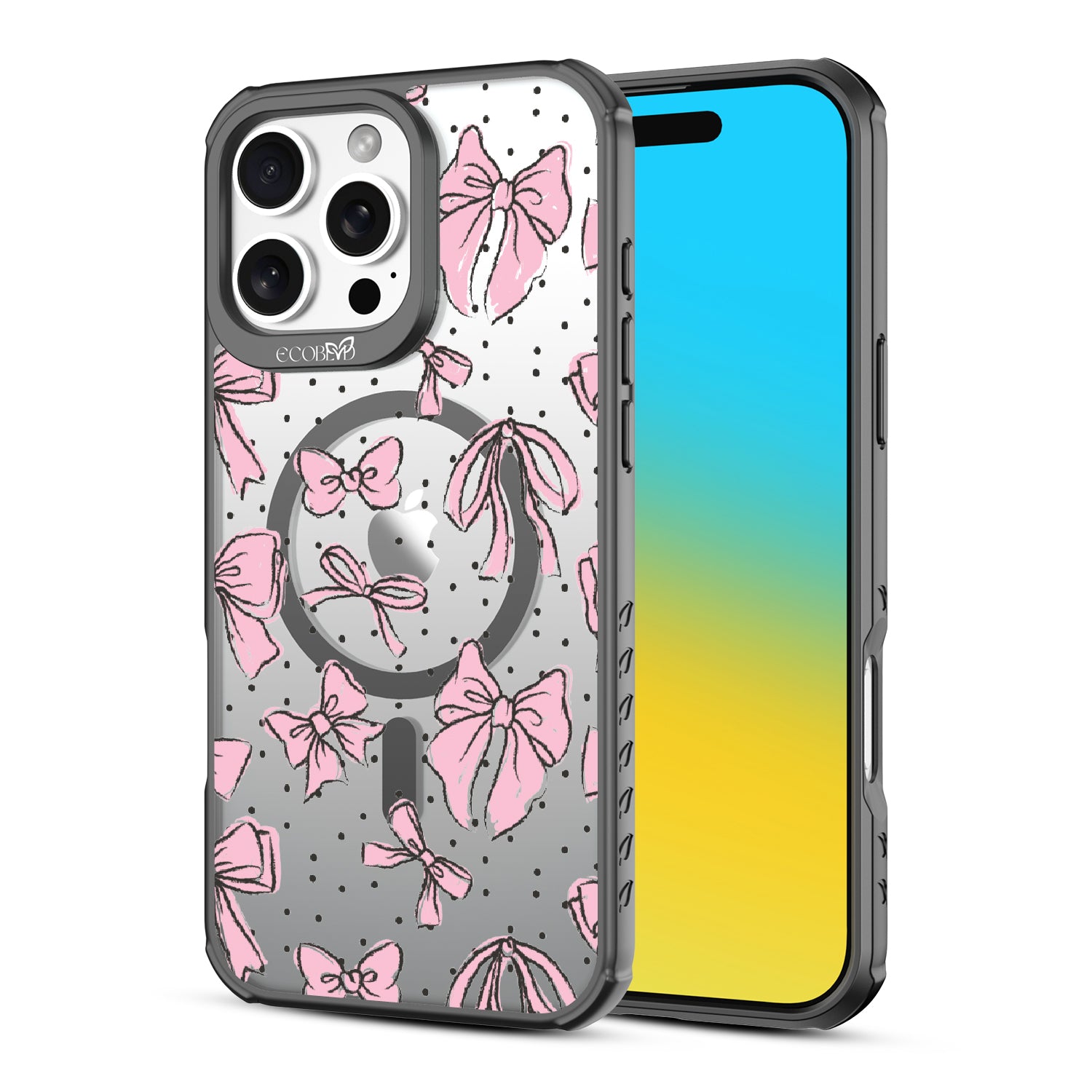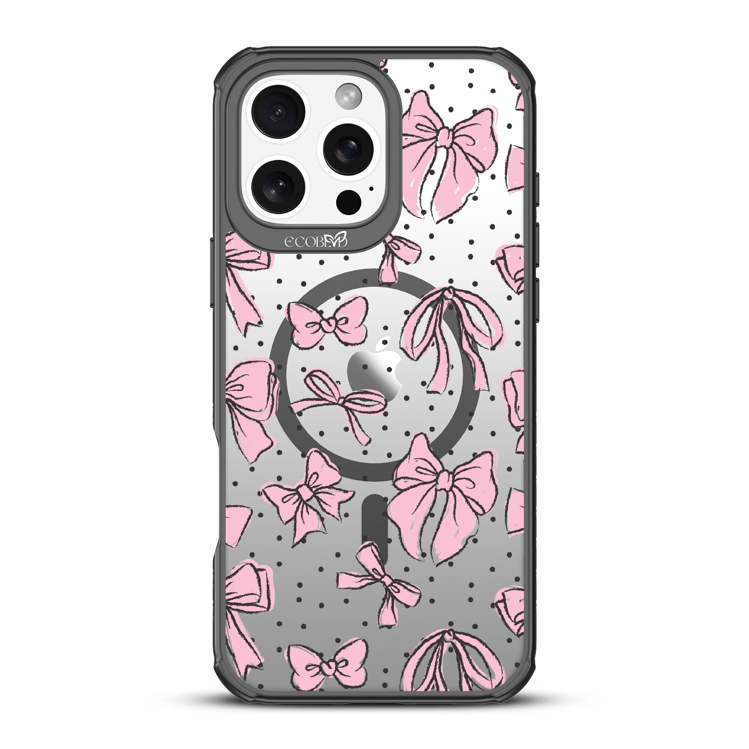 Enter your Soft Girl Era with this bow-tiful design on our Revive clear iPhone 16 Pro Max case, where coquette pink bows and black polka dots team up to give your device a dose of girly glam. Surround yourself with girl power, radiating kindness, love, and gentle energy. Let your phone be a reminder of the unbreakable ties that bind us together.