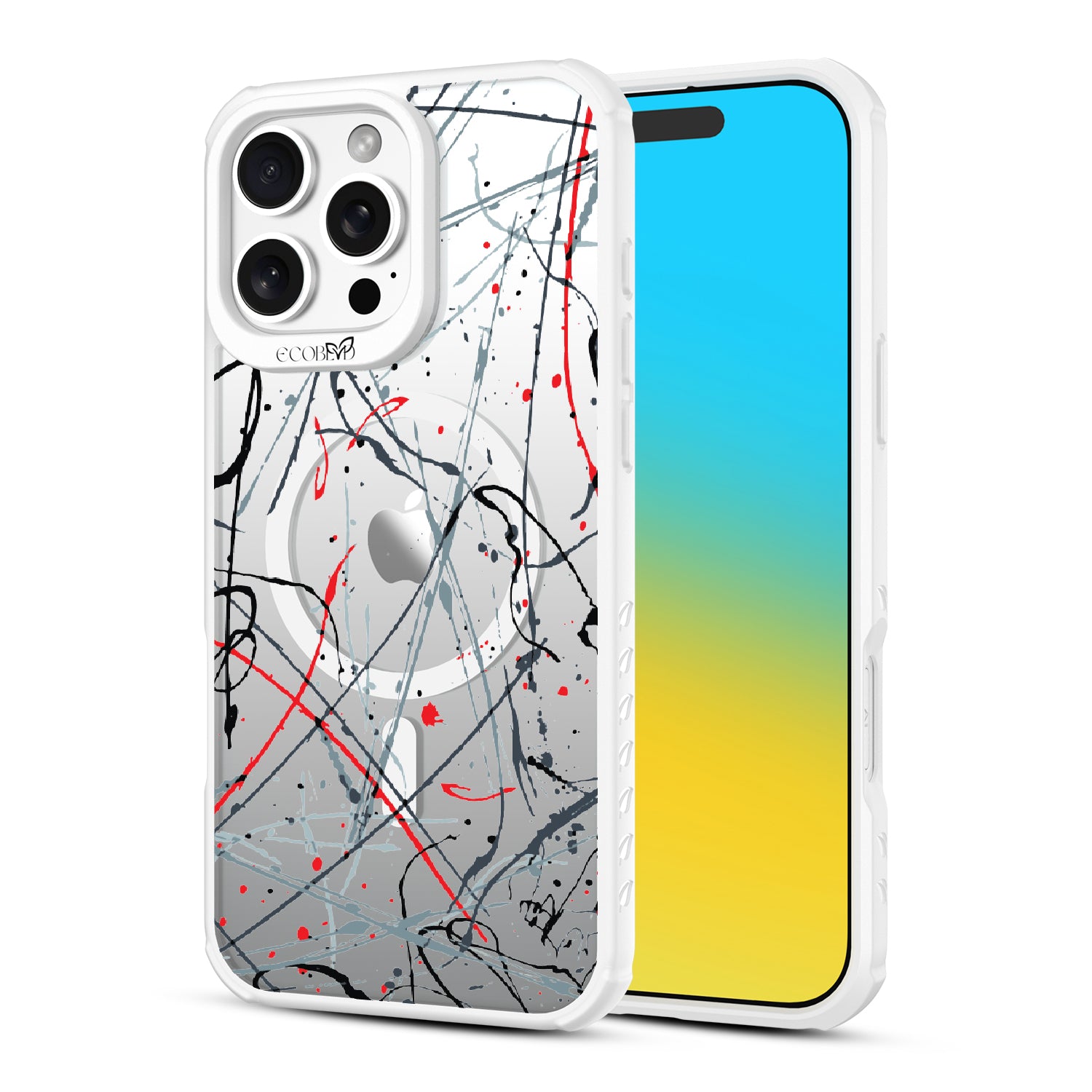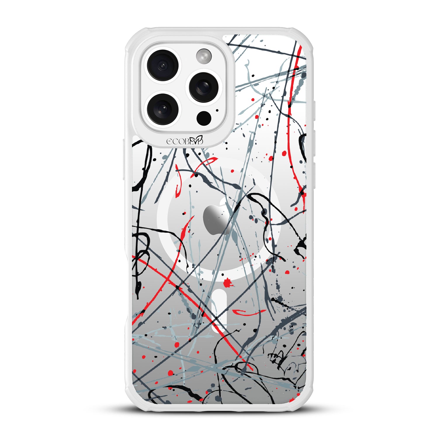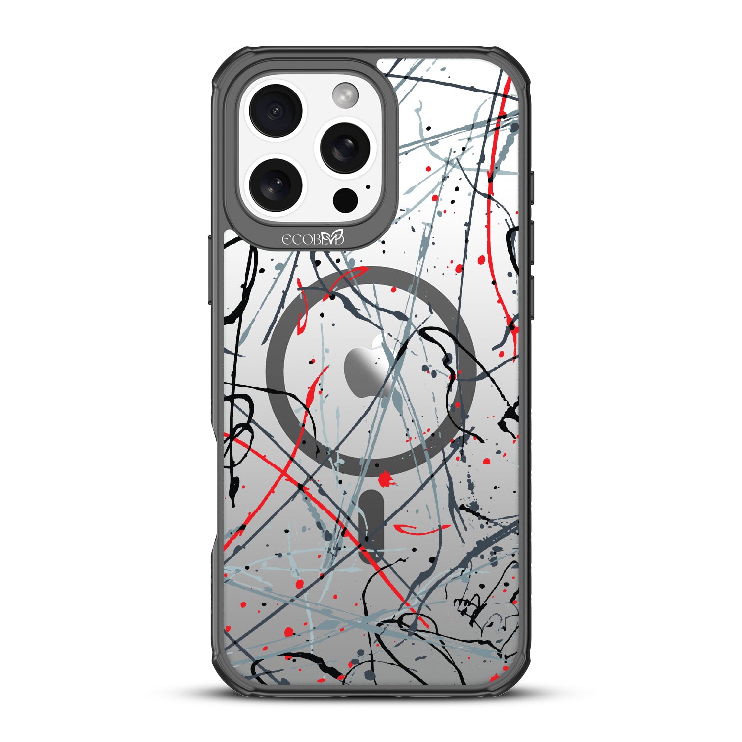Unconventional and avant-garde, the Stroke Of Genius design on our Revive clear iPhone 16 Pro Max phone case is a bold statement of progress that captures the essence of a creative journey - its abstract paint splatter lines with black and red lines resembling brush strokes signify the power, potential, and elegance of a stroke or flick that can ignite the genius within you, or at least on your phone.