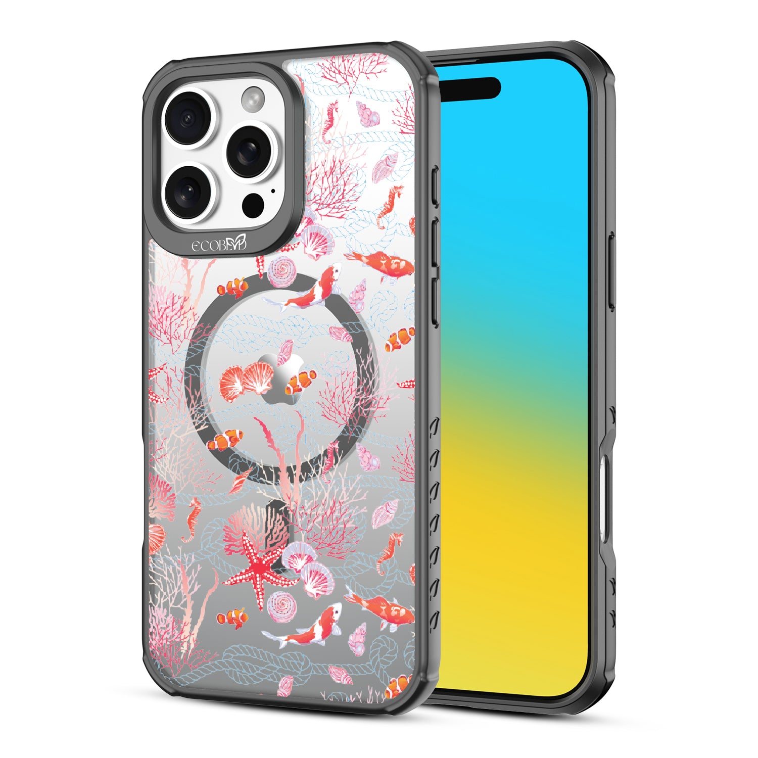 The coral is always brighter, Under the Sea! With this design our Revive clear iPhone 16 Pro Max phone case, you'll see, your phone’s full of glee, under the sea! Coral and critters, they all come together, swirling in hues, pinks, and blues, where life’s better wetter, take it from me! Your phone will be dancing, twirling, and prancing, carrying the magic of the ocean so fancy! So let your phone be, full of joy and glee, under the sea.