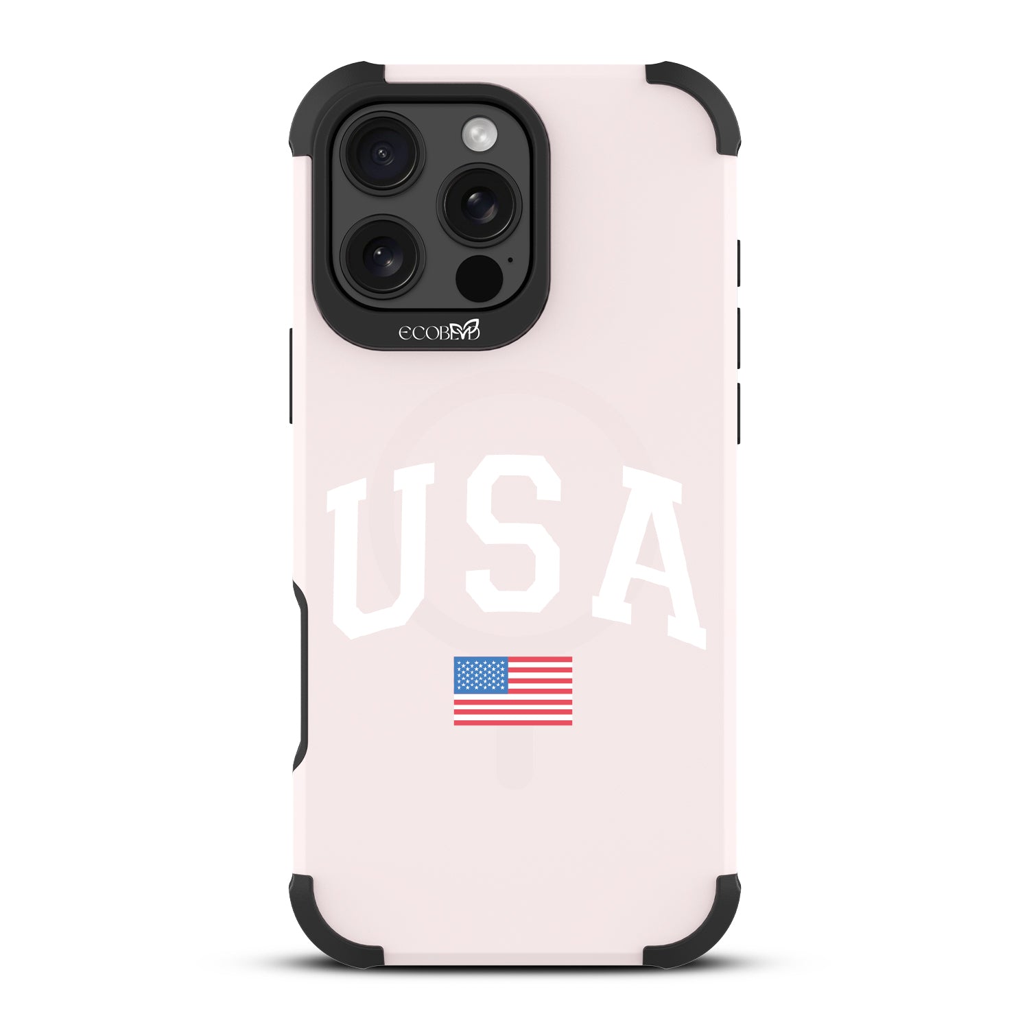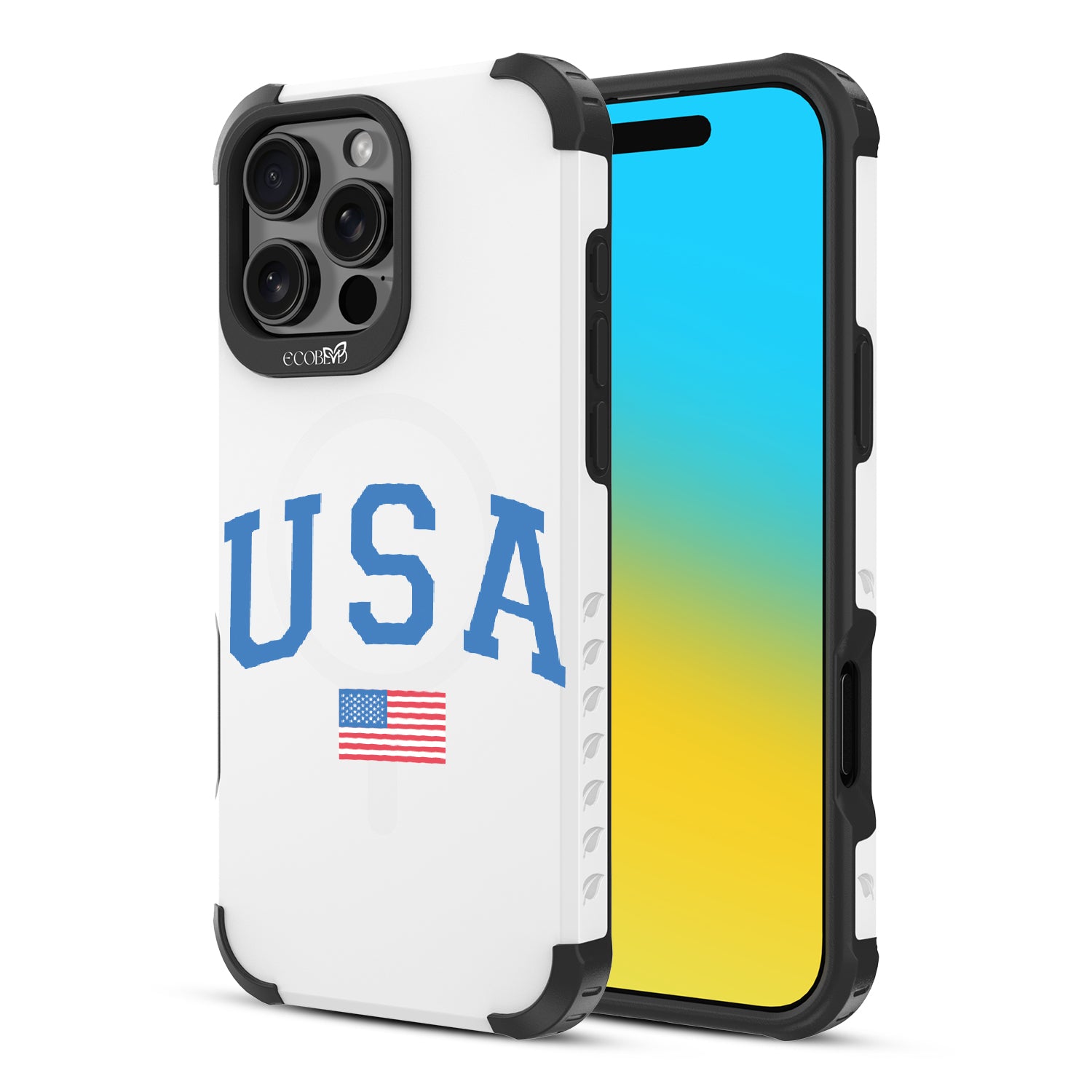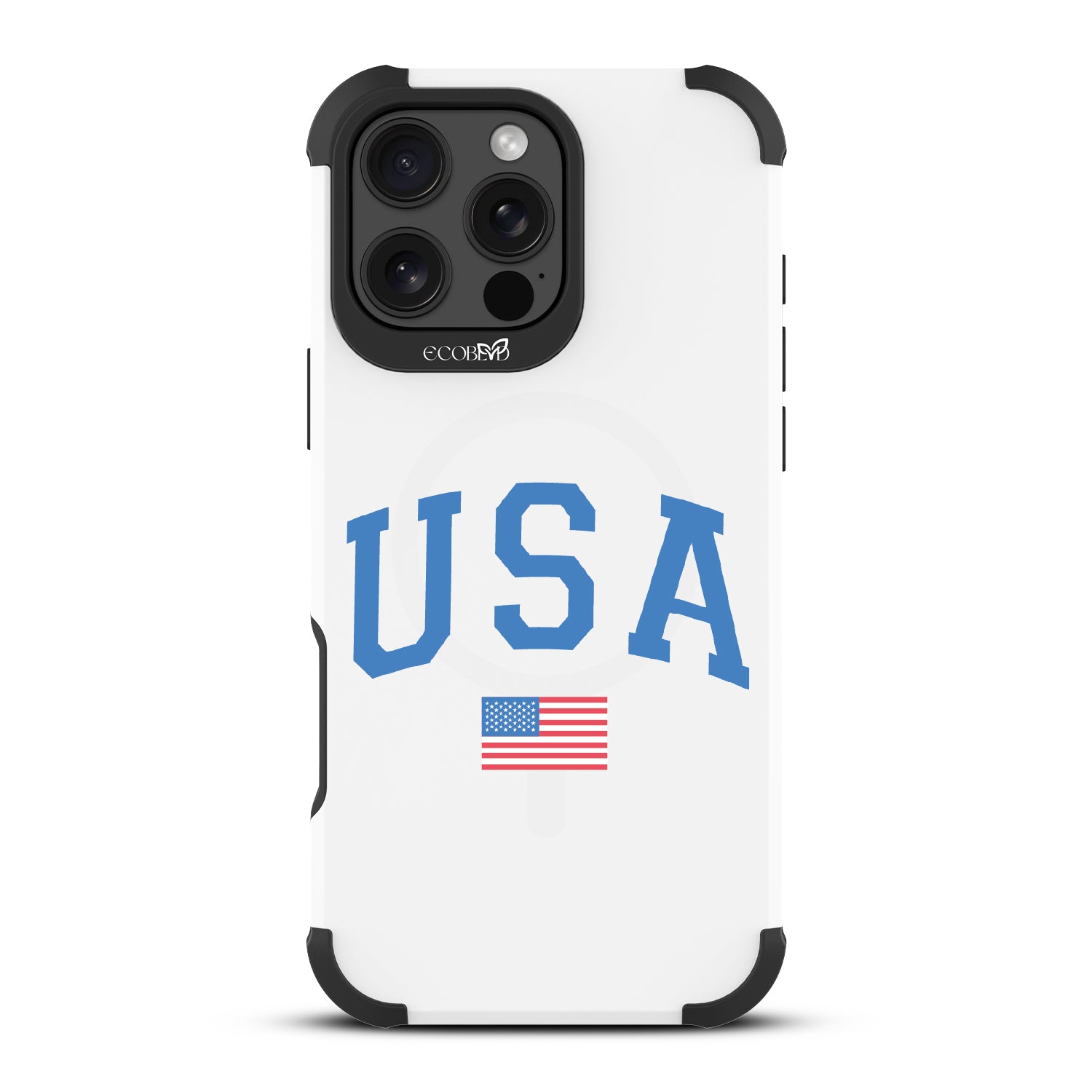Cheer on the stars and stripes with the All-American design on our Reforge rugged iPhone 16 Pro Max phone case. With bold "USA" and the American flag, this case celebrates Team USA and the Olympic games.