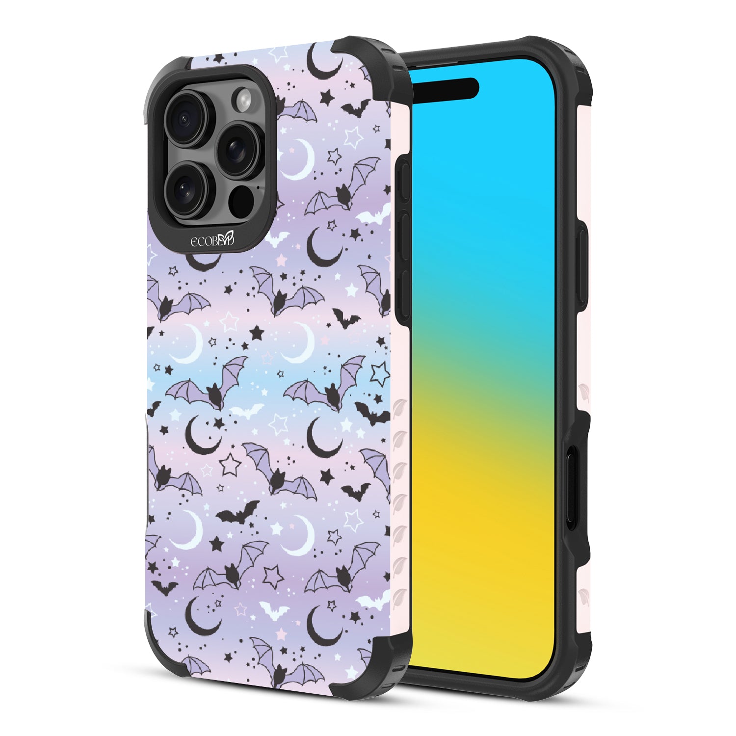 As twilight fades to darkness, the Bat Habits design comes alive on on our Reforge rugged iPhone 16 Pro Max phone case, mirroring the bats as they take flight for their nocturnal rituals. Each crescent moon seems to whisper secrets to the celestial creatures, guiding them through the inky sky, while the stars above bear witness to this enchanting dance party!