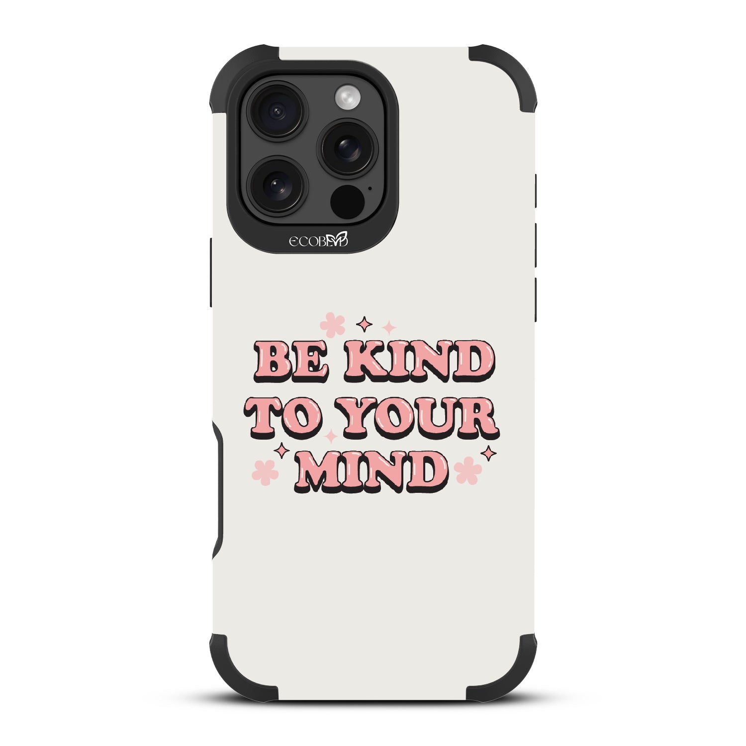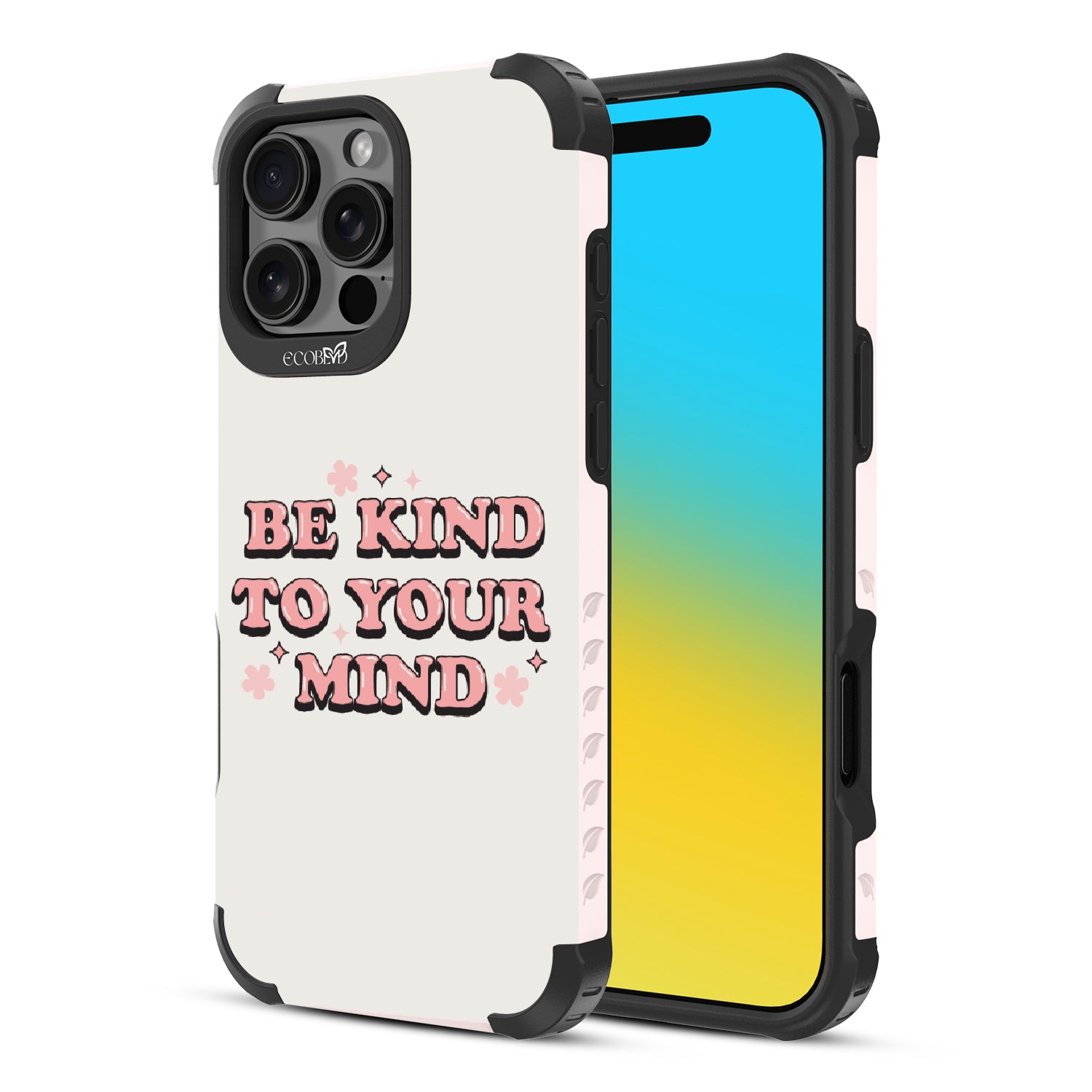 Unwind and nurture your mind with the motivational Be Kind To Your Mind design on our Reforge rugged iPhone 16 Pro Max phone case. This design is an active participant in your journey toward self-kindness, helping you foster a positive and nurturing connection with your mind. You can use each interaction as an opportunity to be kind to yourself.