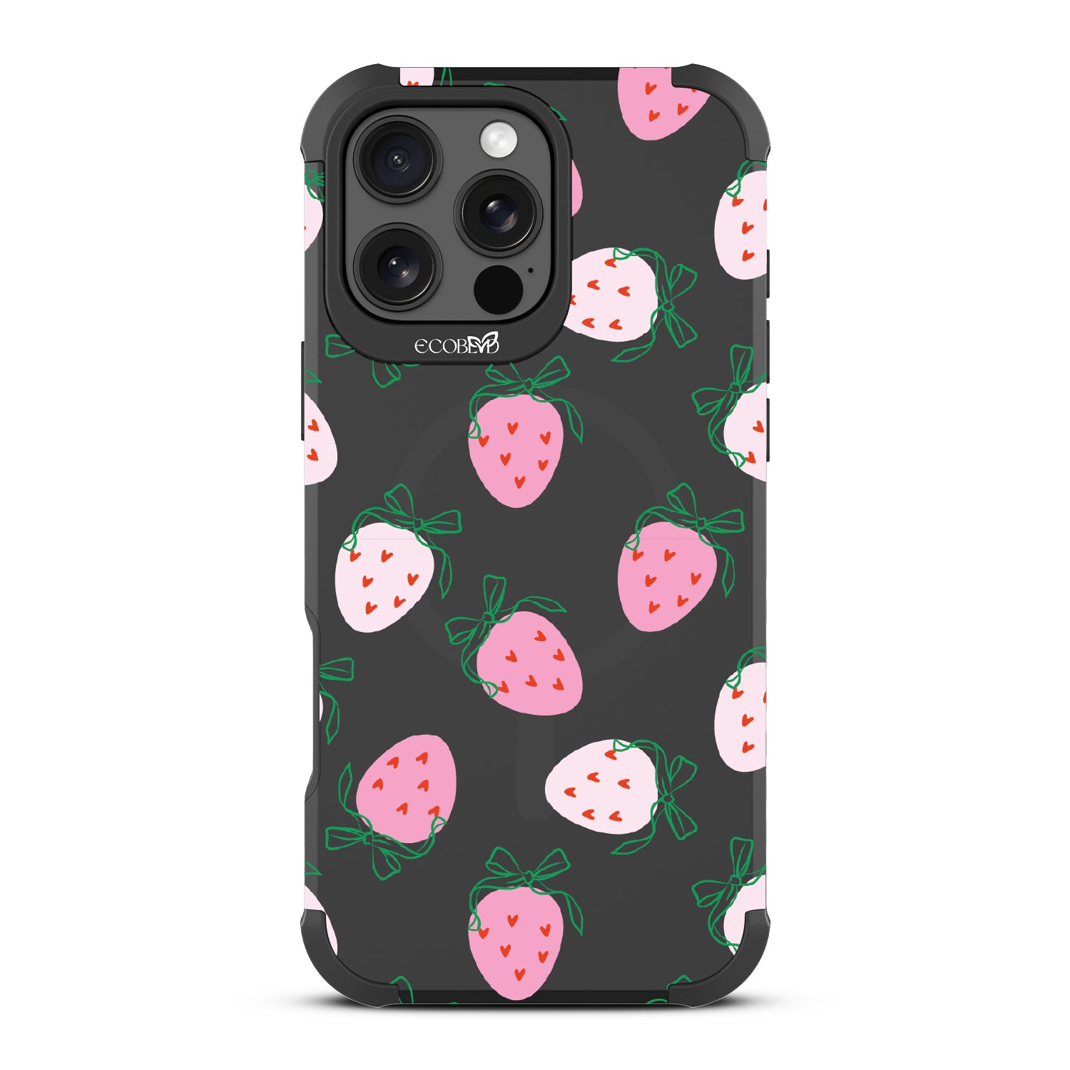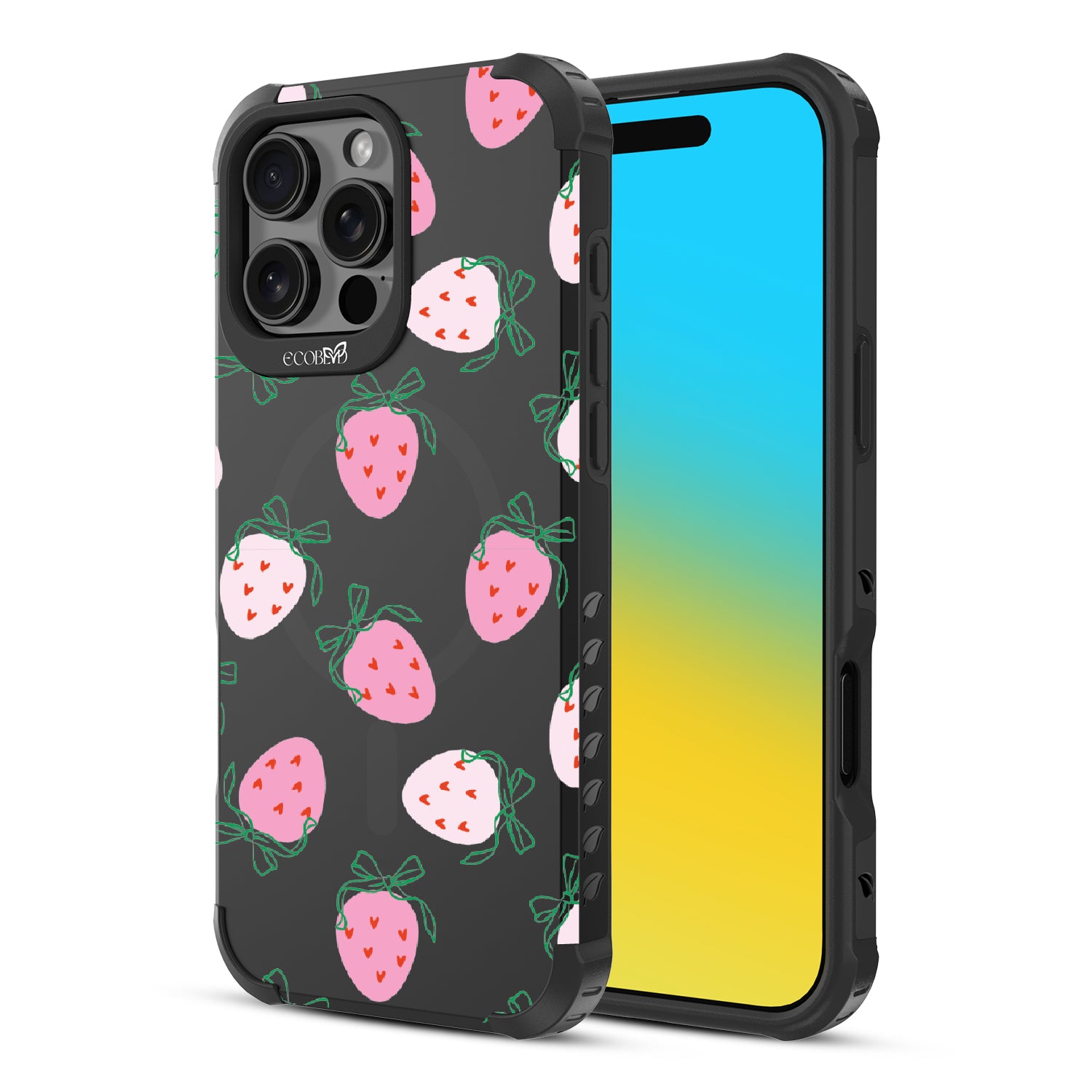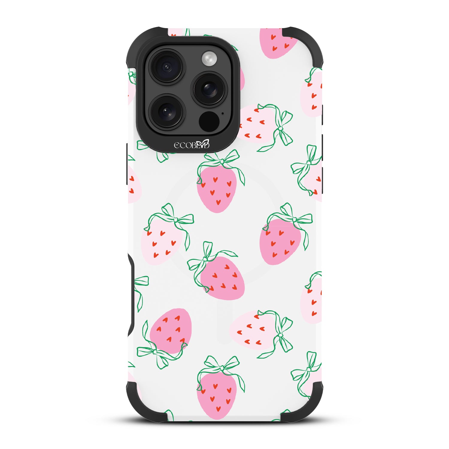 The Berry Cute design on our Reforge rugged iPhone 16 Pro Max phone case lives up to its name with luscious strawberries and coquettish bows, giving your phone a picked-for-you look. This pattern brings a touch of playful femininity, perfect for any coquette girl. Sweeten things up and show off a truly juicy style. Grab the Berry Cute case and let your phone be the berry best!