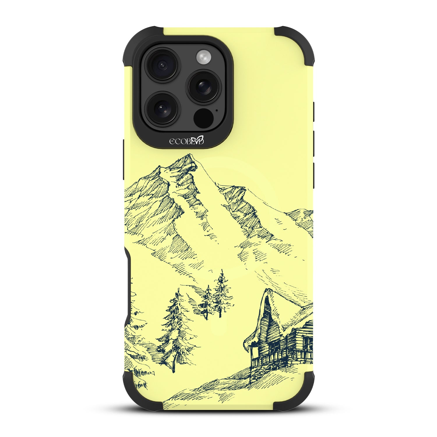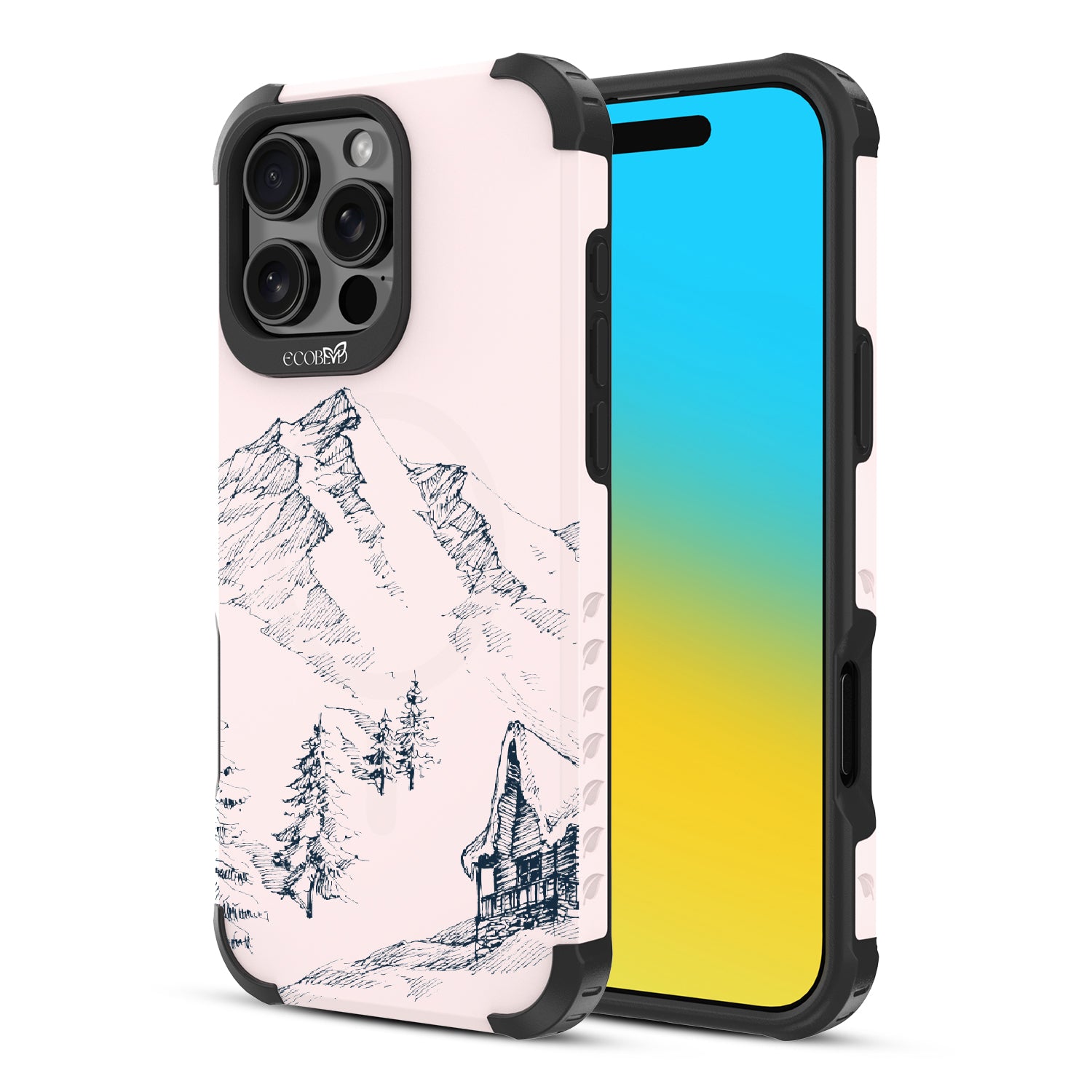 Enjoy an off-grid mountainside getaway right from your phone with the Cabin Retreat design on our Reforge rugged iPhone 16 Pro Max phone case, as the hillside and snow-capped view provide an escape in five serene colors: Midnight Black, Cascade Blue, Foliage Green, Illuminating Yellow, and Wildflower Pink.
