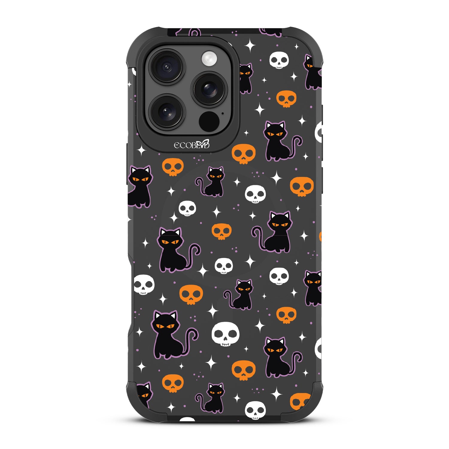 Delve into the depths of the Catacombs design on our Reforge rugged iPhone 16 Pro Max phone case, where black cats and skulls offer an unexpected and delightful deviation from the typical eerie association. Rather than fear, this design brings forth joy and playfulness, transforming catacombs into a realm of spirited enchantment and Halloween festivity.