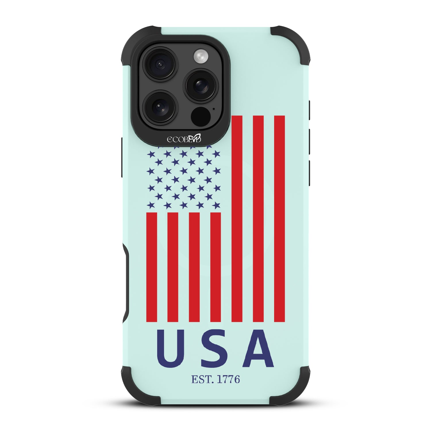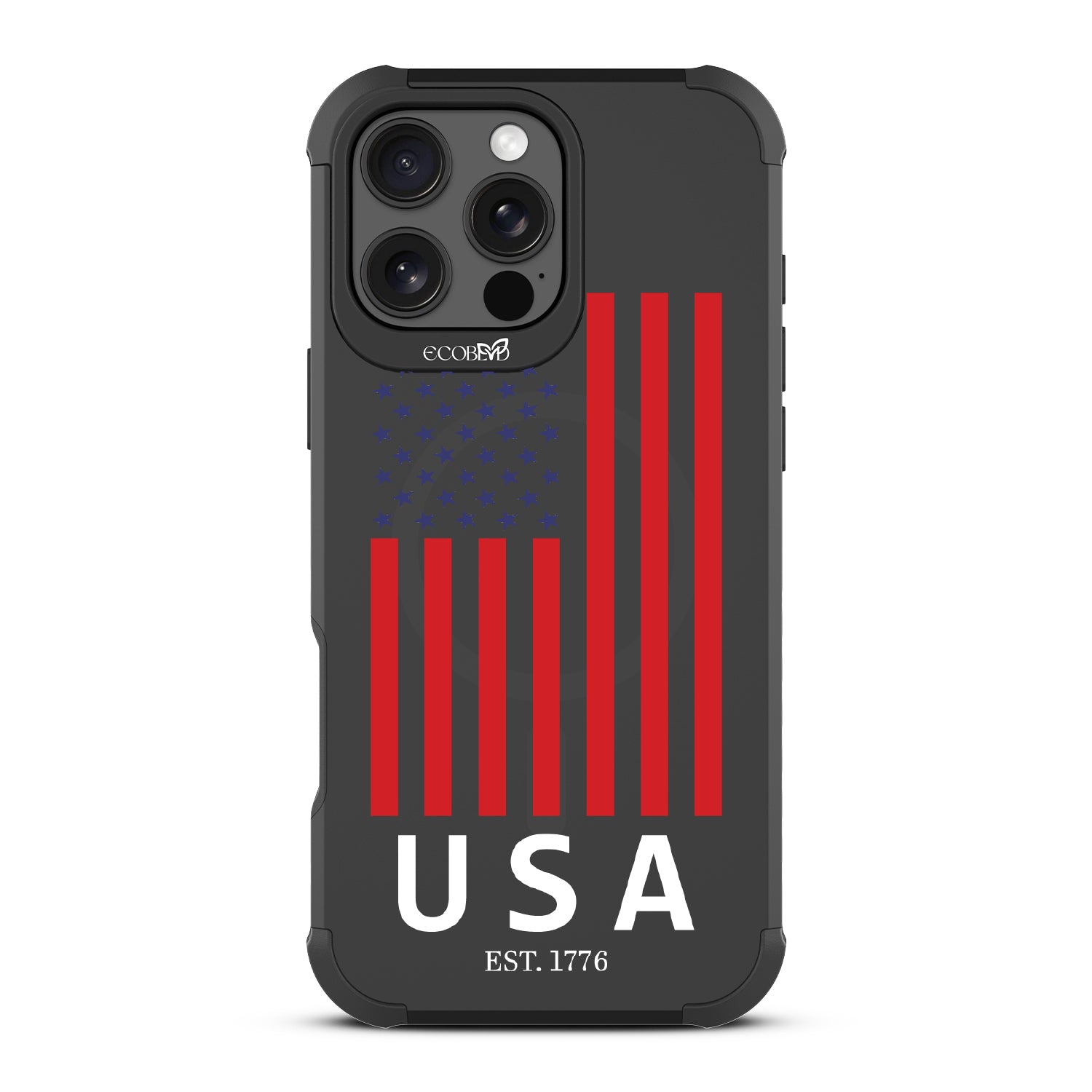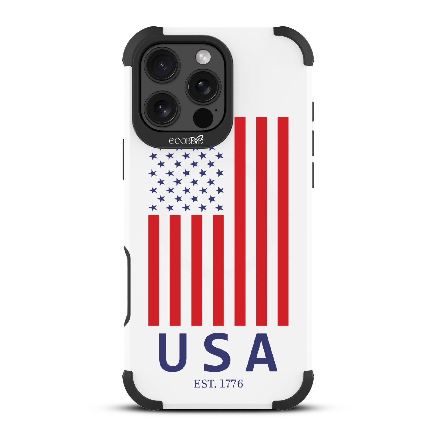 Let freedom ring loud all year long with the EST 1776 design on our Reforge rugged iPhone 16 Pro Max phone case. This design showcases the iconic stars and stripes, along with "USA" and "EST. 1776," making it the perfect accessory for all patriotic festivities and beyond.