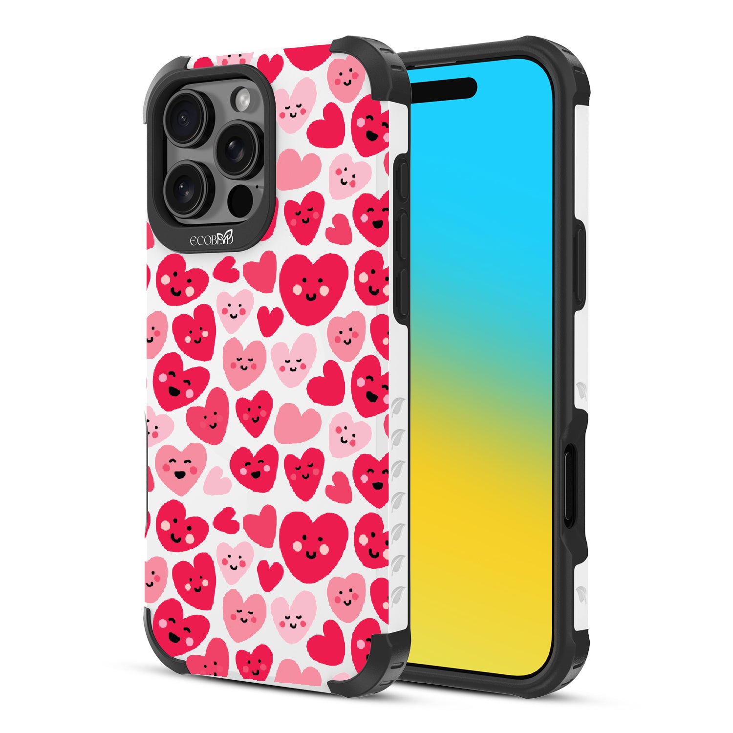 There is love in the air - and on your phone - with our Happy Hearts design on our Reforge rugged iPhone 16 Pro Max phone case, as its cute and vibrant cartoon hearts spread happiness and love wherever you go on.