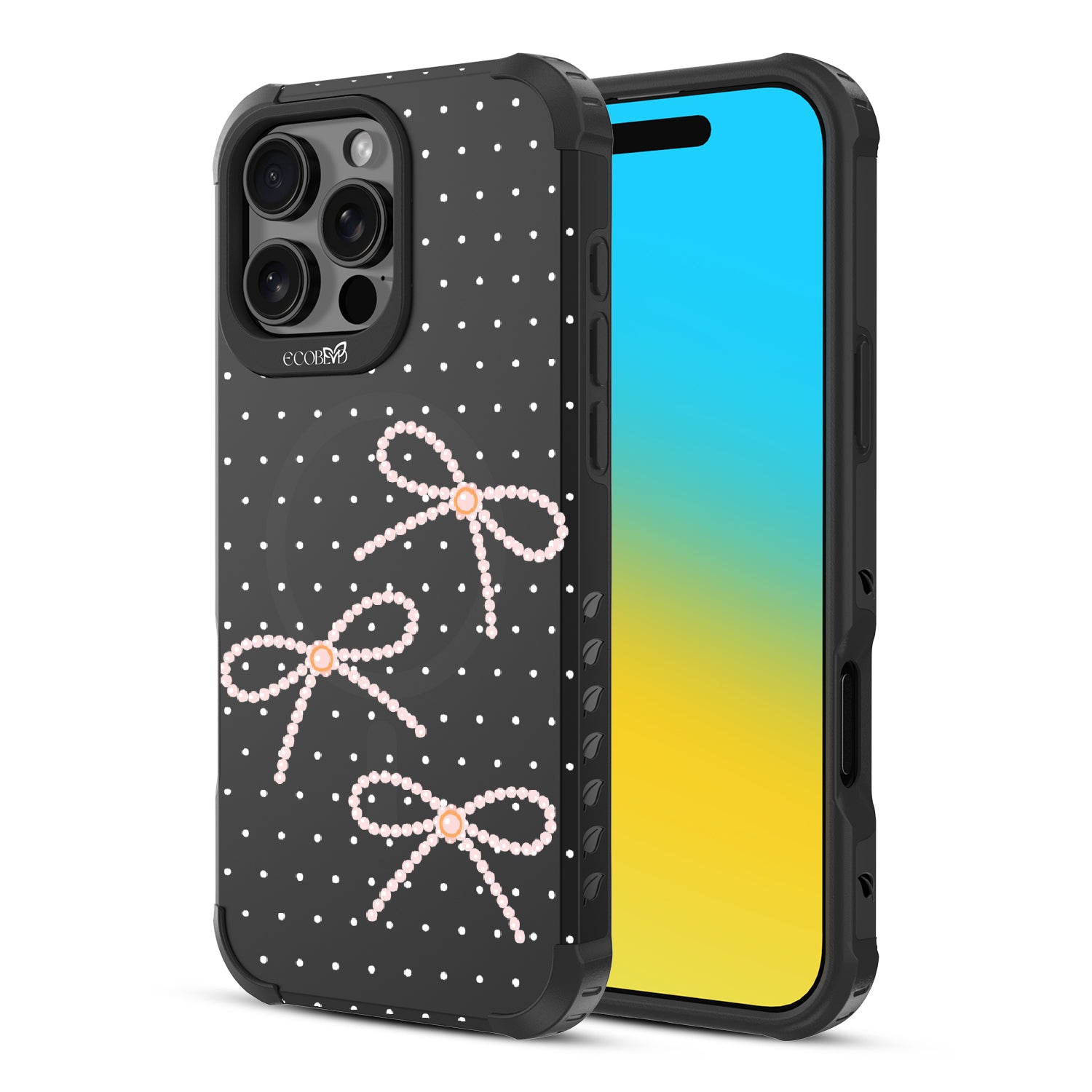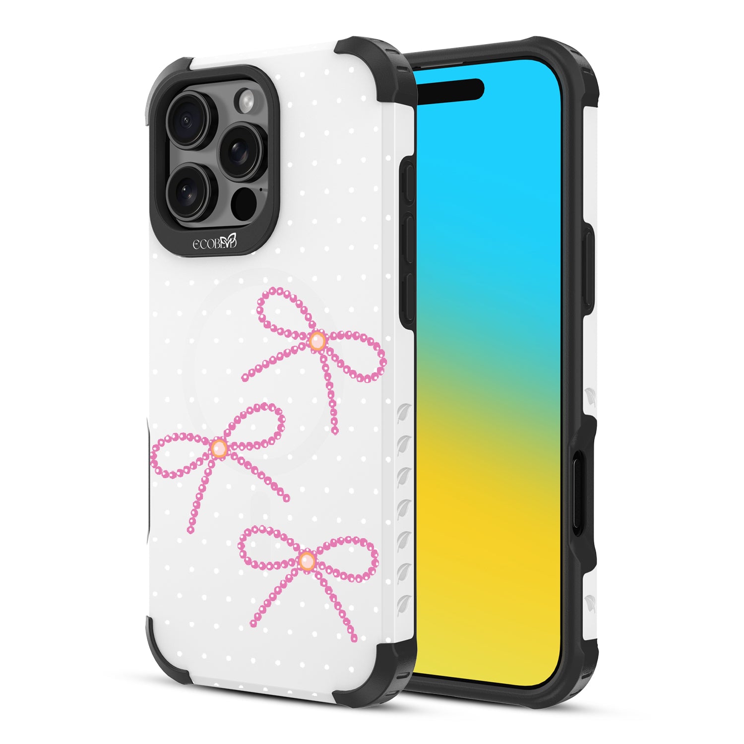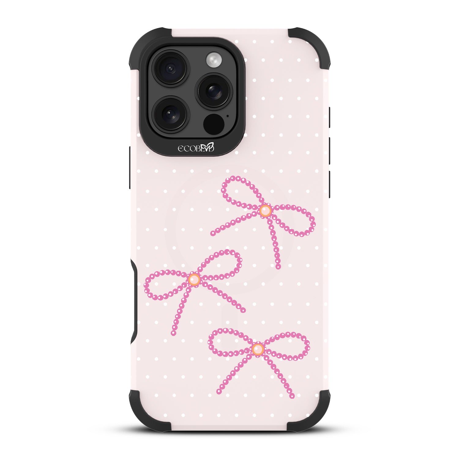 Knot to be outdone, the Knot So Little design on our Reforge rugged iPhone 16 Pro Max phone case brings big style in small doses. Featuring pearls tied into dainty bows, this design adds a sophisticated touch to your phone. Show off your love for the little things with this elegant look.