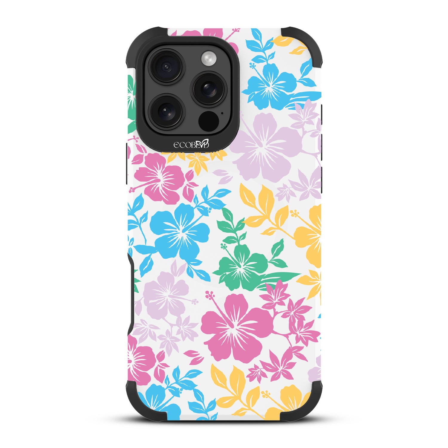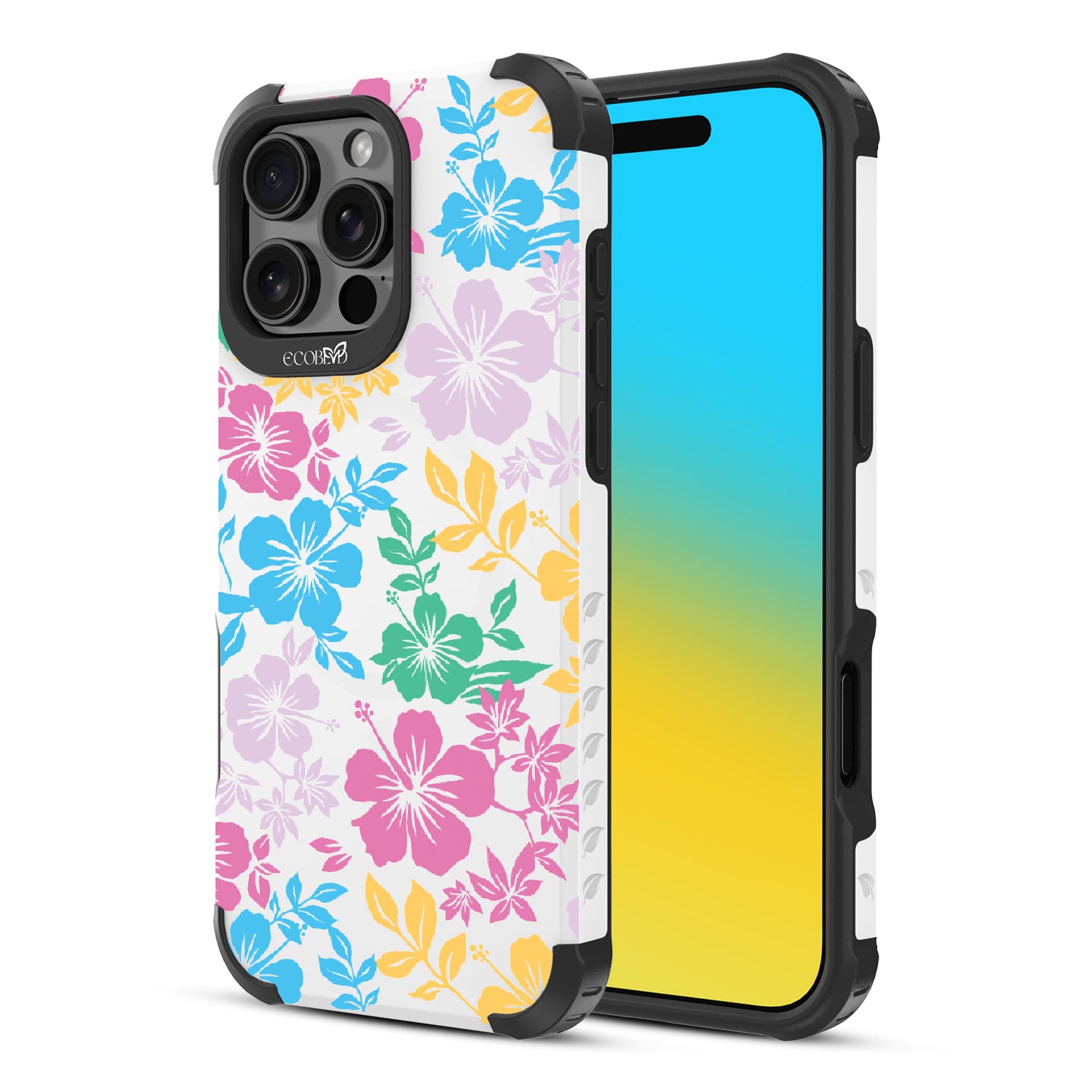 Experience the laid-back vibes of the tropics with our Lei'd Back design on our Reforge rugged iPhone 16 Pro Max phone case, a colorful homage to the vibrant beauty of Hawaiian leis. his design showcases an array of tropical hibiscus flowers in yellow, pink, green, and blue, reminiscent of traditional lei arrangements. Enjoy the relaxed lifestyle of an island as you escape to the spirit of aloha.