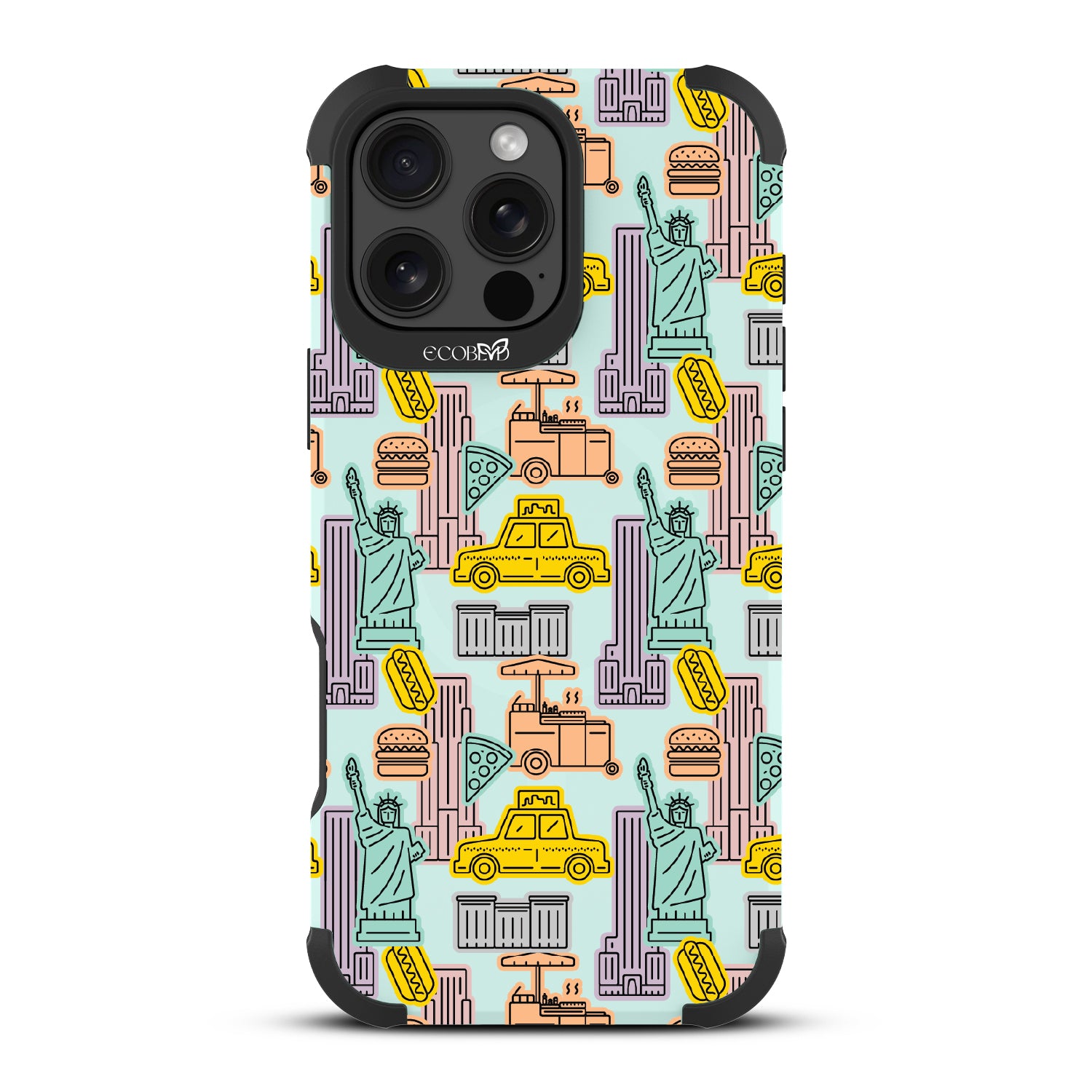 Capture the buzz of the city that never sleeps with the New York Minute design on our Reforge rugged iPhone 16 Pro Max case. It's a slice of the Big Apple, with iconic yellow cabs, steaming hotdogs, and Lady Liberty herself, all wrapped up in that unmistakable NYC rhythm.