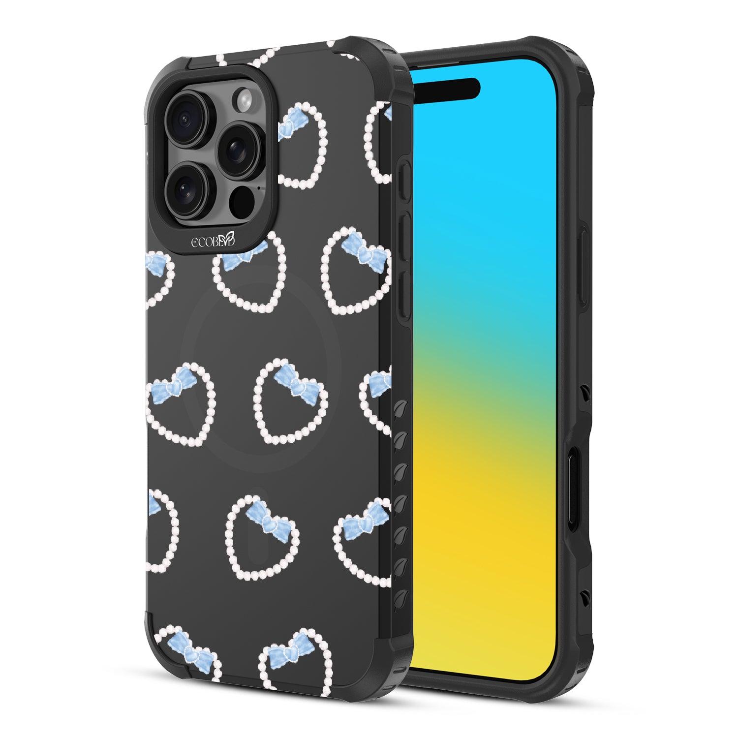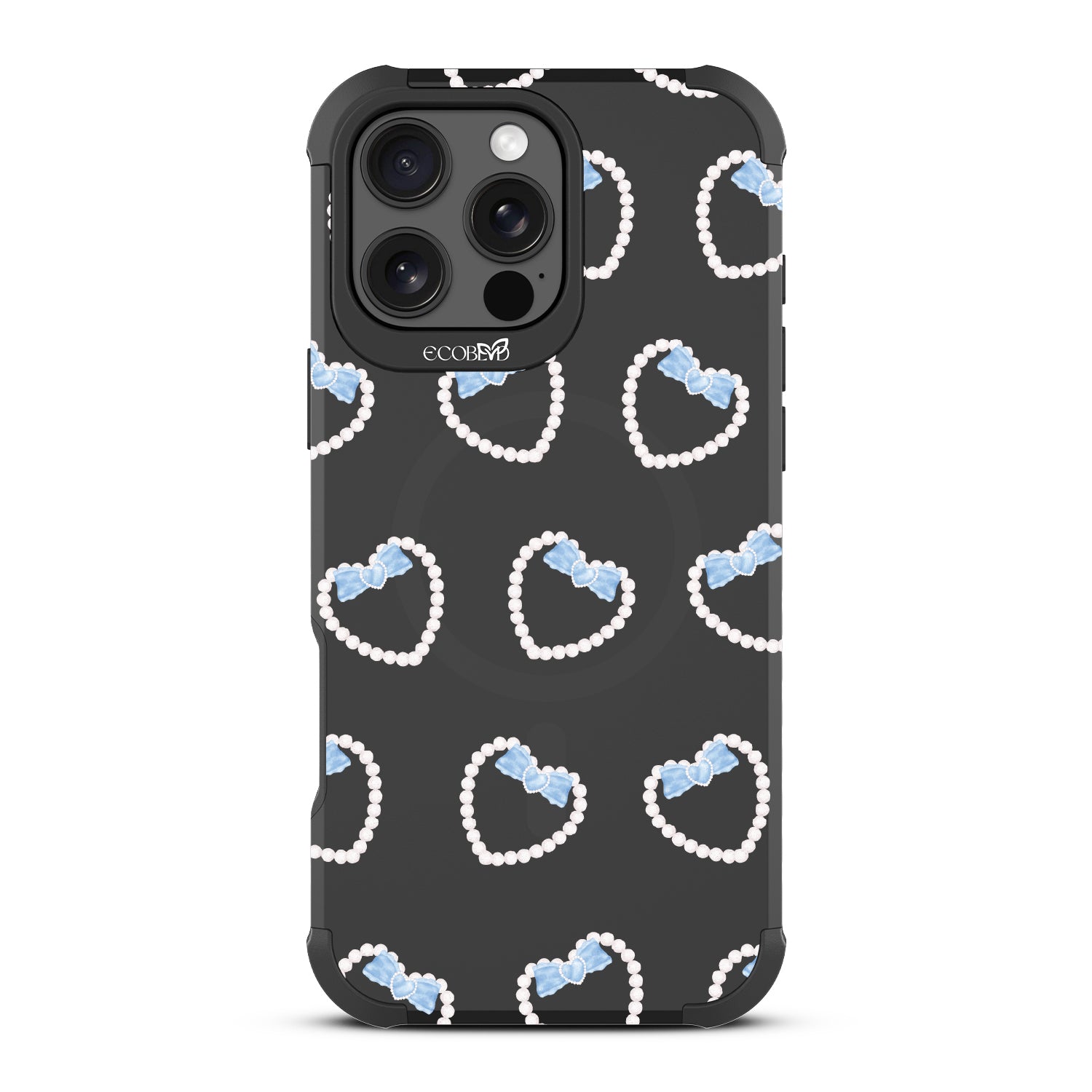 Pure bliss is found in the details, so find yours in the Pearl Bliss design on our Reforge rugged iPhone 16 Pro Max phone case Luminous pearls and delicate blue bows weave together in intricate heart shapes, crafting an irresistibly dreamy look that captivates. Every detail is meticulously crafted to make those around you want more and more.